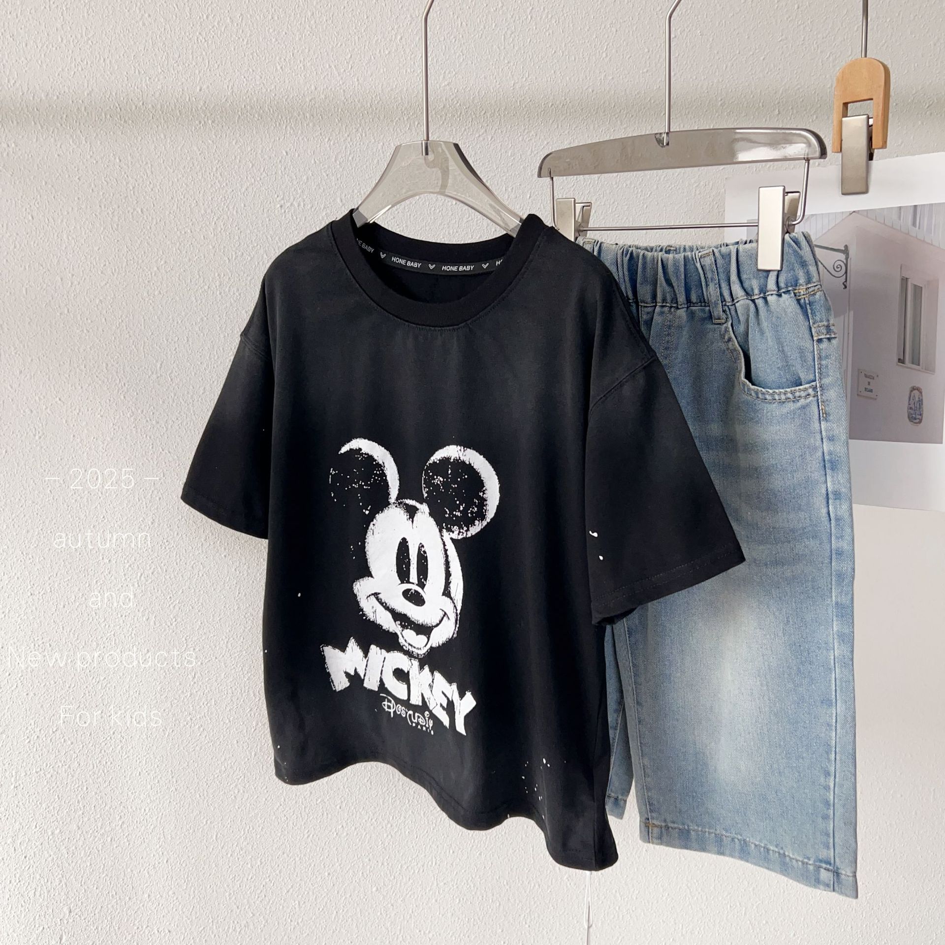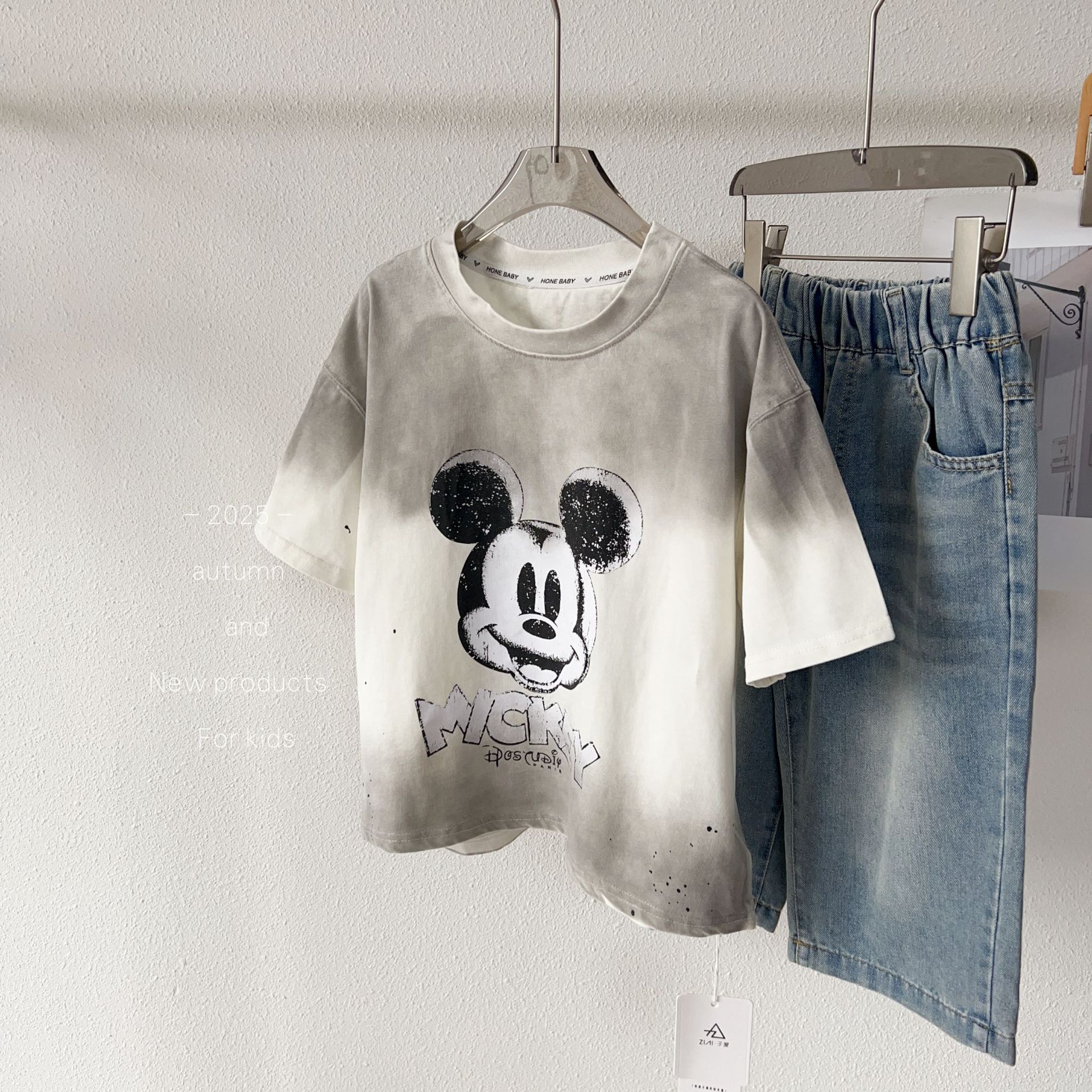 어린이 2026 여름 신상품 880258 만화 쥐 모양 스프레이 페인팅 중대형 아동용 한국 스타일 심플 티셔츠스토어 가기
