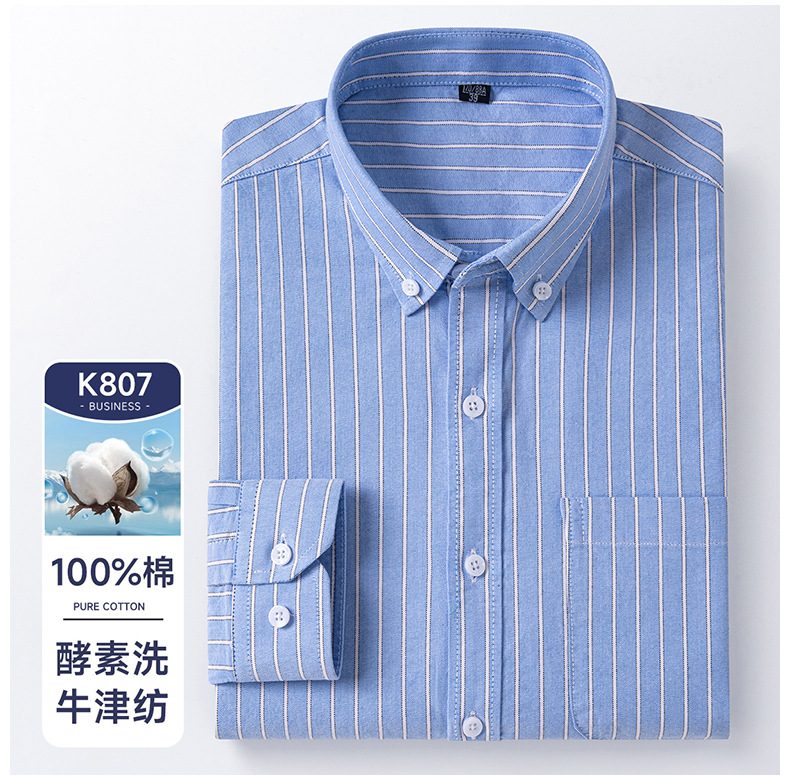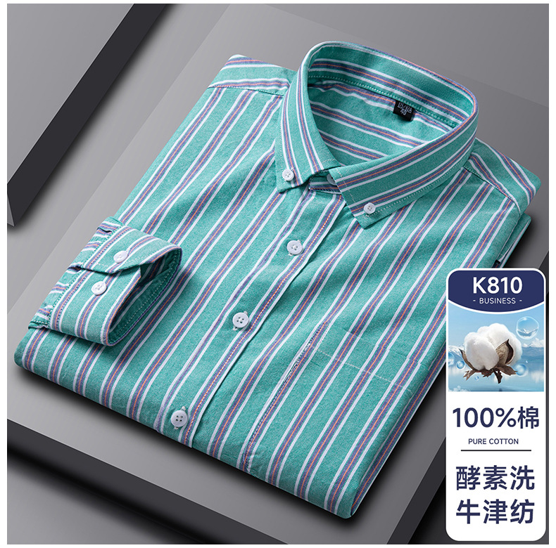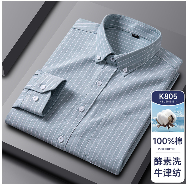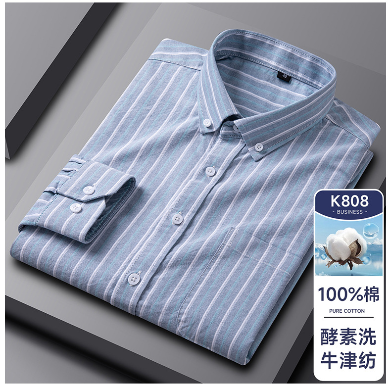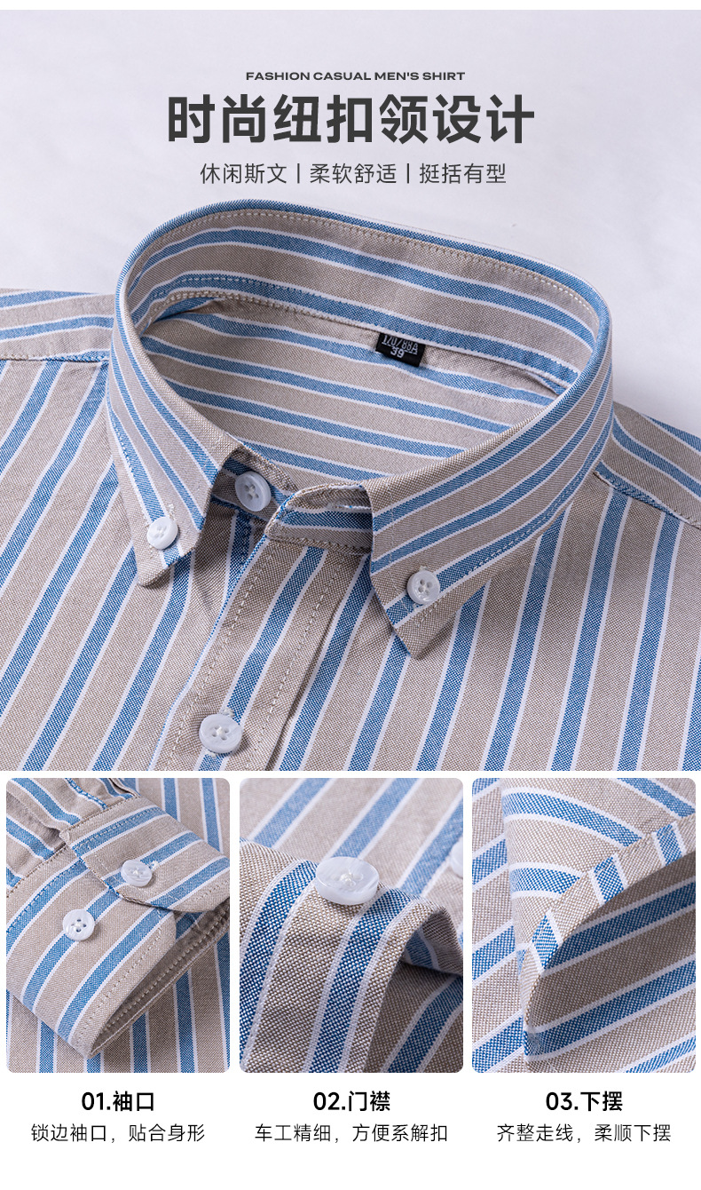봄가을 100% 순면 남성 긴팔 옥스포드 셔츠, 중년 및 청년 남성복, 주문자 상표 부착 생산 지원, 구김 방지, 다림질 필요 없음스토어 가기