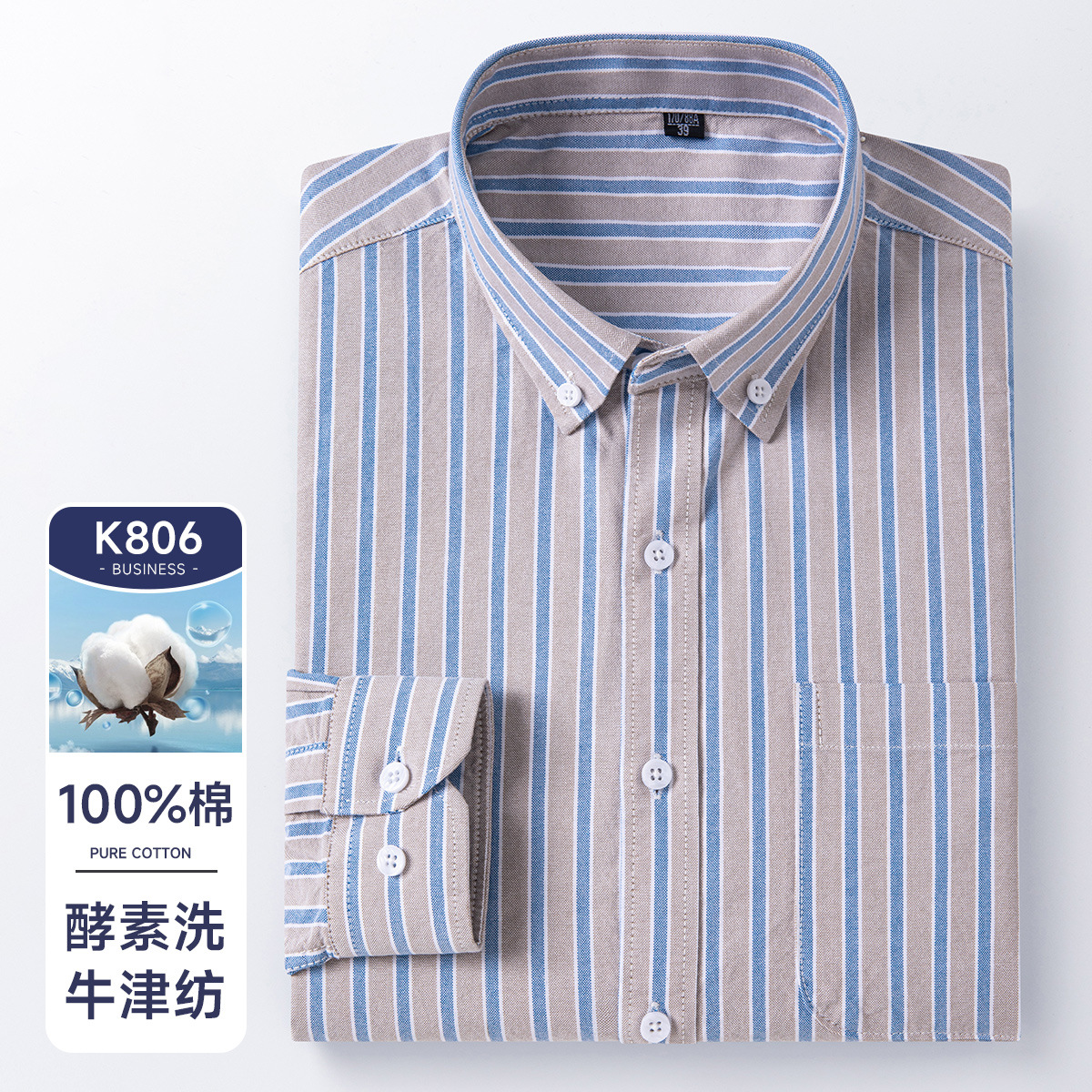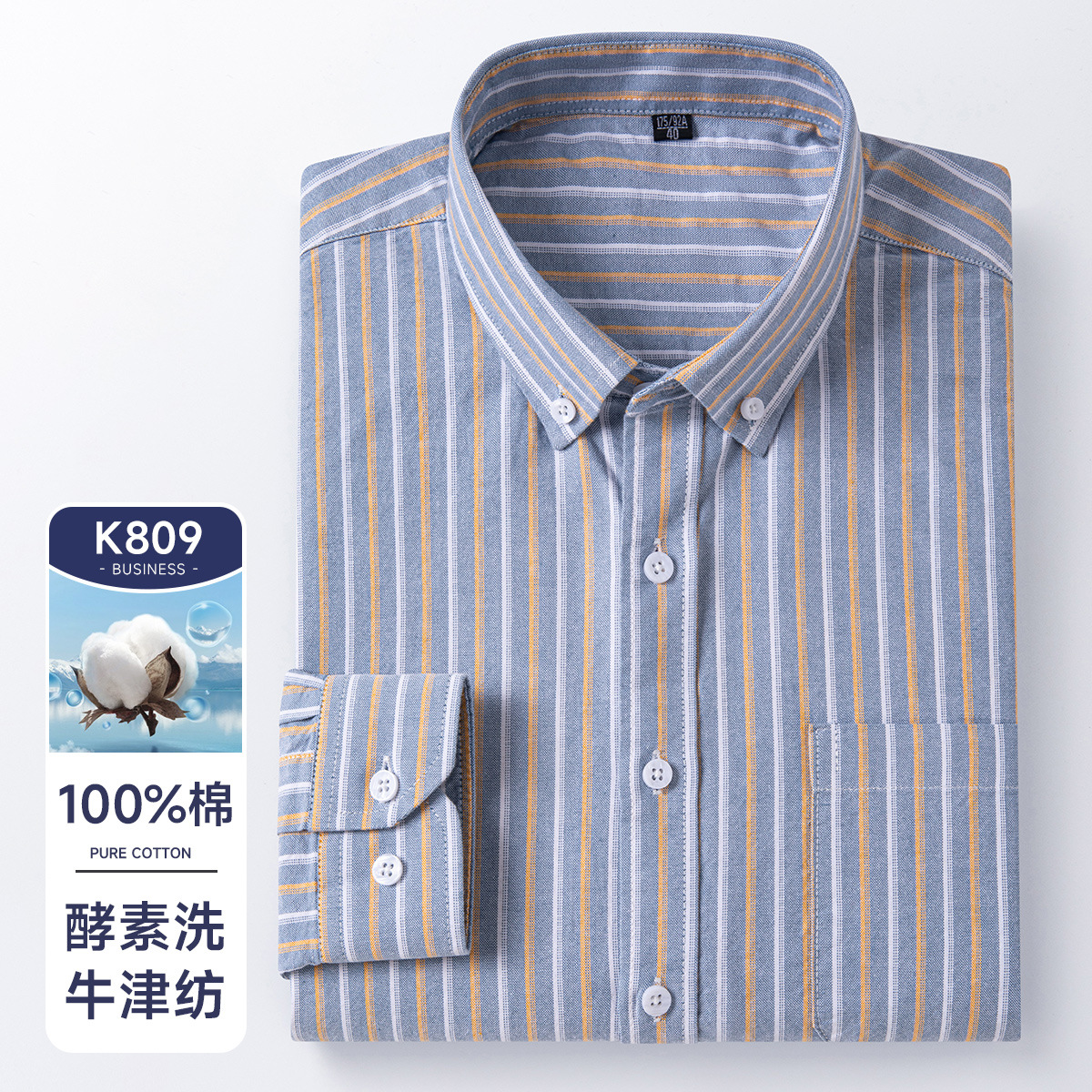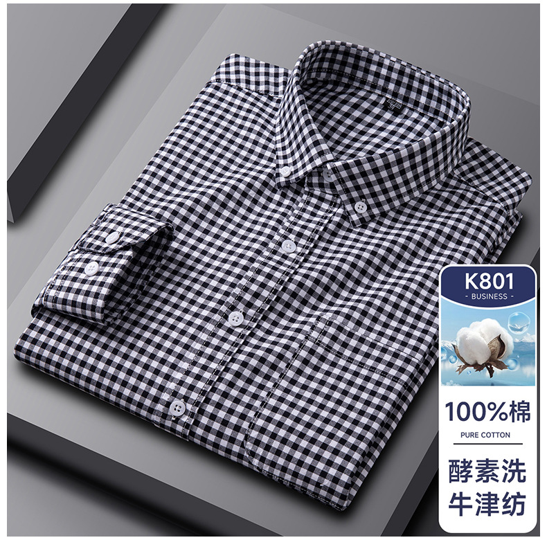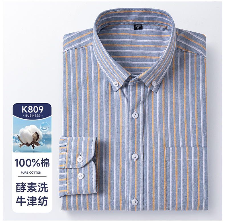 봄가을 100% 순면 남성 긴팔 옥스포드 셔츠, 중년 및 청년 남성복, 주문자 상표 부착 생산 지원, 구김 방지, 다림질 필요 없음스토어 가기