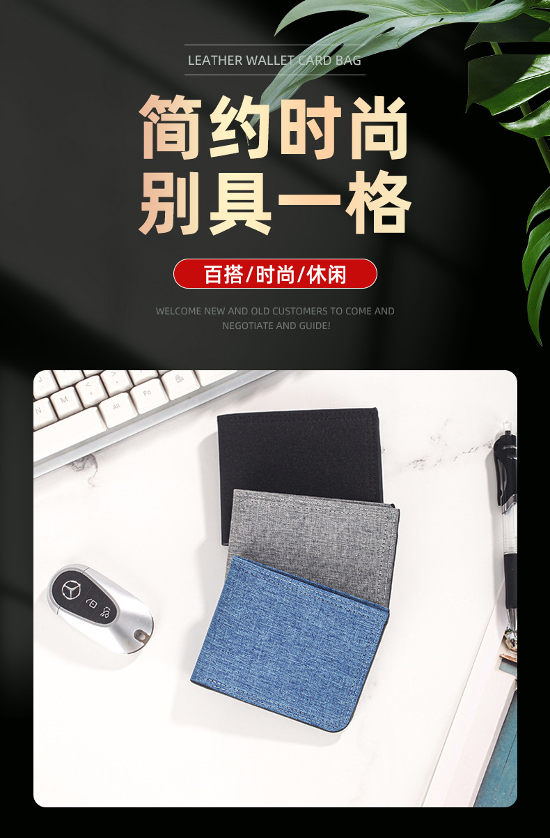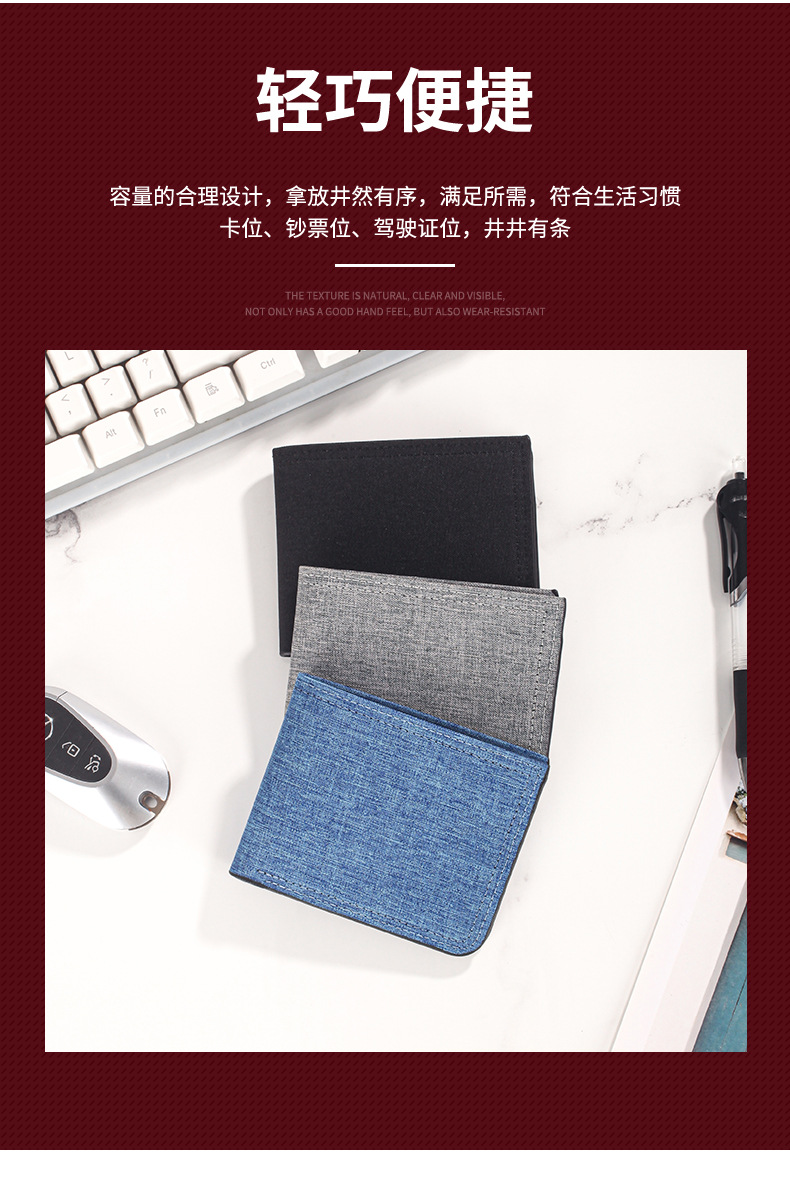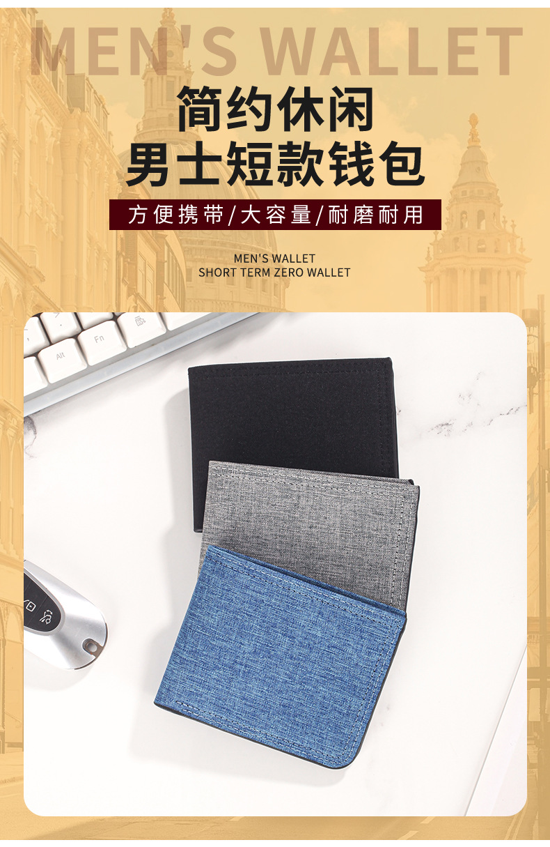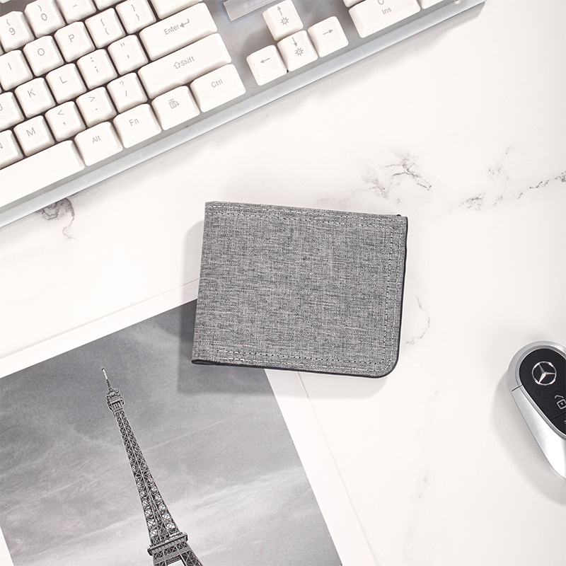 캔버스 지갑 남성용 짧은 스타일 심플 학생용 초박형 지갑 다중 카드 슬롯 가로형 지갑 도매 지갑 동전 지갑