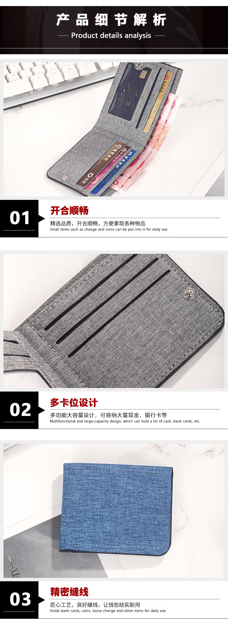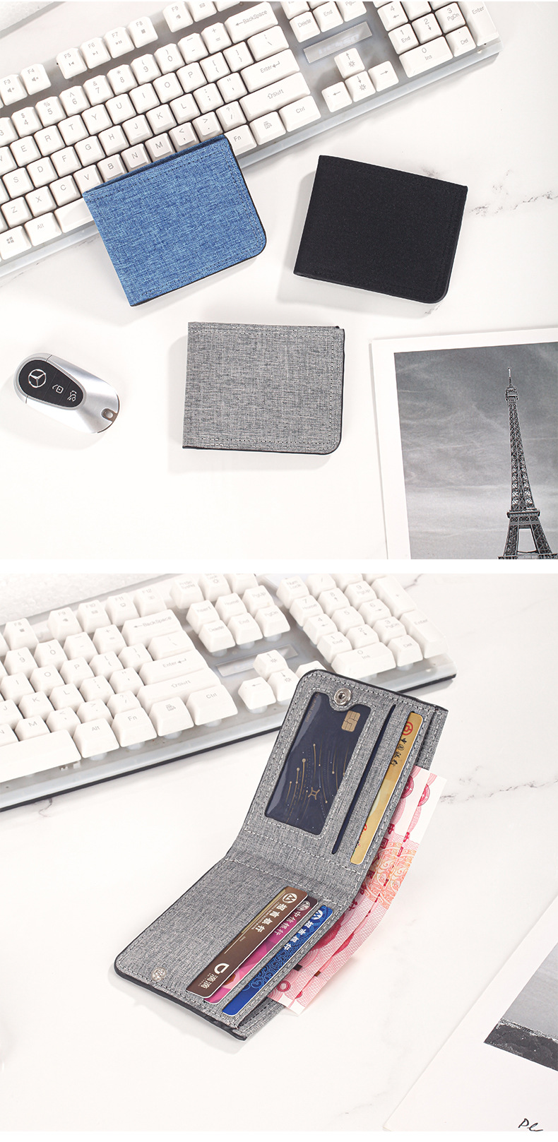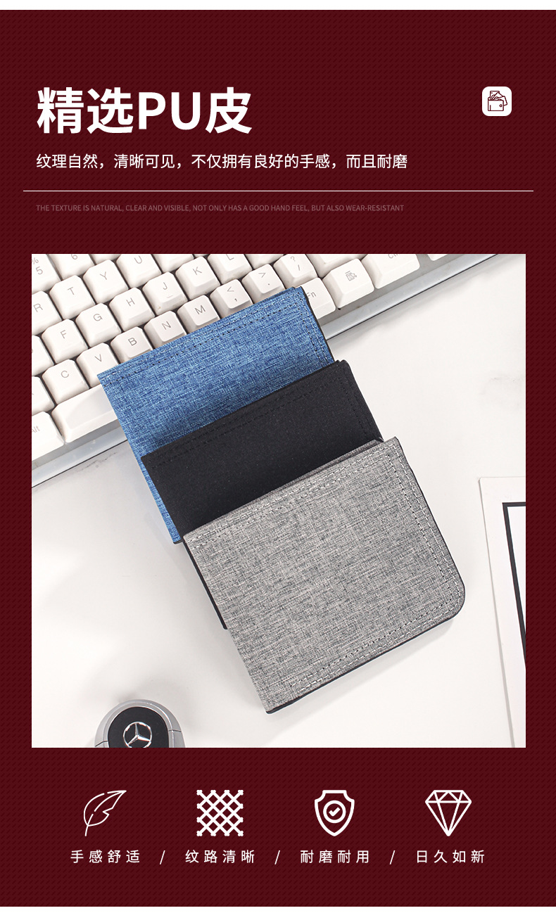 캔버스 지갑 남성용 짧은 스타일 심플 학생용 초박형 지갑 다중 카드 슬롯 가로형 지갑 도매 지갑 동전 지갑