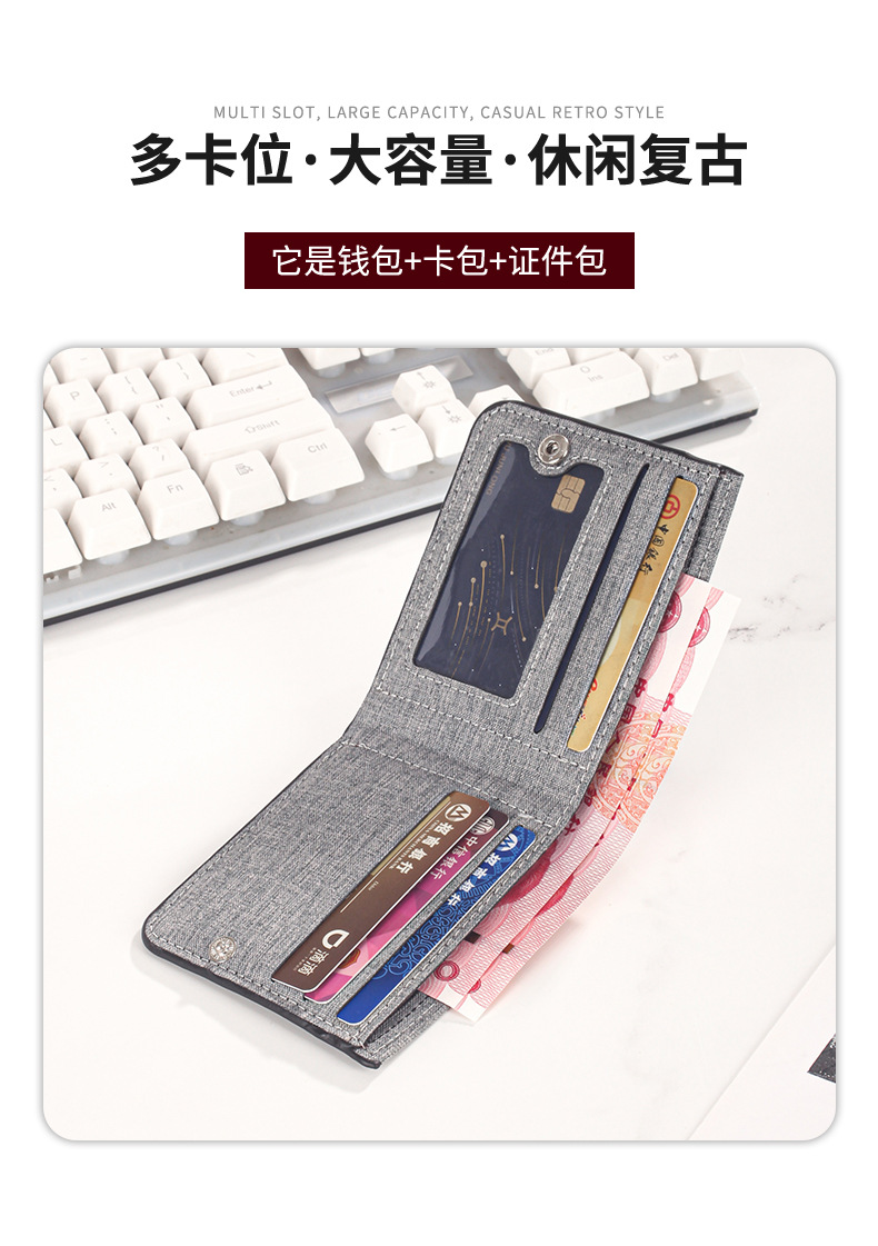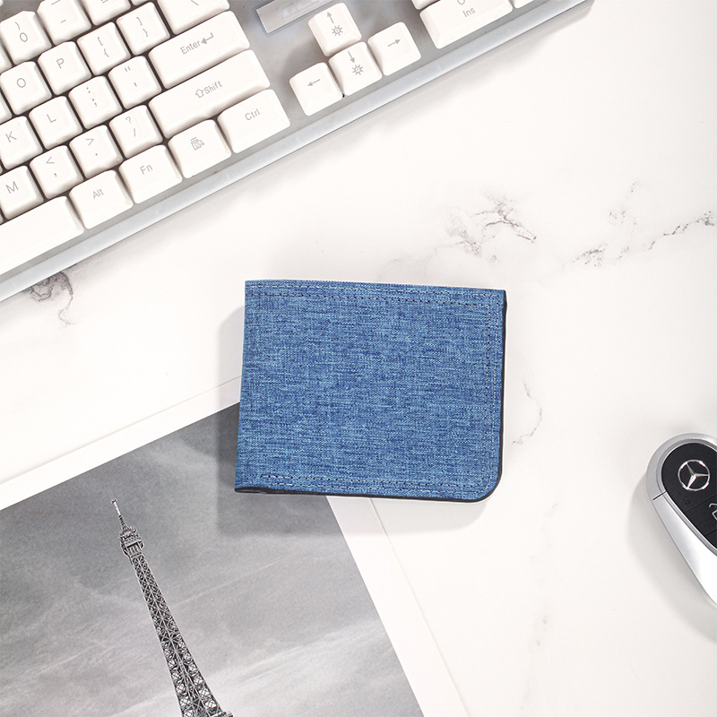 캔버스 지갑 남성용 짧은 스타일 심플 학생용 초박형 지갑 다중 카드 슬롯 가로형 지갑 도매 지갑 동전 지갑스토어 가기
