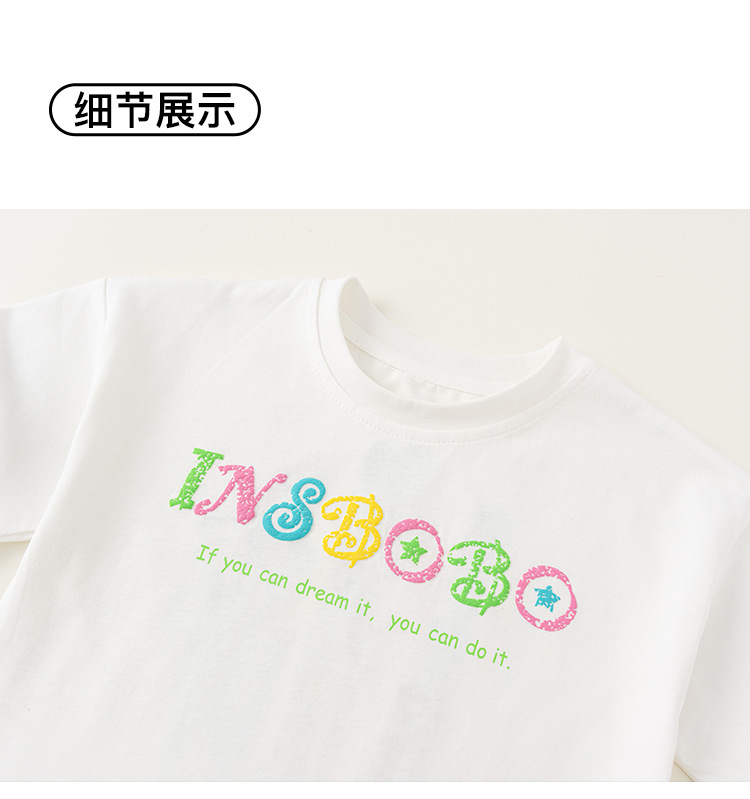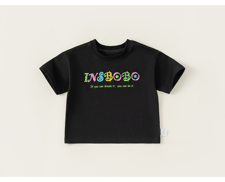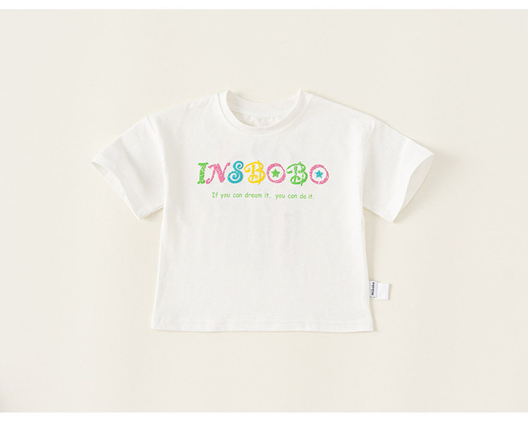유바오 아동복 여름 새 소년 크루 넥 탑 올 매치 티셔츠 간단한 인쇄 의류 아동용 컬러 매칭 짧은 소매
