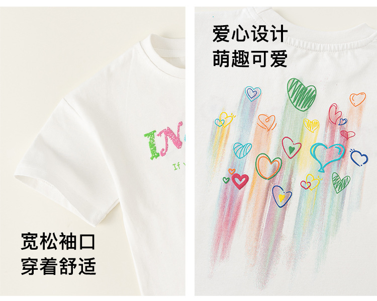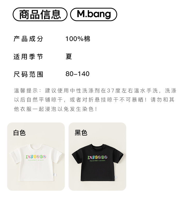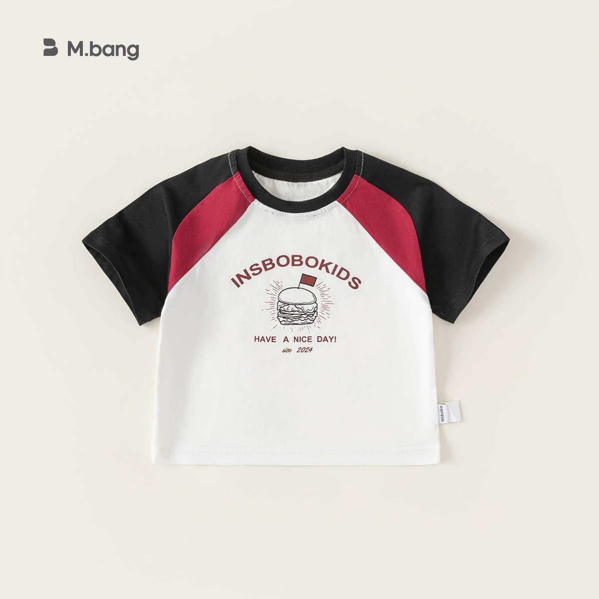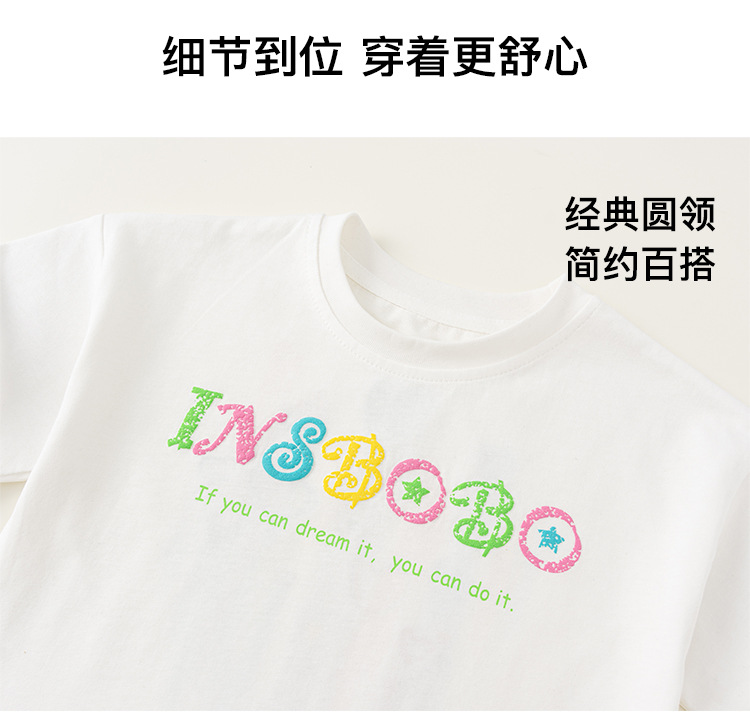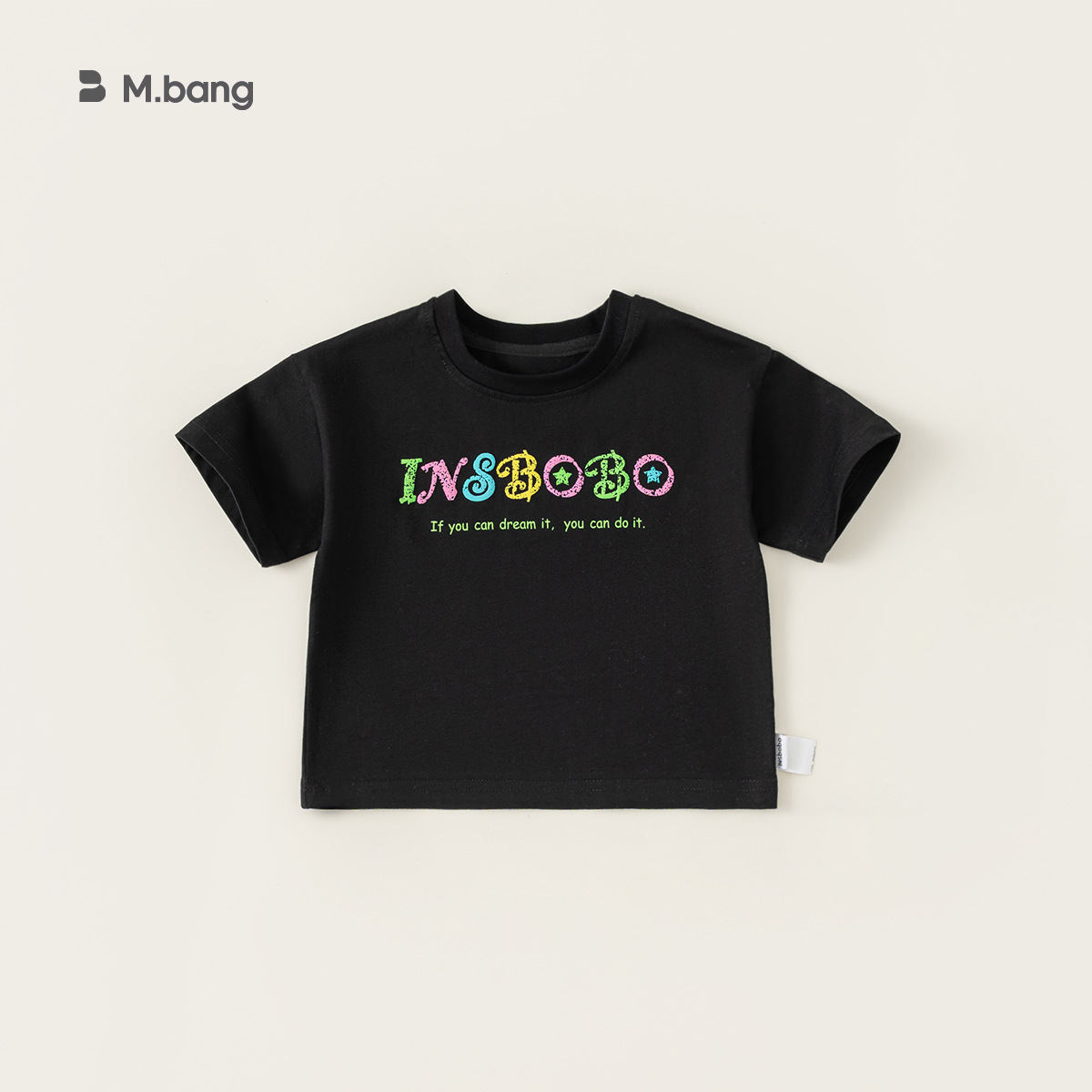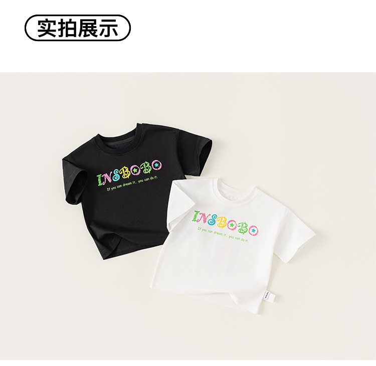 유바오 아동복 여름 새 소년 크루 넥 탑 올 매치 티셔츠 간단한 인쇄 의류 아동용 컬러 매칭 짧은 소매스토어 가기