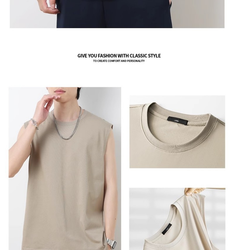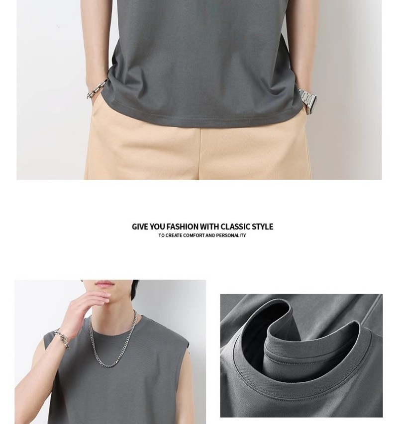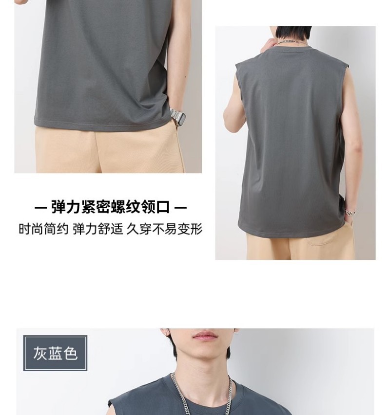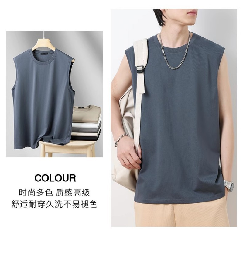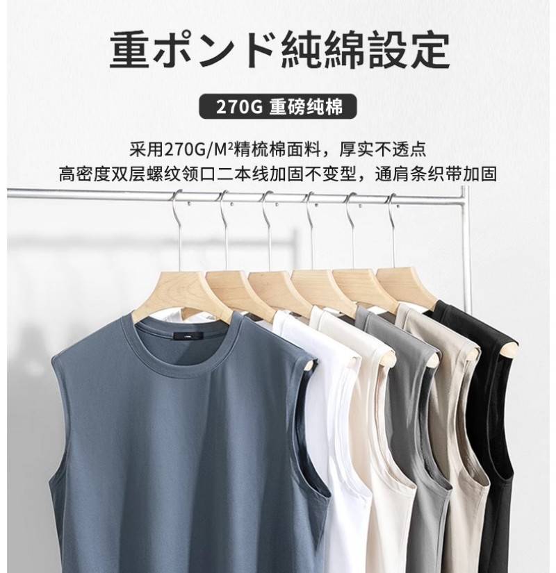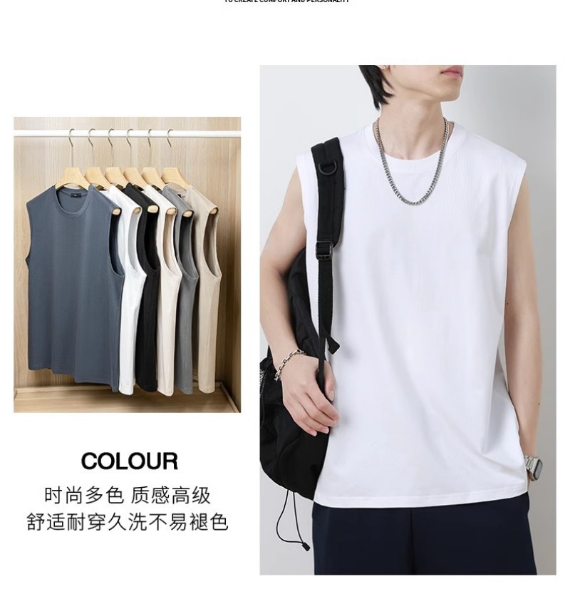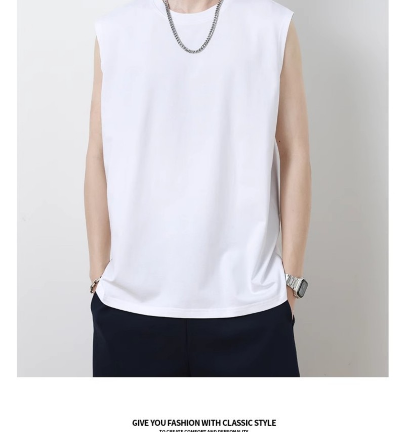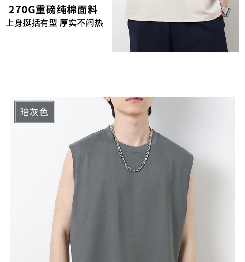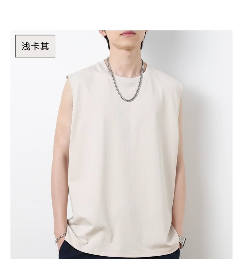 순수 코튼 남성 조끼 270g 헤비급 민소매 티셔츠 루즈 트렌디 솔리드 컬러 조끼 여름 스포츠 피트니스 언더 셔츠스토어 가기