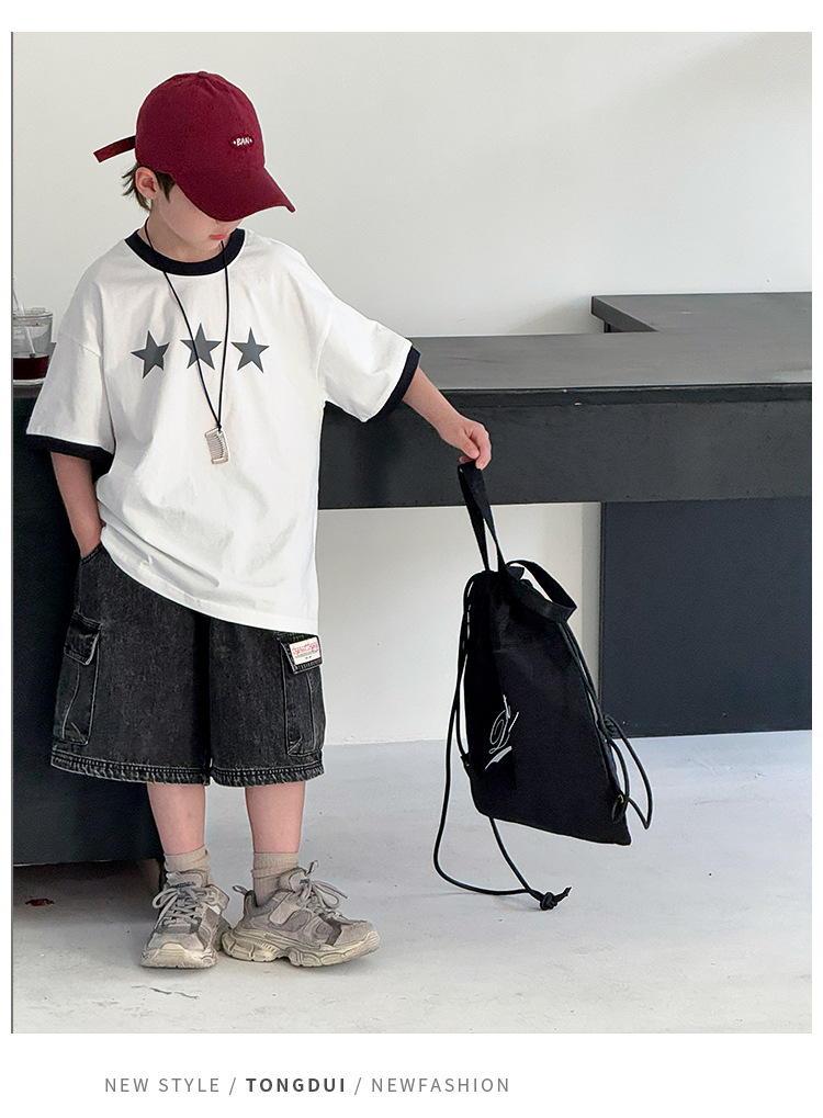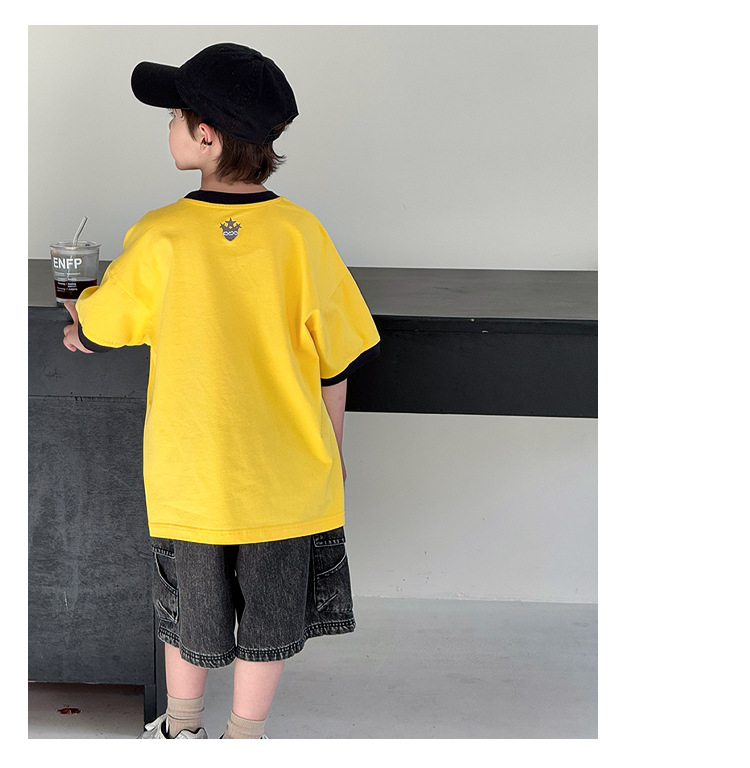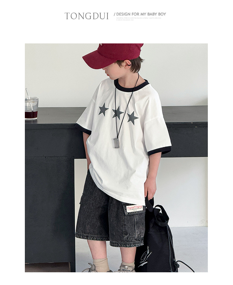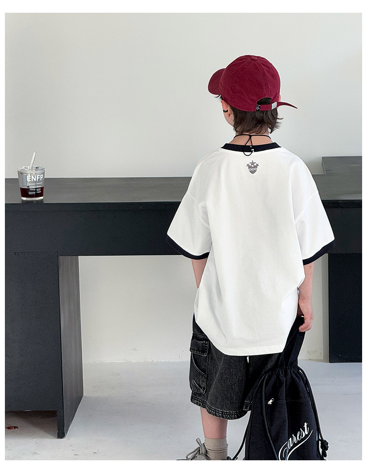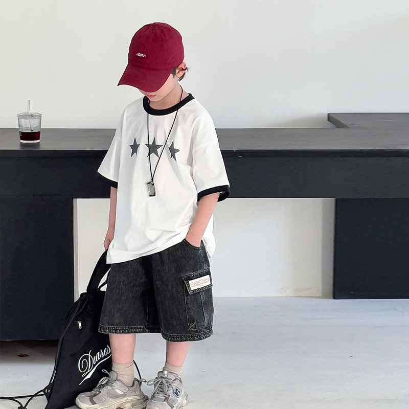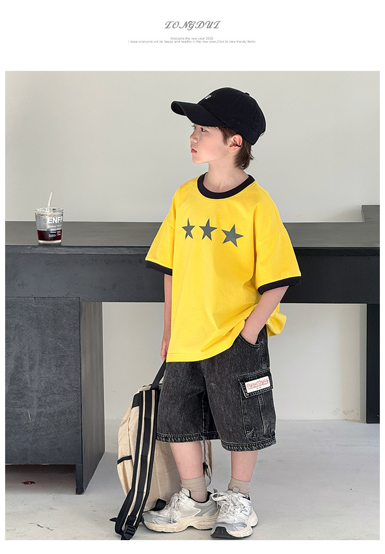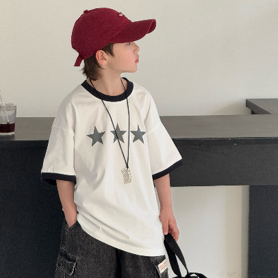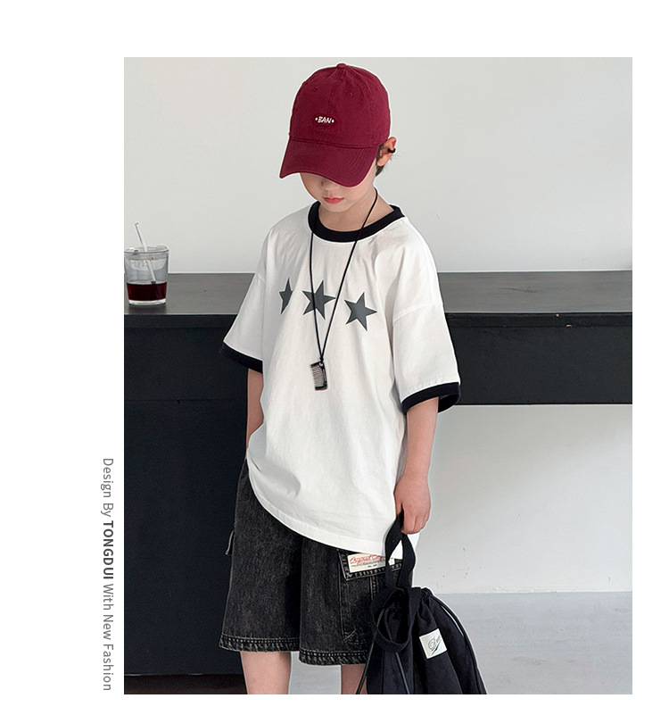 소년 정장 티셔츠 반팔 여름 캐주얼 스포츠 반팔 탑 2025 새로운 중대형 어린이 느슨한 스트리트 T스토어 가기