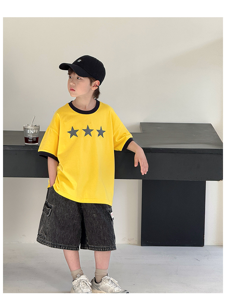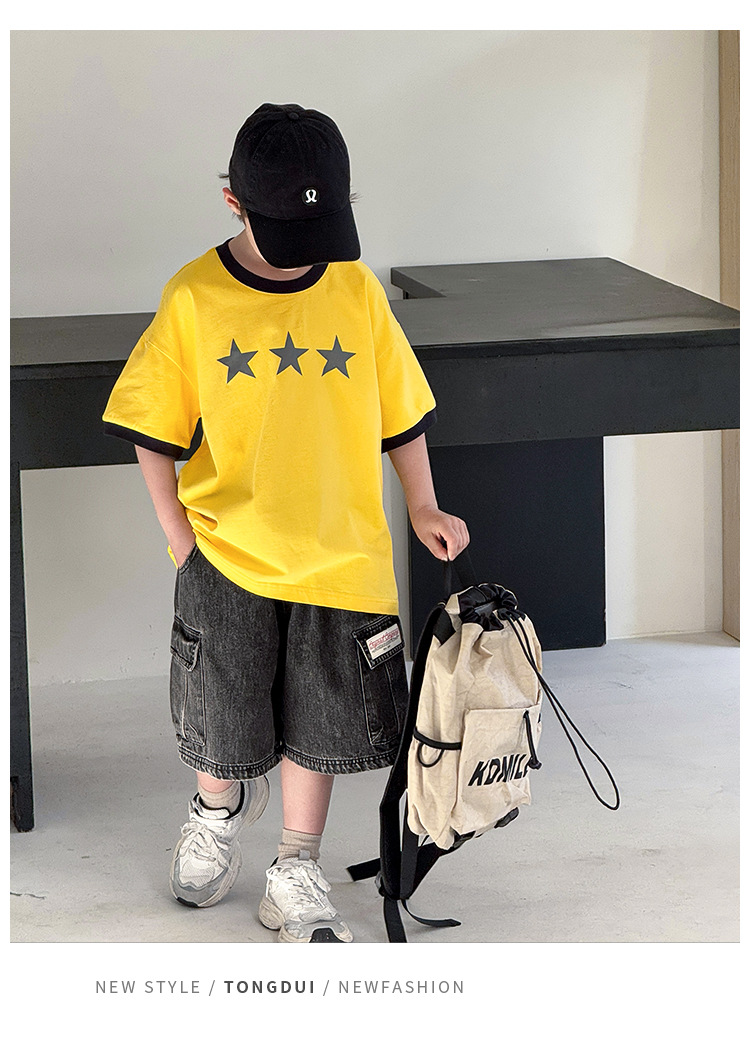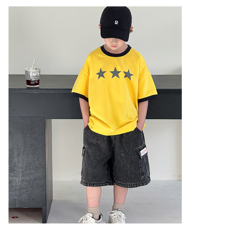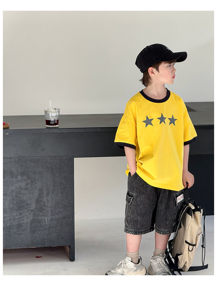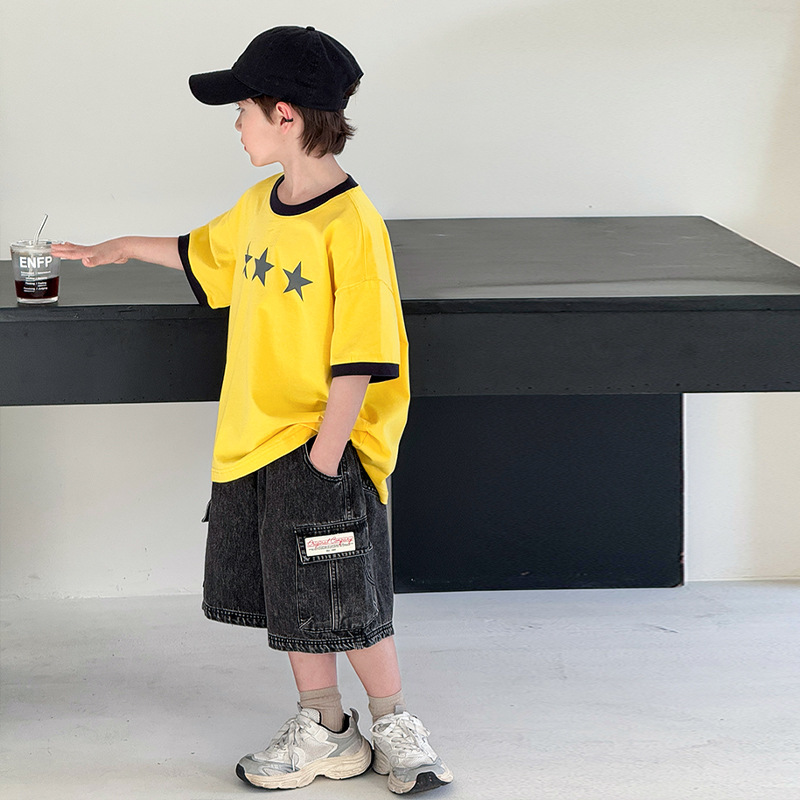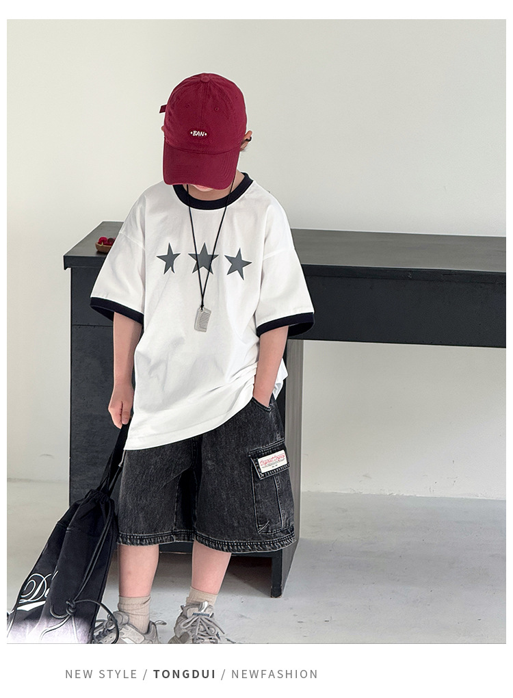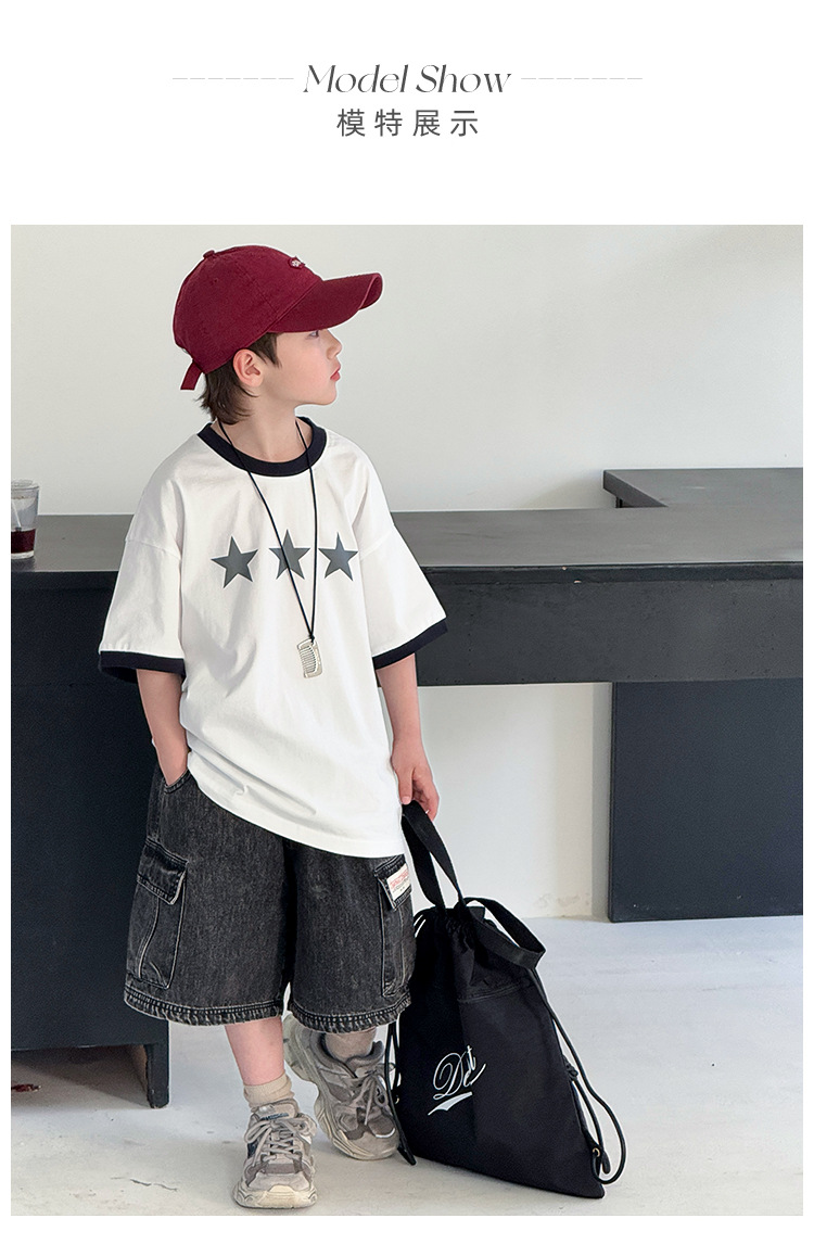 소년 정장 티셔츠 반팔 여름 캐주얼 스포츠 반팔 탑 2025 새로운 중대형 어린이 느슨한 스트리트 T스토어 가기