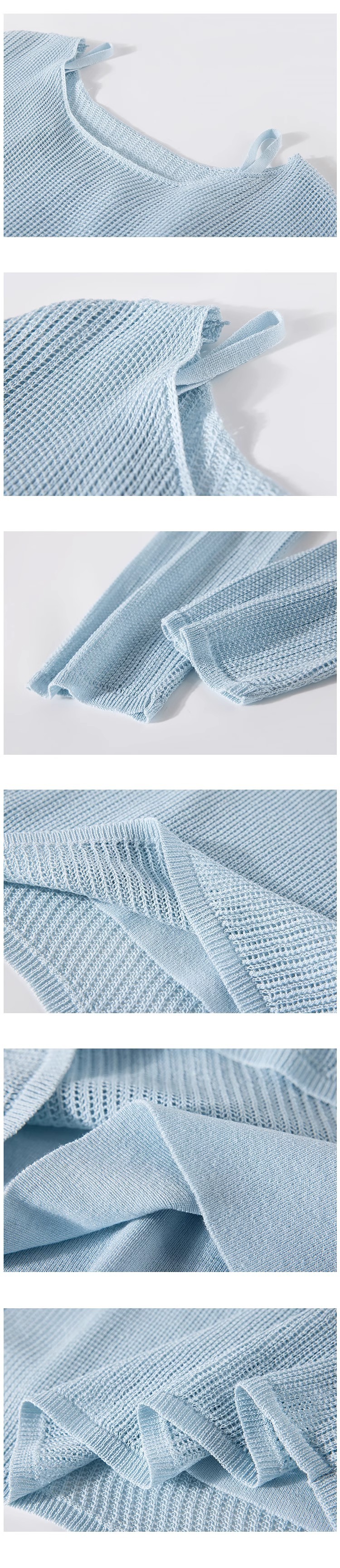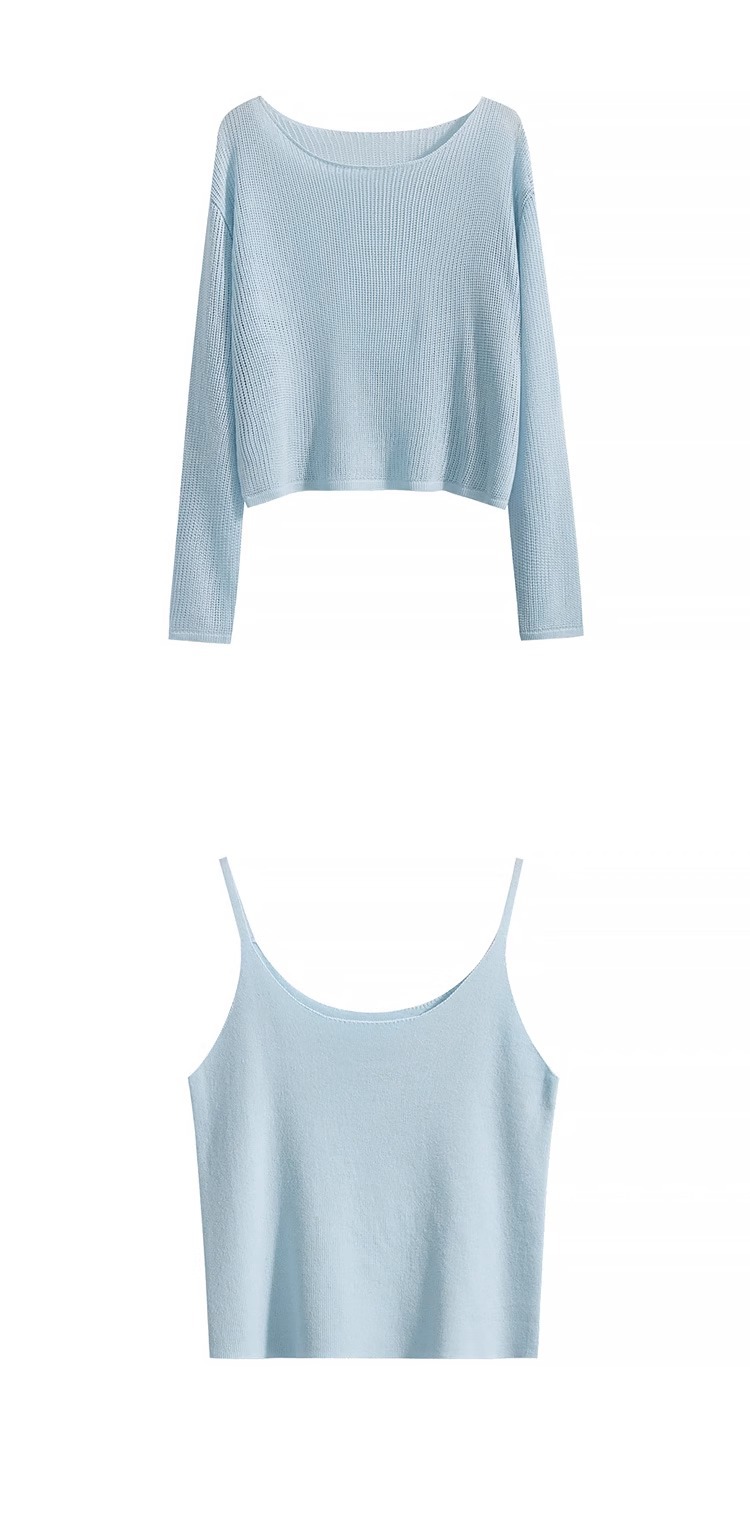 세트 여자 하이 엔드 탑 여름 카미 솔 조끼 할로우 니트 투피스 아이스 실크 선 스크린 블라우스