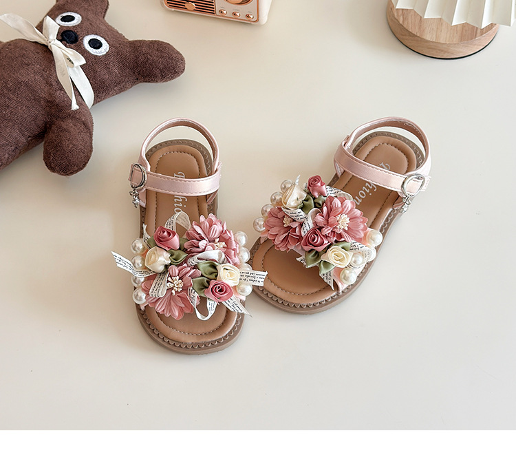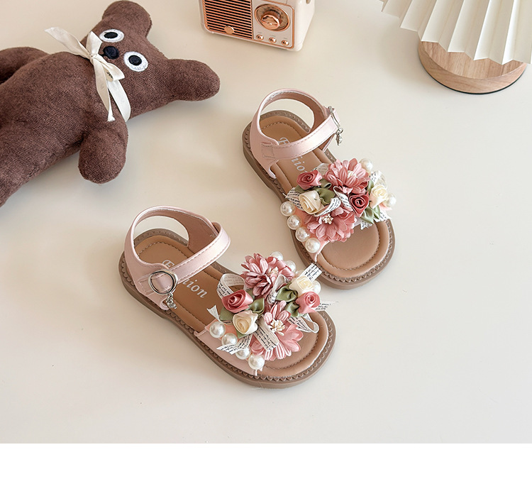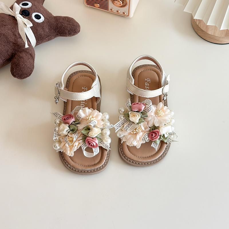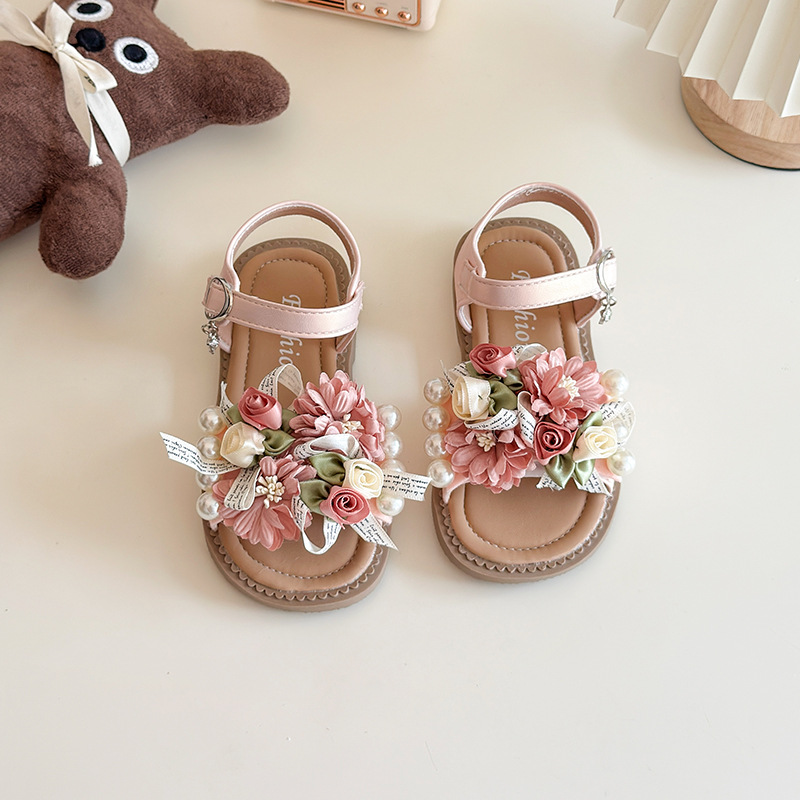 소녀 샌들 요정 스타일 공주 신발 도파민 꽃 샌들 여름 새로운 아기 소프트 솔 비치 신발 서양식스토어 가기