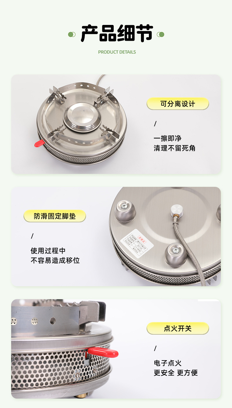 Wow 맞춤형 카세트 스토브 스테인레스 스틸 방풍 휴대용 고출력 가스 스토브 소형 에너지 절약형 캠핑 바베큐 스토브