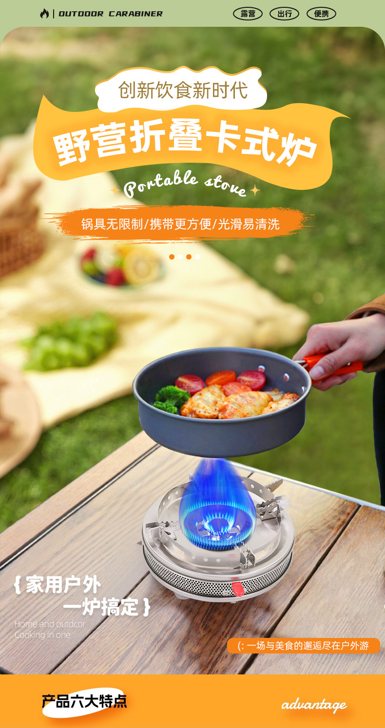 Wow 맞춤형 카세트 스토브 스테인레스 스틸 방풍 휴대용 고출력 가스 스토브 소형 에너지 절약형 캠핑 바베큐 스토브스토어 가기