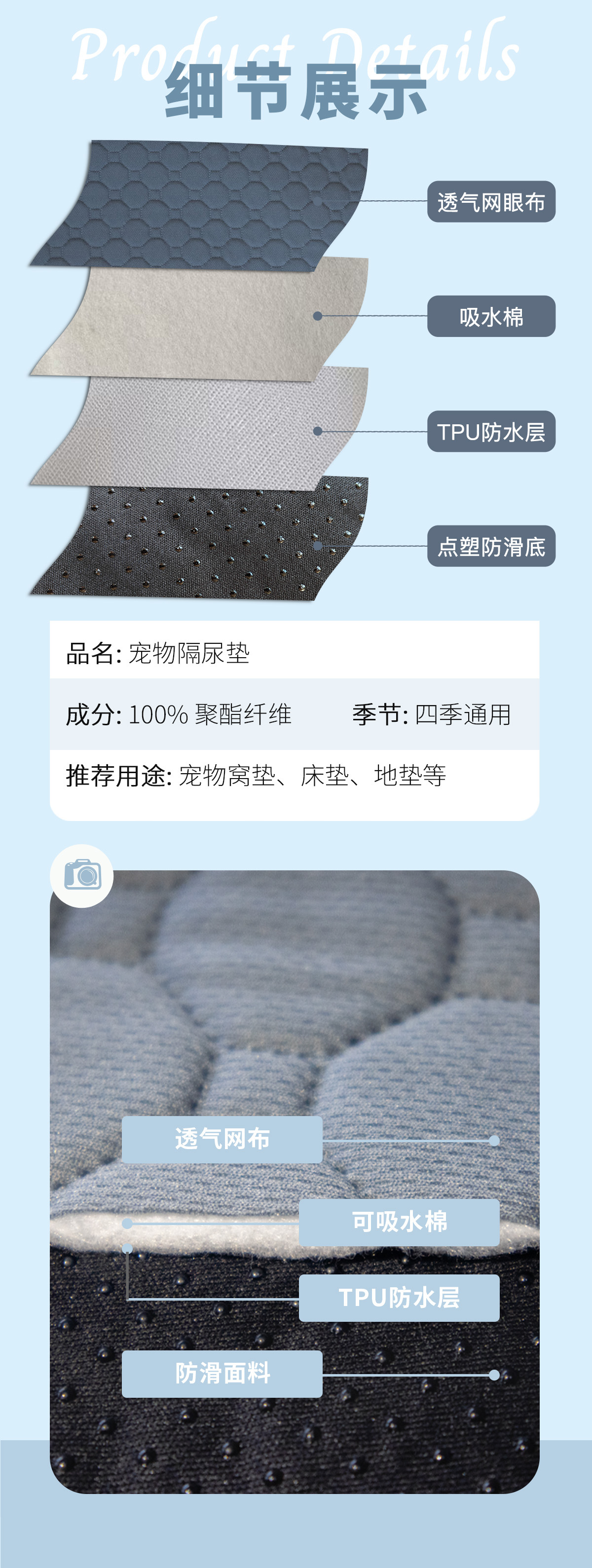 국경을 넘나드는 인기 애완동물 기저귀 패드, 세탁 및 재사용 가능, 즉시 흡수성 미끄럼 방지 패드, 개와 고양이 훈련 패드