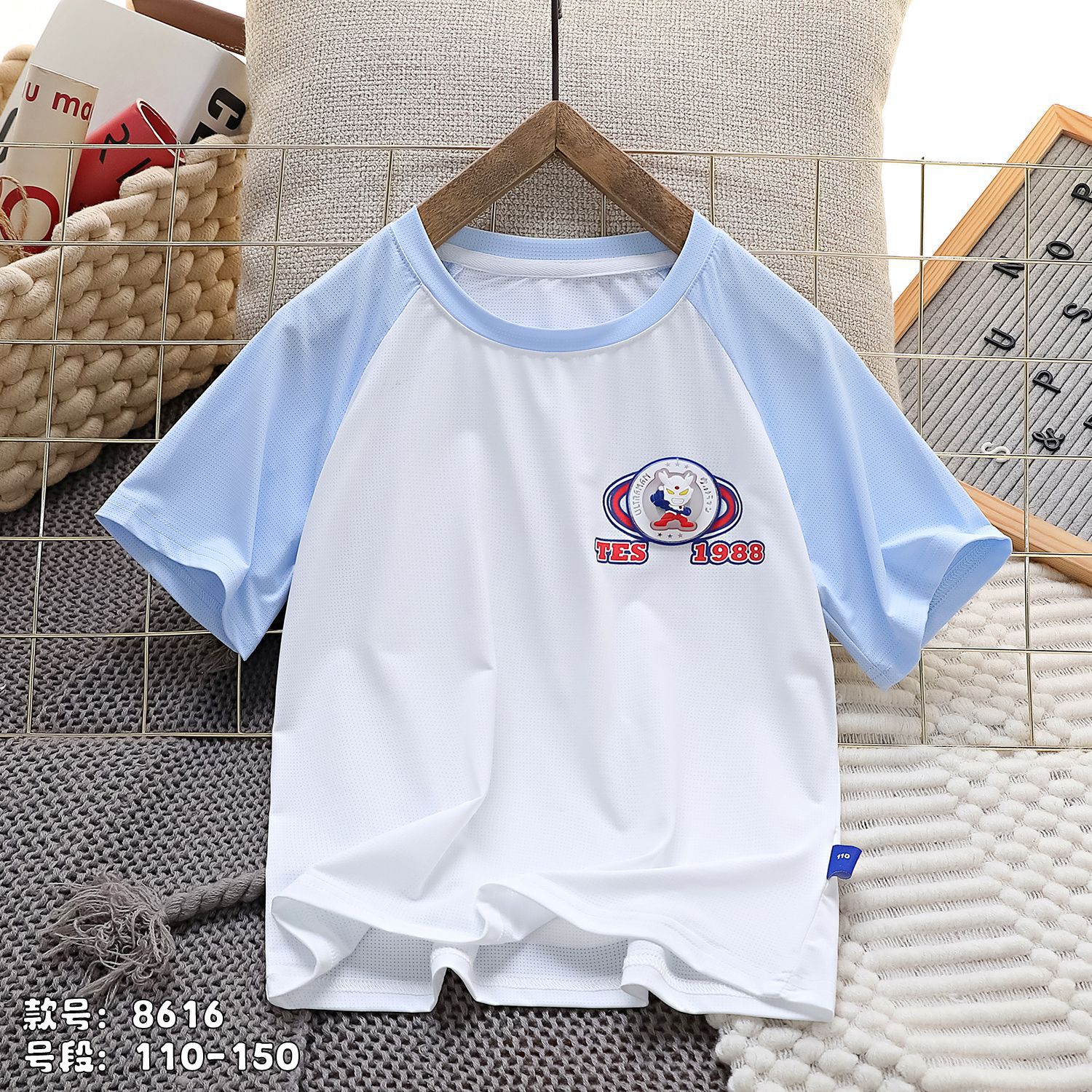 특별 제공 여름 어린이 속건성 메쉬 반팔 티셔츠 소년 소녀용 만화 조명 슈퍼맨 반팔 탑