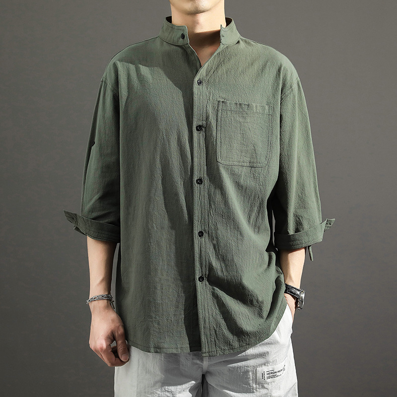 리넨 셔츠 남자 긴팔 올 매치 중국 스타일 남자 셔츠 루즈 남자 재킷 코튼 리넨 캐주얼 탑