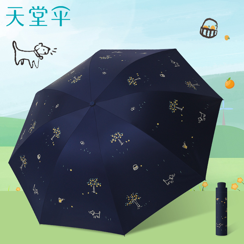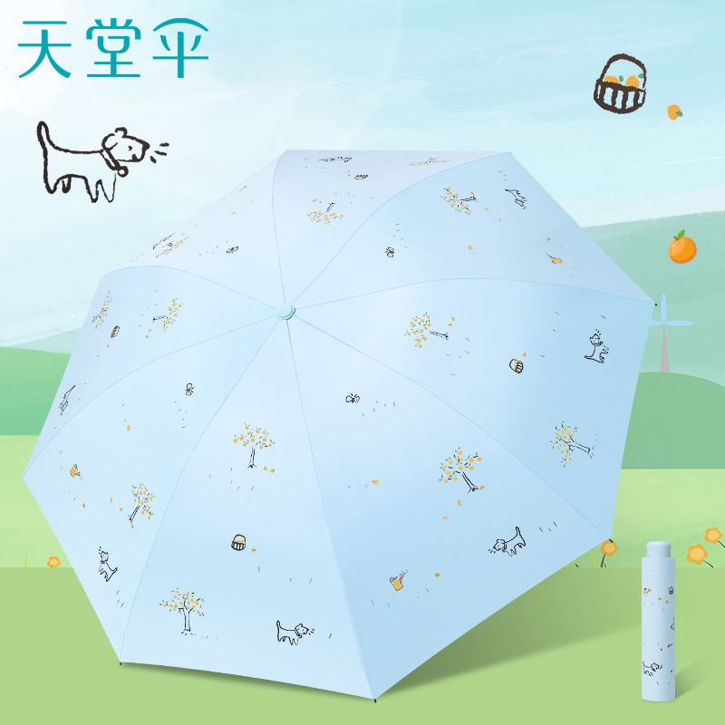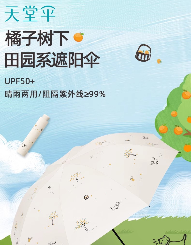 파라다이스 우산 33936E 오렌지 트리 비닐 비 또는 빛 우산 하이 엔드 차양 및 자외선 차단 우산 70% off 접이식 우산