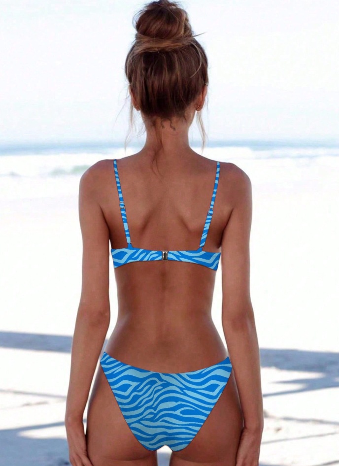 대외 무역 인기 수영복 여름 휴가 여성 얼룩말 프린트 섹시한 비키니 스플릿 수영복 세트