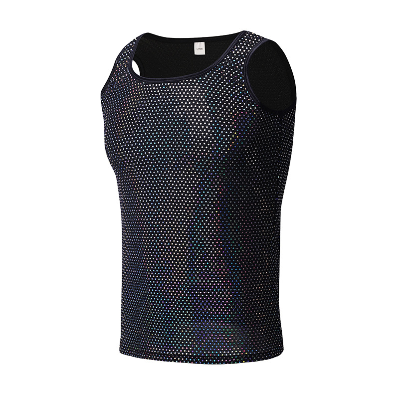 남자 조끼 여름 2025 새로운 피트니스 조끼 유행 잘 생긴 나이트 클럽 가수 반짝 이는 민소매 티셔츠스토어 가기
