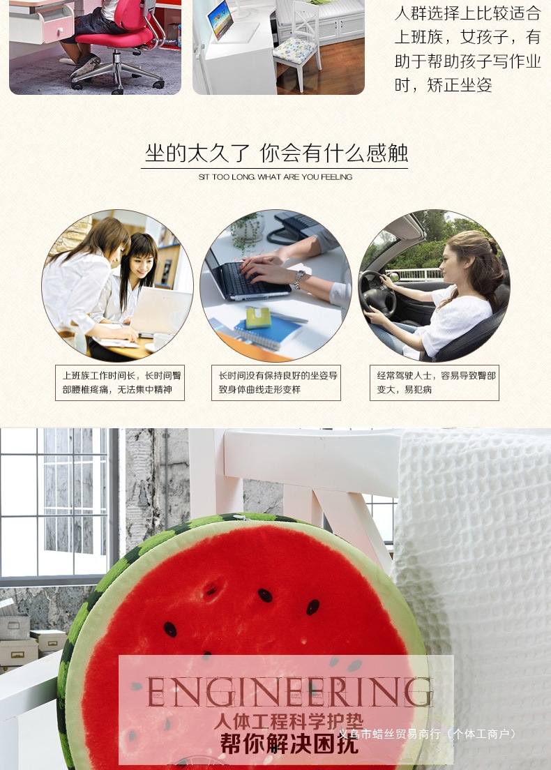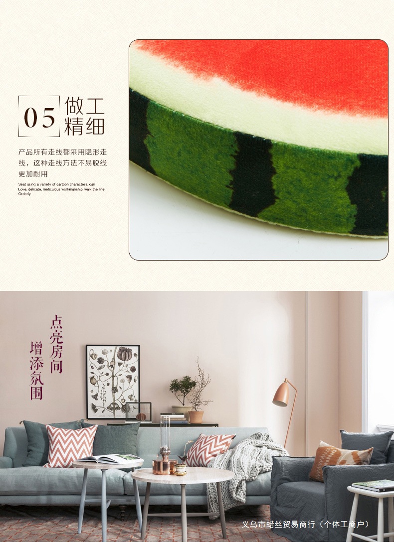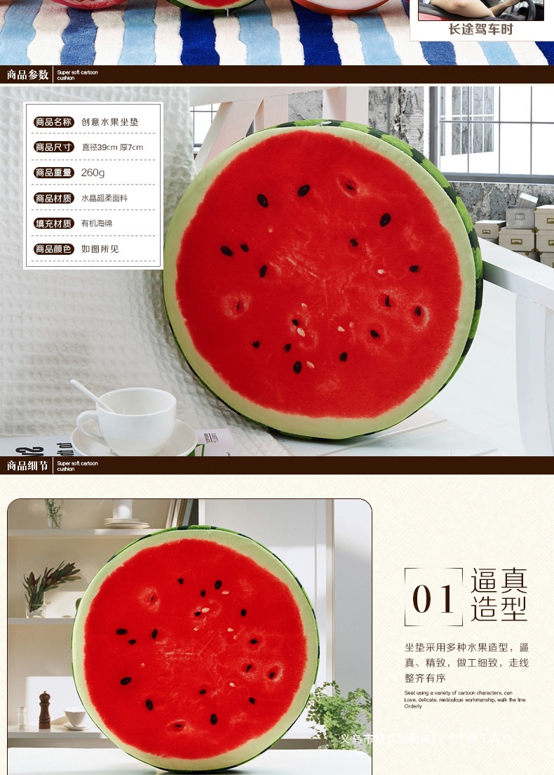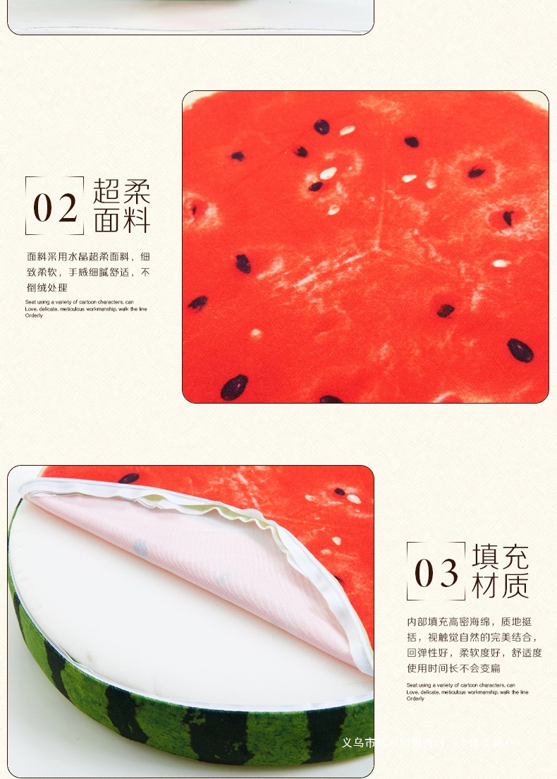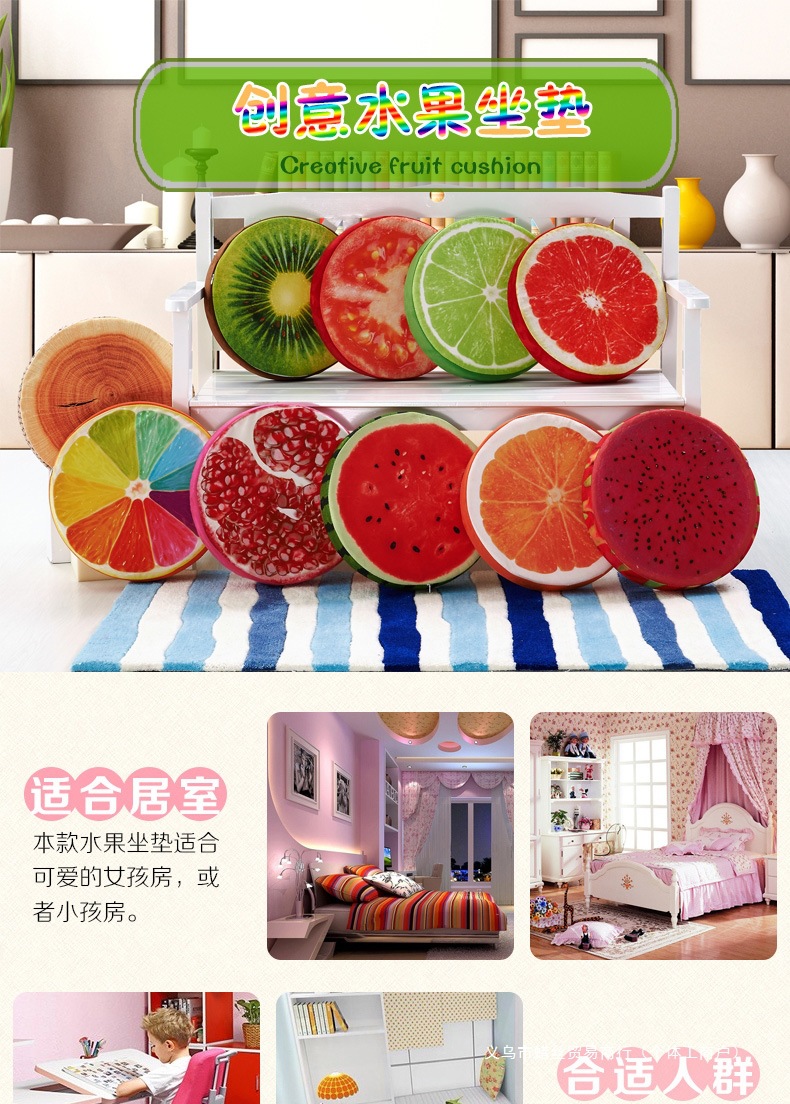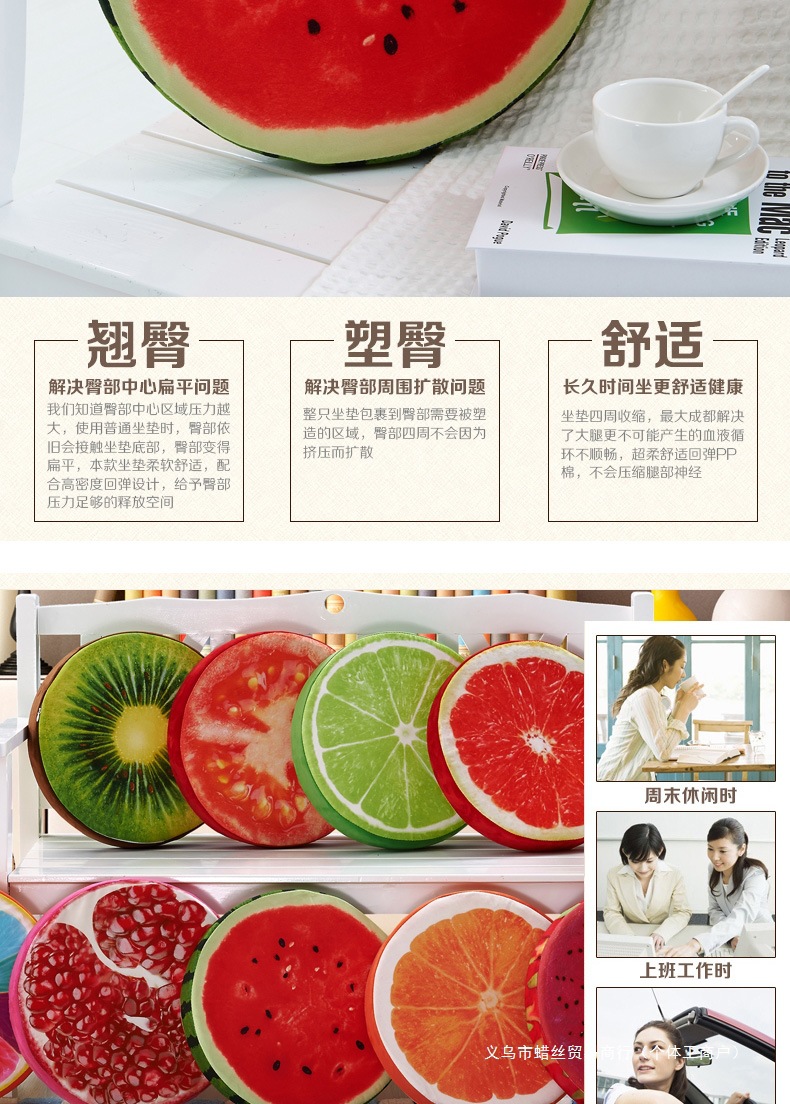 *此款3D水果坐垫采用电脑数码印花烫制,可拆洗 不褪色,超柔面料制作,质量好手感舒适。双面印花,大号:直径39厘米,厚度7厘米,小号:直径27厘米,厚度4厘米。手工测量裁剪会有1cm左右的误差。