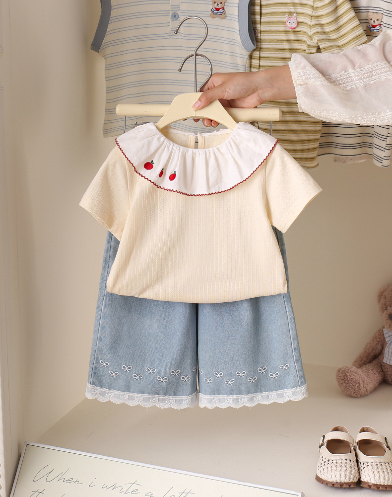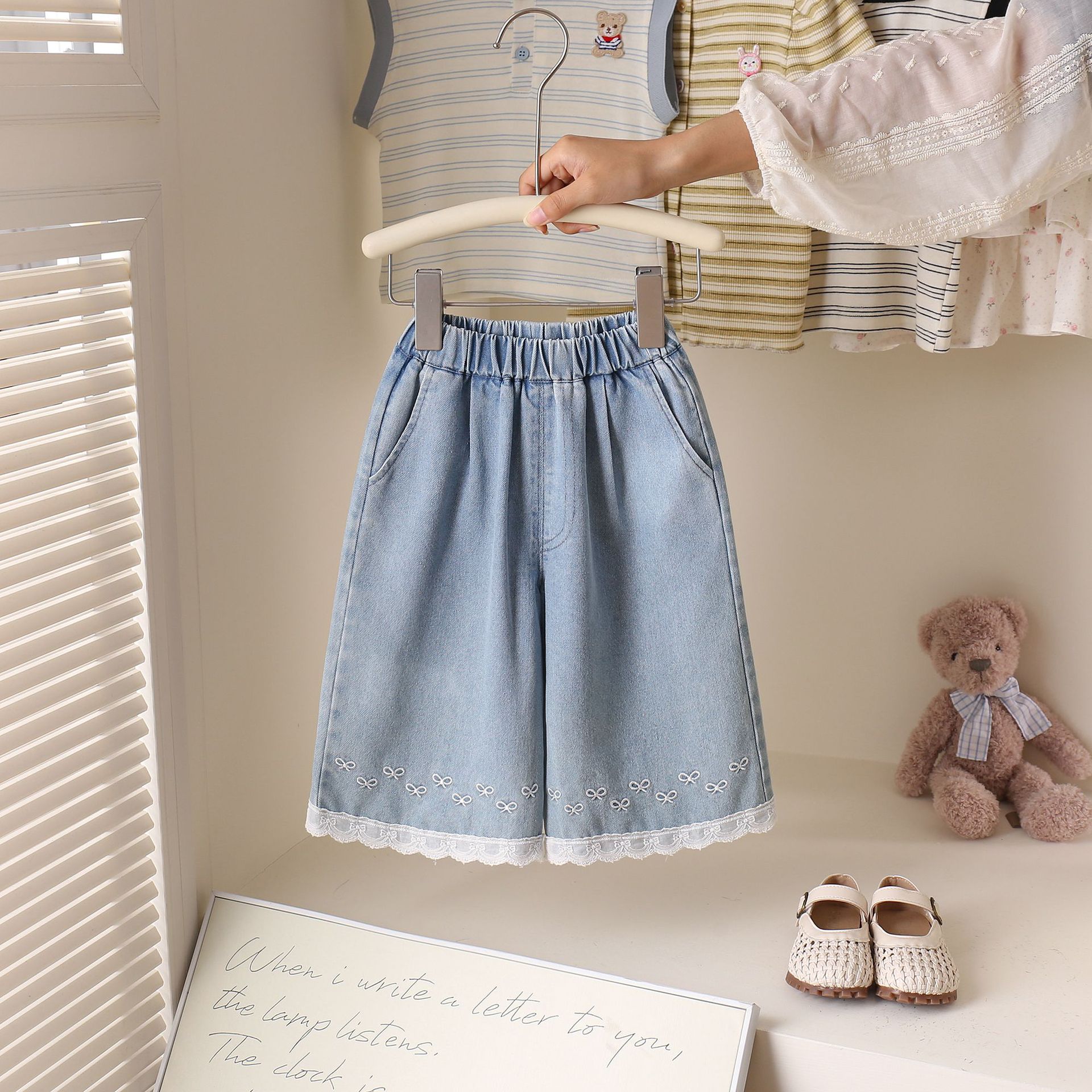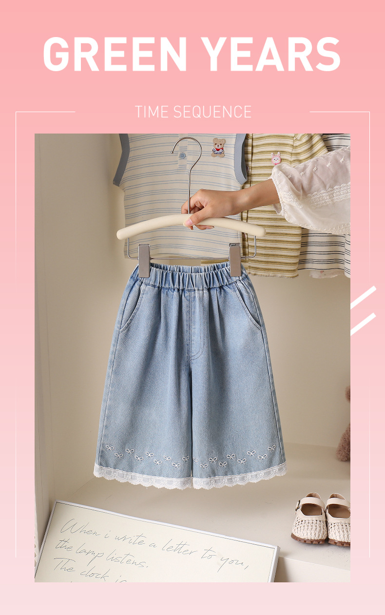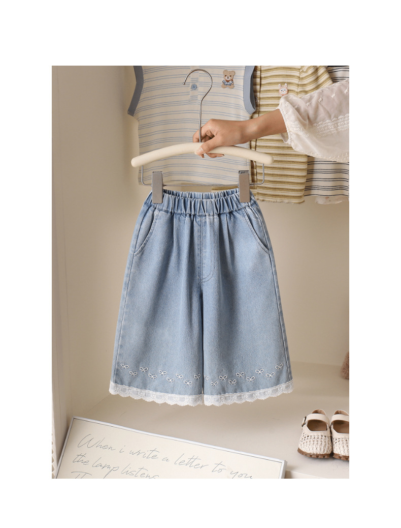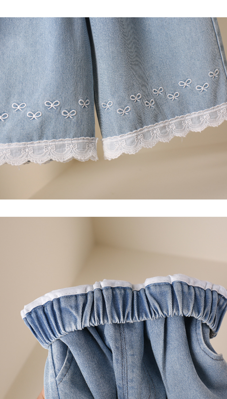 소녀 여름 한국 스타일 청바지 서양식 레이스 바느질 발목 길이 바지 여름 경량 유행 활 청바지스토어 가기