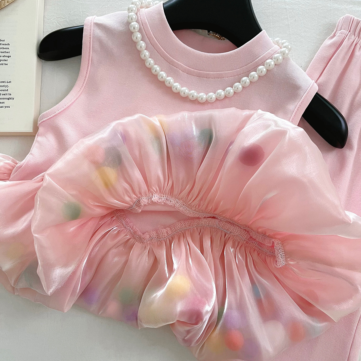 소녀 민소매 스티칭 조끼 세트 2025 여름 새 소녀의 유행 스트레치 투피스 트렌디 세트