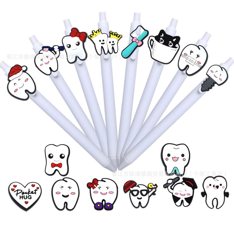 치아 보호 데이 치과 시리즈 만화 크리 에이 티브 PVC 장식 스티커 프레스 펜 학교 파티 편지지 선물 젤 펜