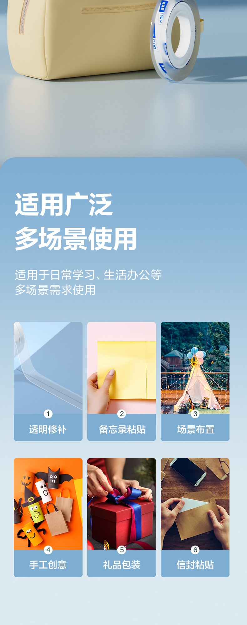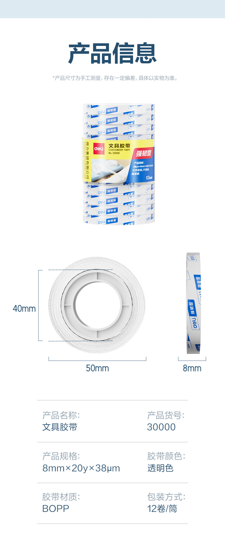 델리 투명 테이프 8mm 학생용 와이드 테이프 12mm 얇은 사무실 씰링 소형 테이프 18mm
