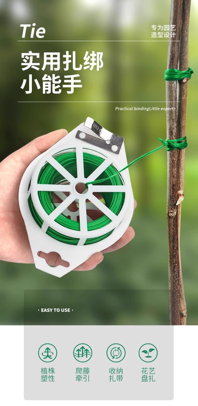 원예용 타이, 플라스틱 코팅 철제 와이어, 타이, 커터, 덩굴 식물 고정 로프, 타이, 꽃 스탠드, 모양, 햇빛
