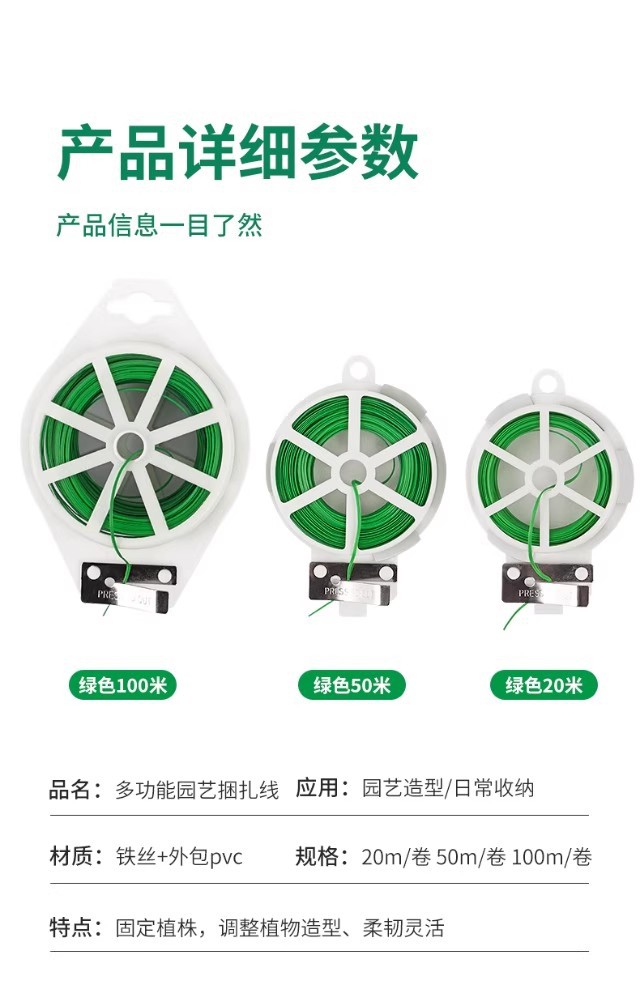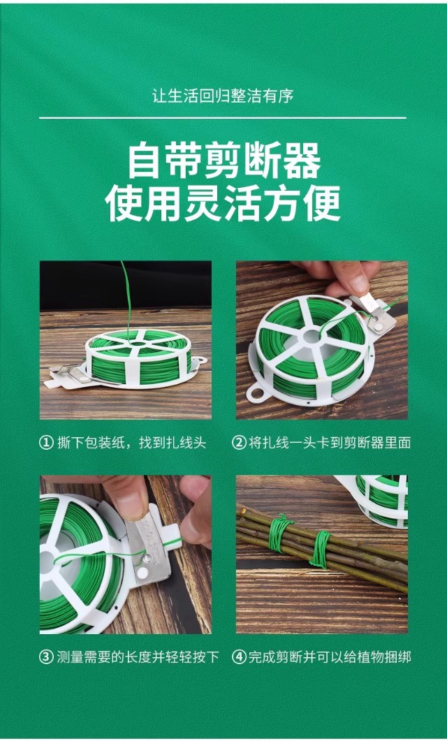 원예용 타이, 플라스틱 코팅 철제 와이어, 타이, 커터, 덩굴 식물 고정 로프, 타이, 꽃 스탠드, 모양, 햇빛스토어 가기