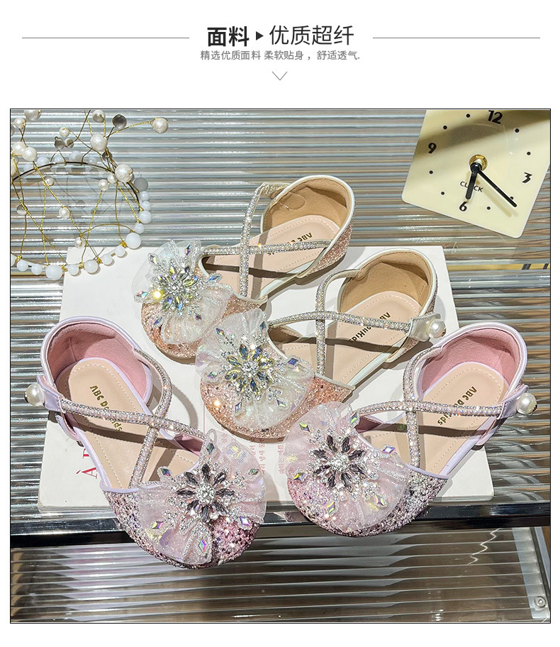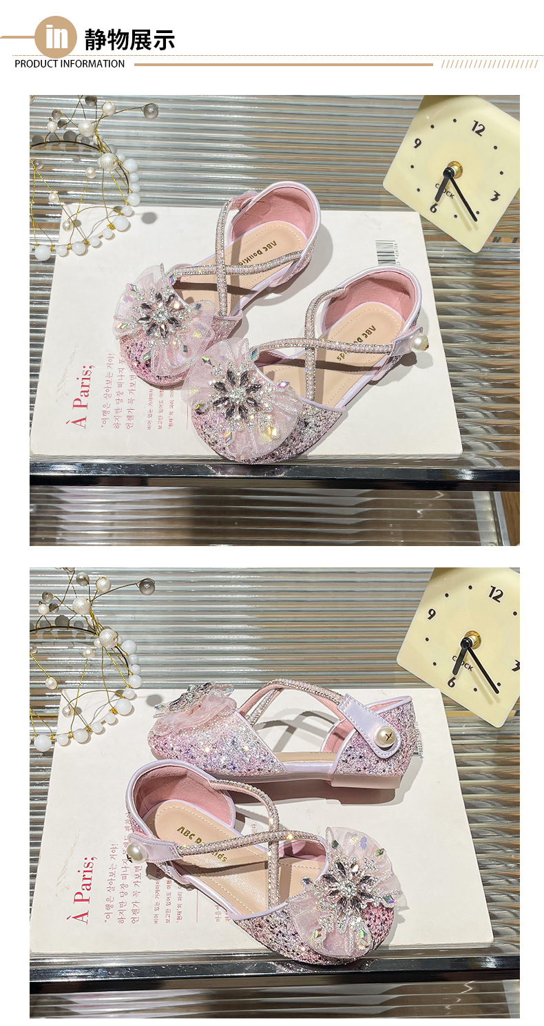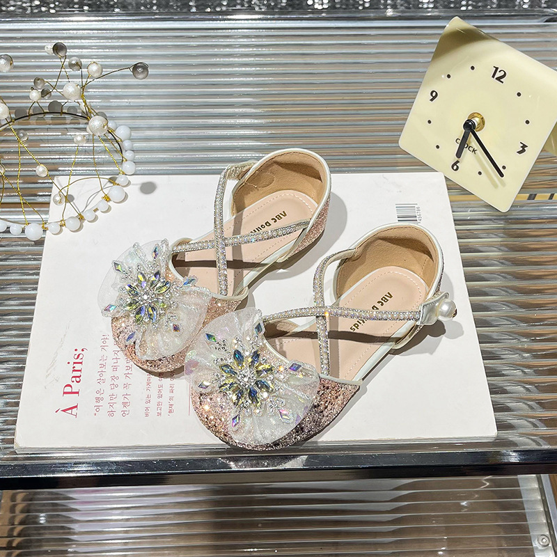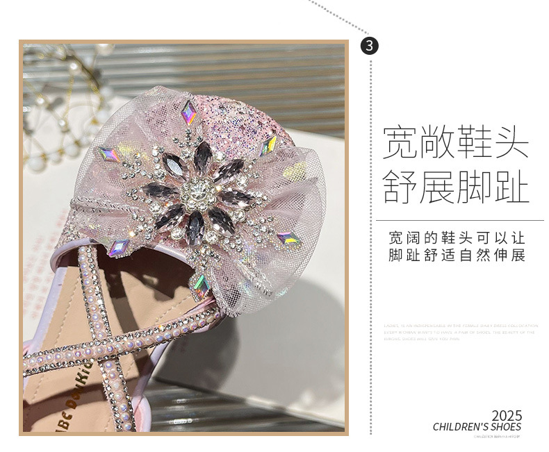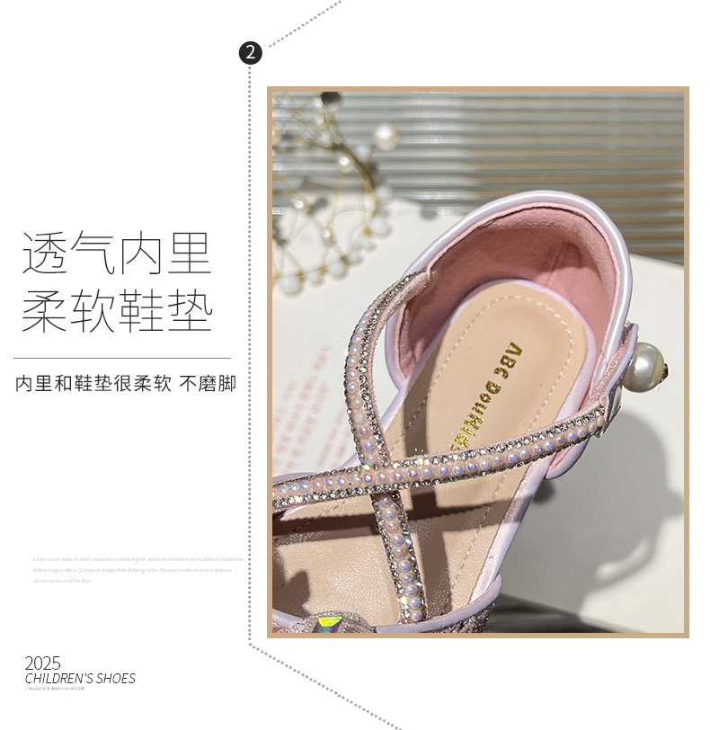 소녀의 크리스탈 샌들 2025 봄 새로운 도착 소녀의 패션 라인스톤 공주 신발 어린이 소프트 솔 샌들