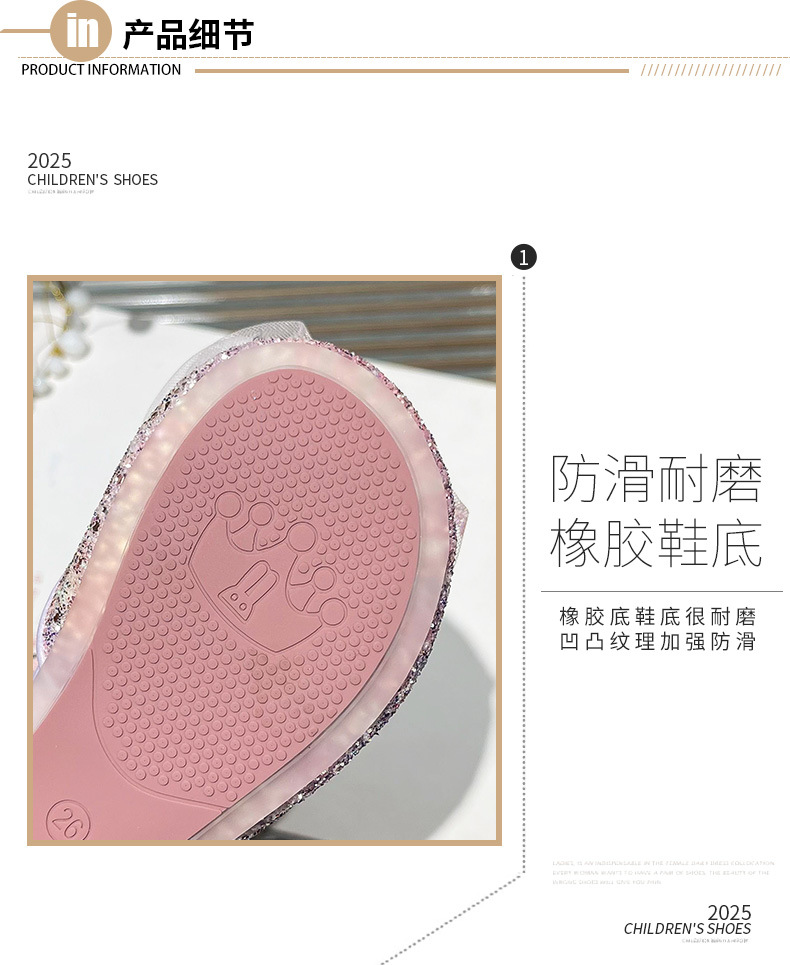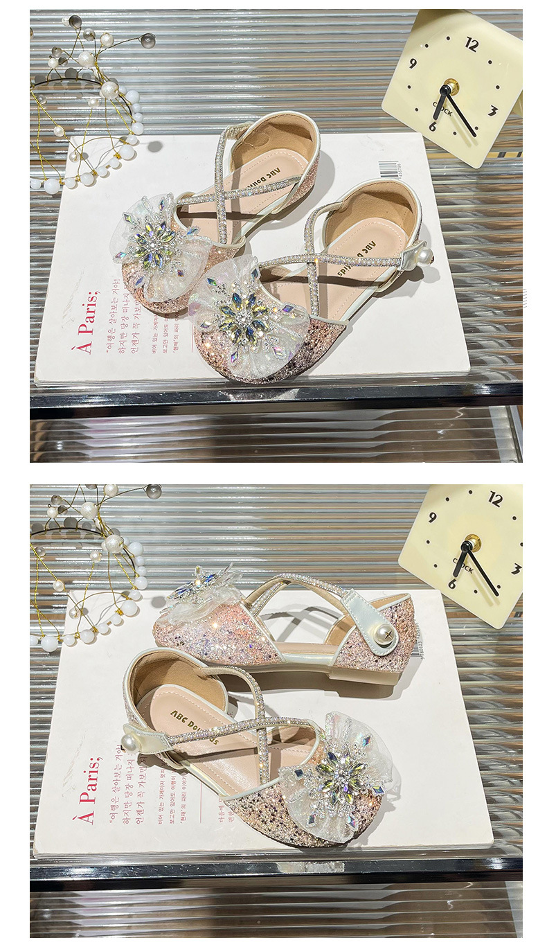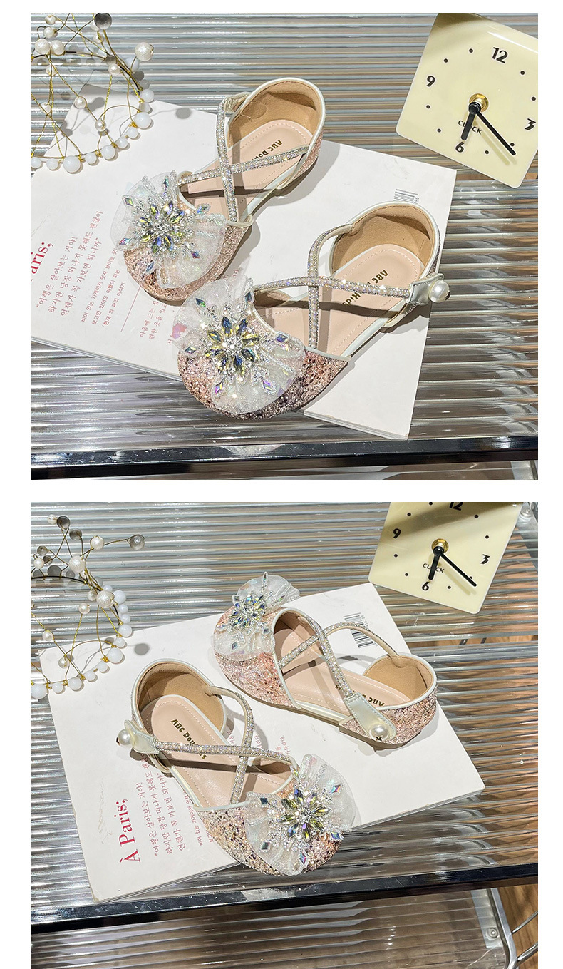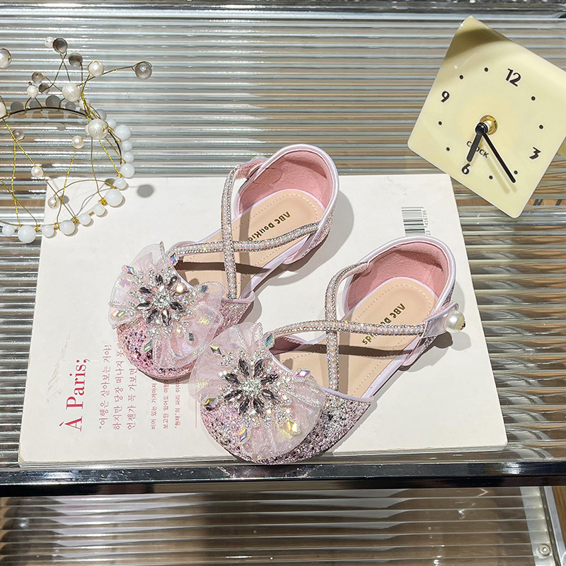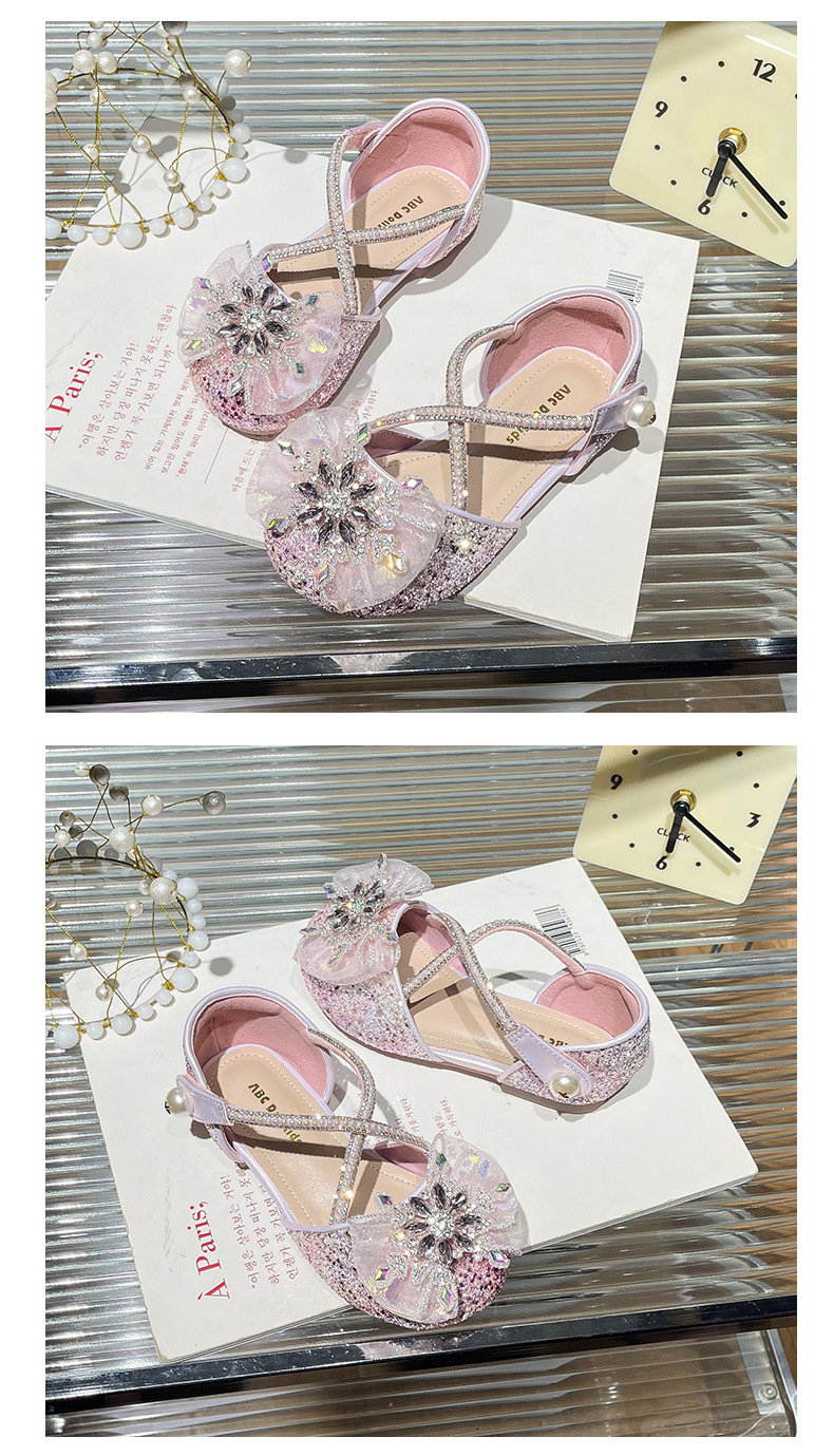 소녀의 크리스탈 샌들 2025 봄 새로운 도착 소녀의 패션 라인스톤 공주 신발 어린이 소프트 솔 샌들