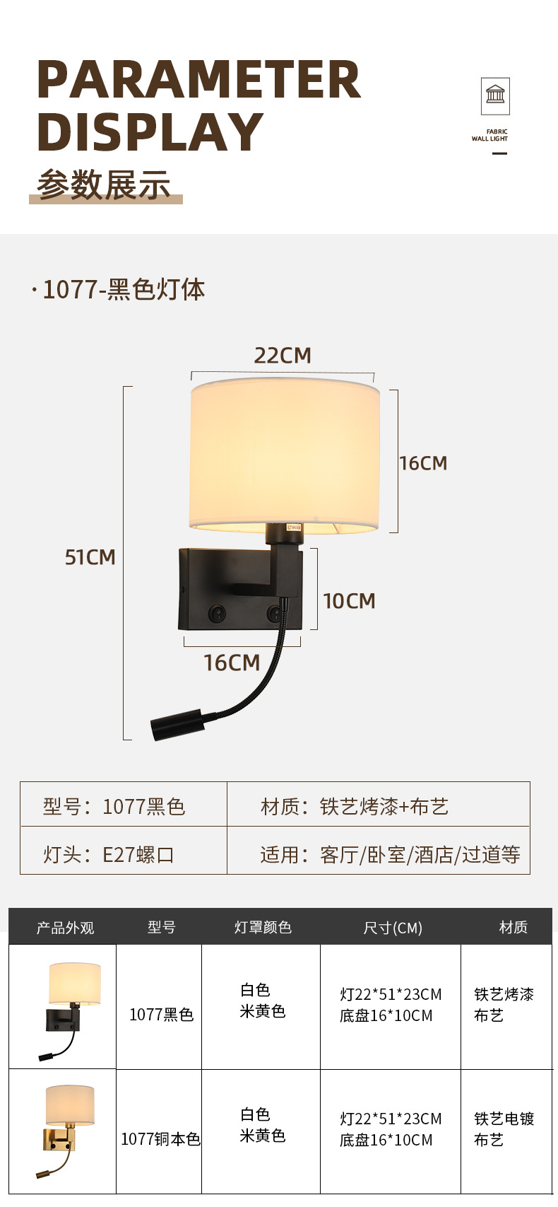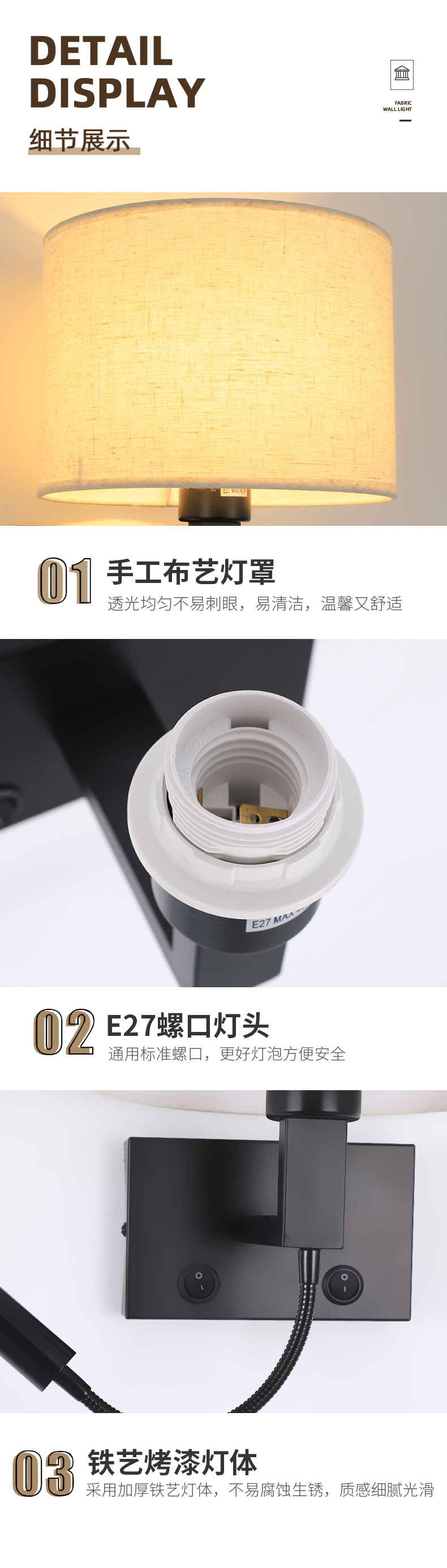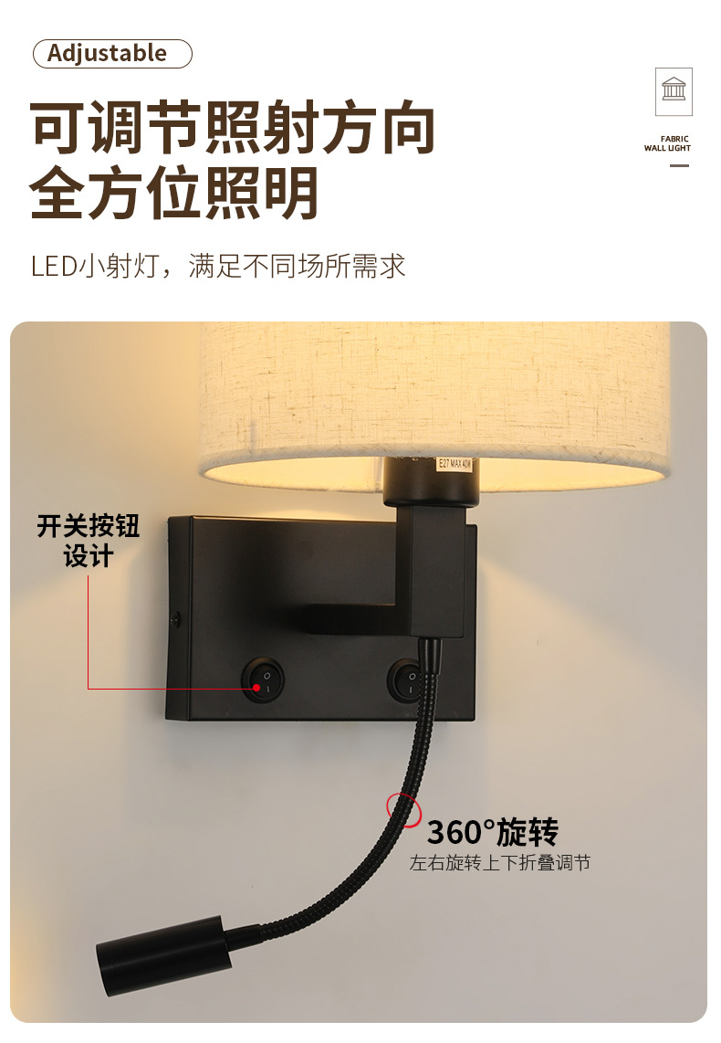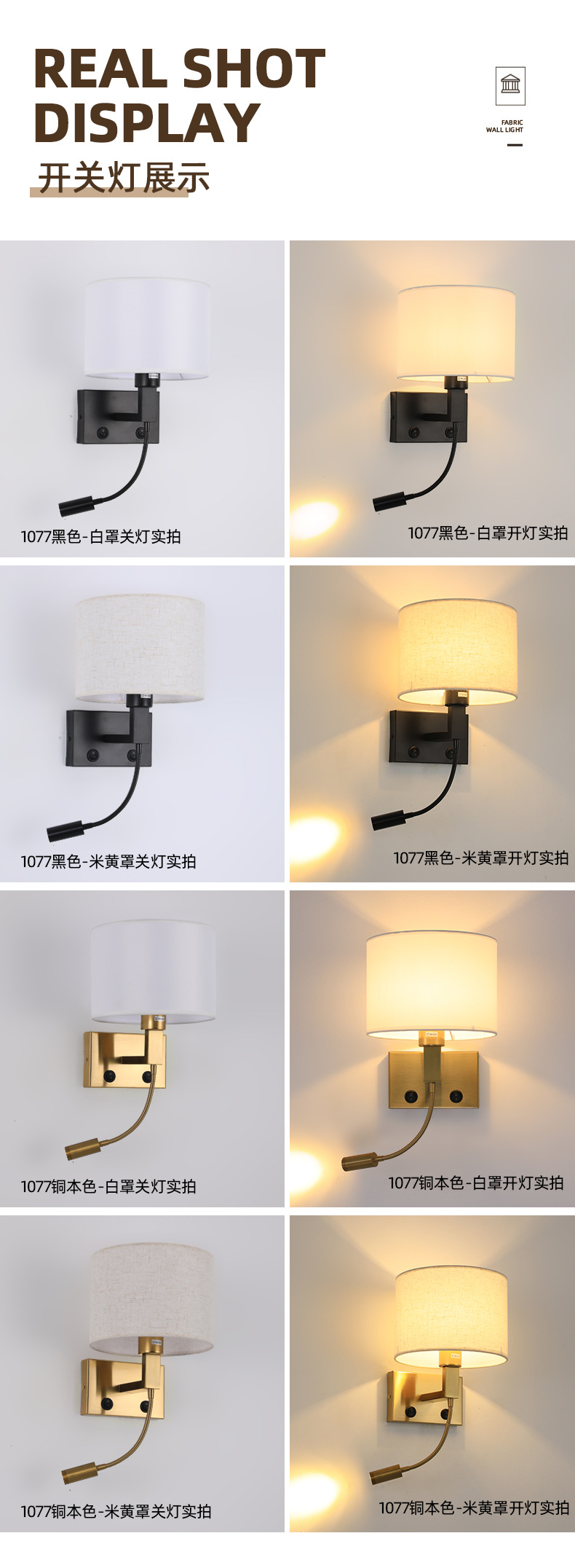 새로운 패브릭 호텔 침대 옆 램프 미국 미니멀리스트 B&B 침실 객실 연구 인터넷 연예인 벽 램프 국경 간 도매