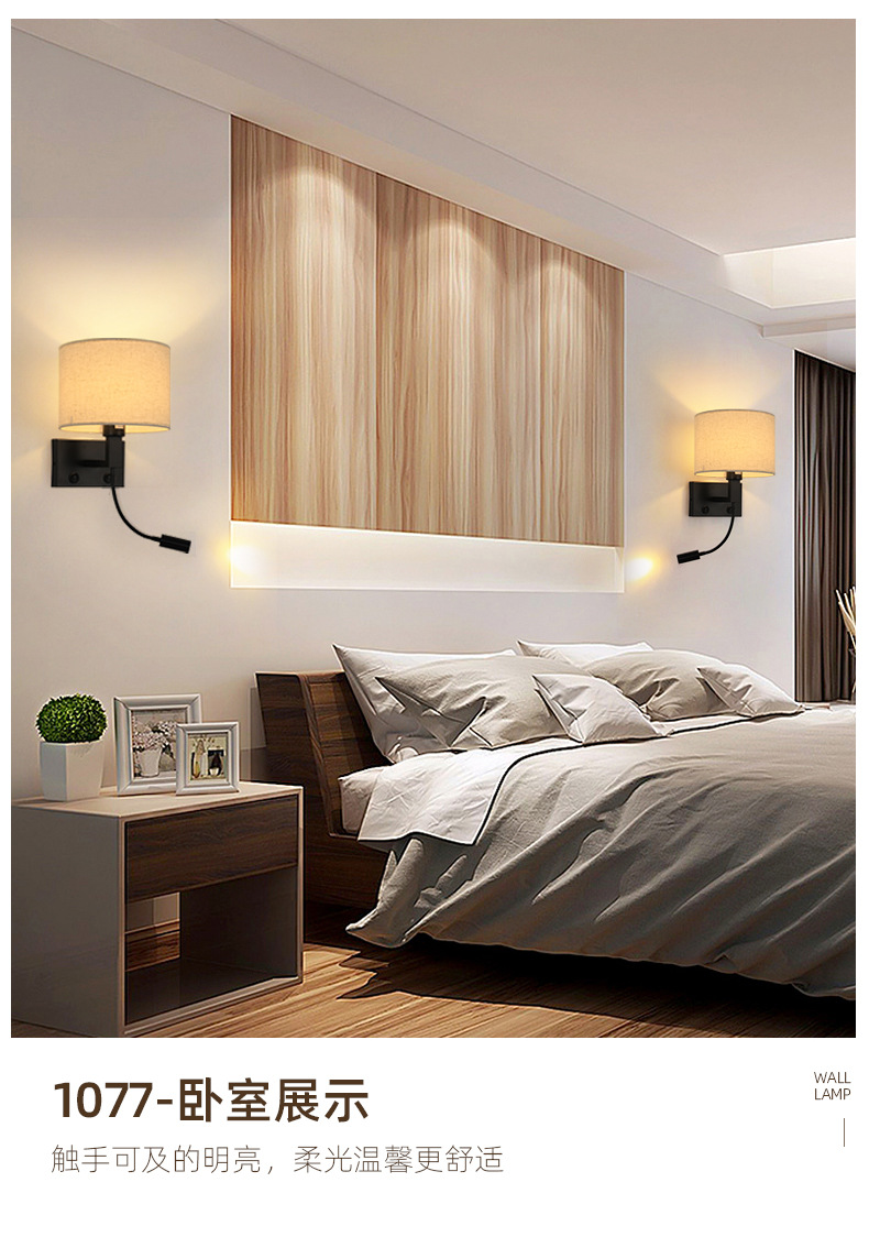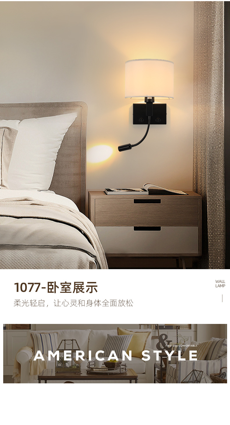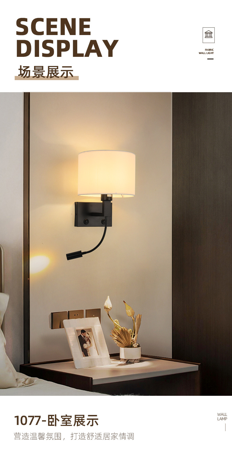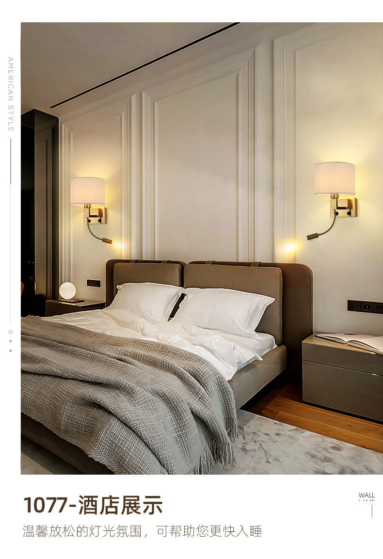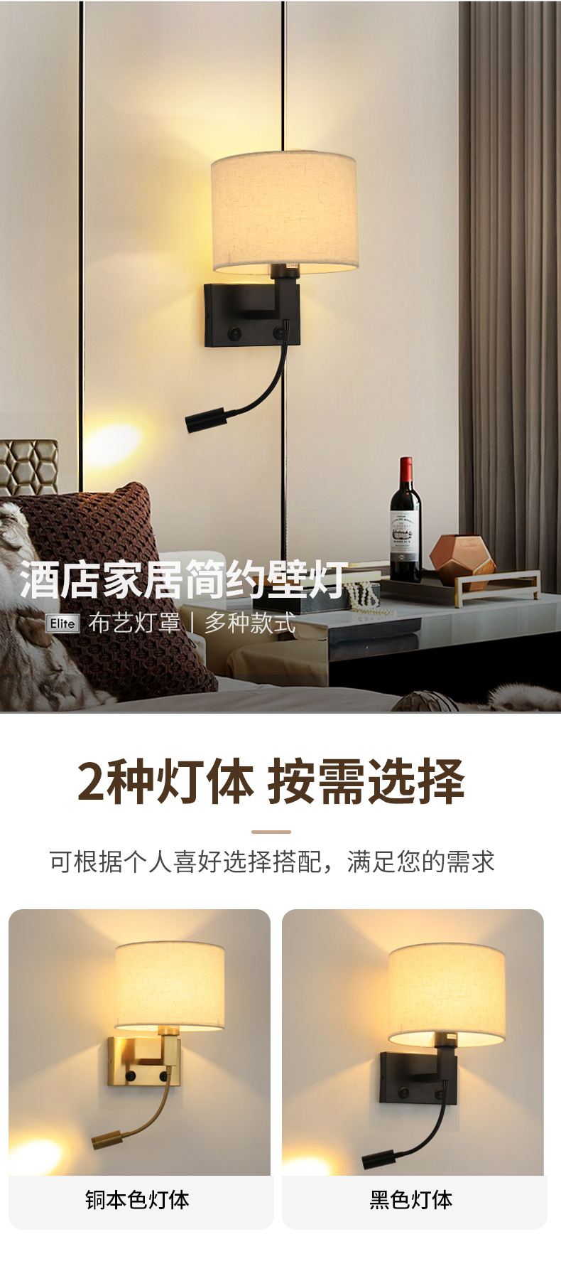 새로운 패브릭 호텔 침대 옆 램프 미국 미니멀리스트 B&B 침실 객실 연구 인터넷 연예인 벽 램프 국경 간 도매스토어 가기