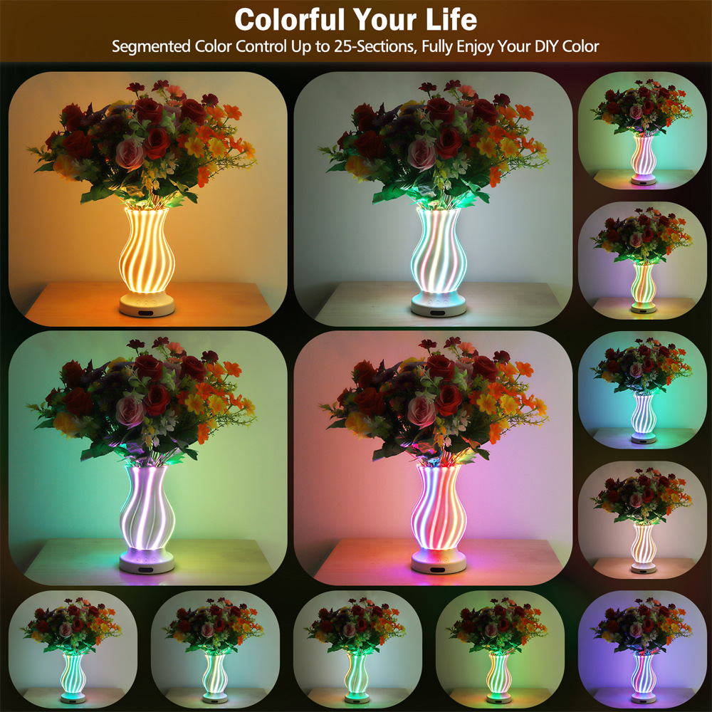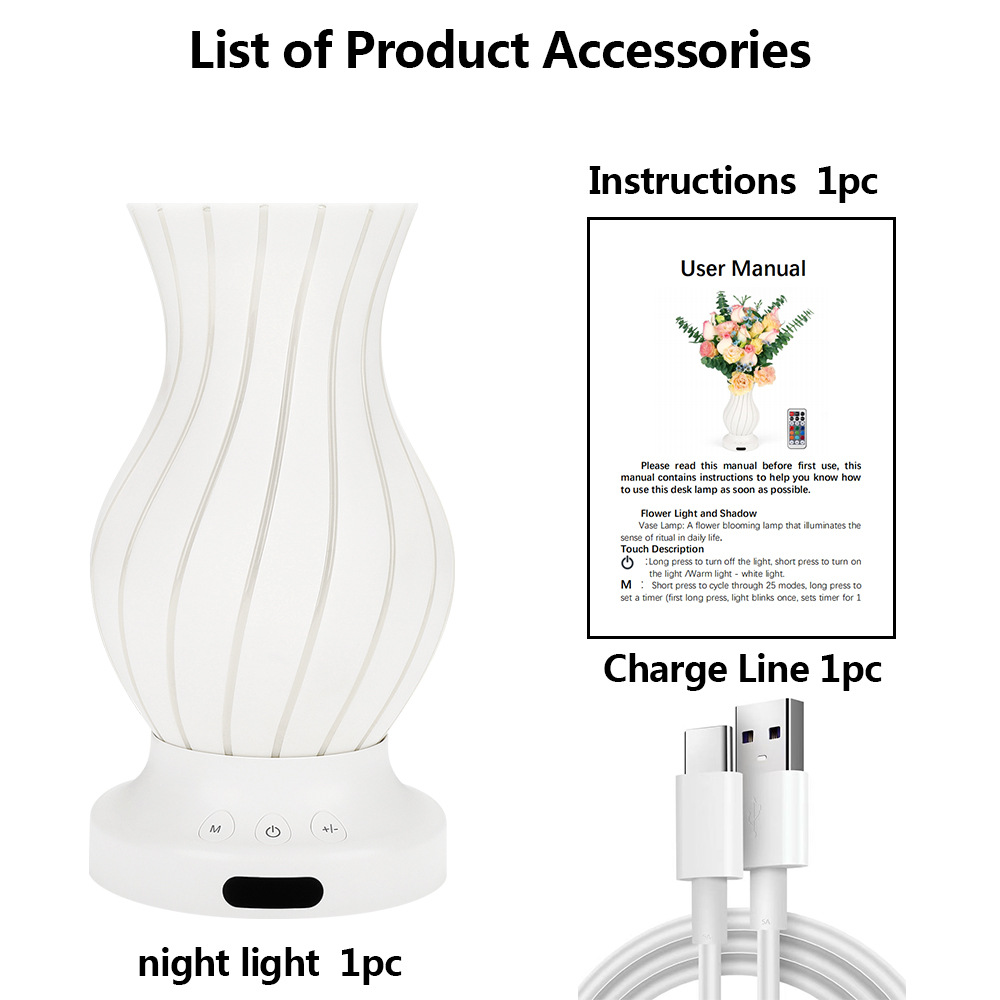 새로운 원격 제어 꽃병 야간 조명 침실 머리맡 램프 분위기 램프 데스크탑 장식 꽃꽂이 램프 RGB 색상 변경 USB 충전