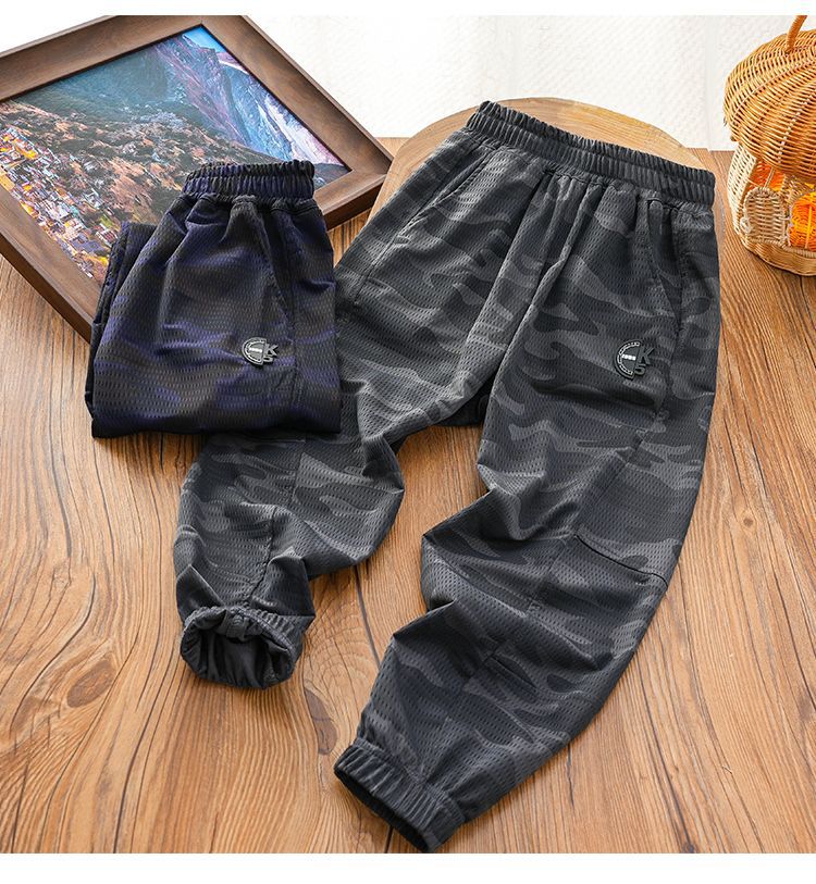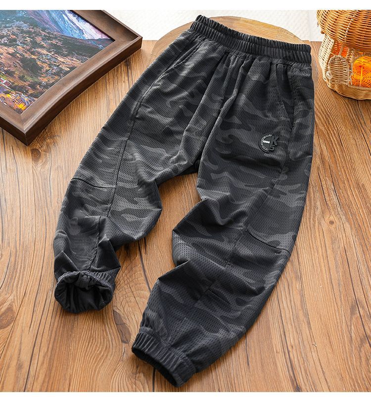 남아용 메쉬 속건 바지, 중대형 어린이용 남아 카모플라주 모기 방지 바지, 아동용 캐주얼 스포츠 긴바지, 통기성스토어 가기