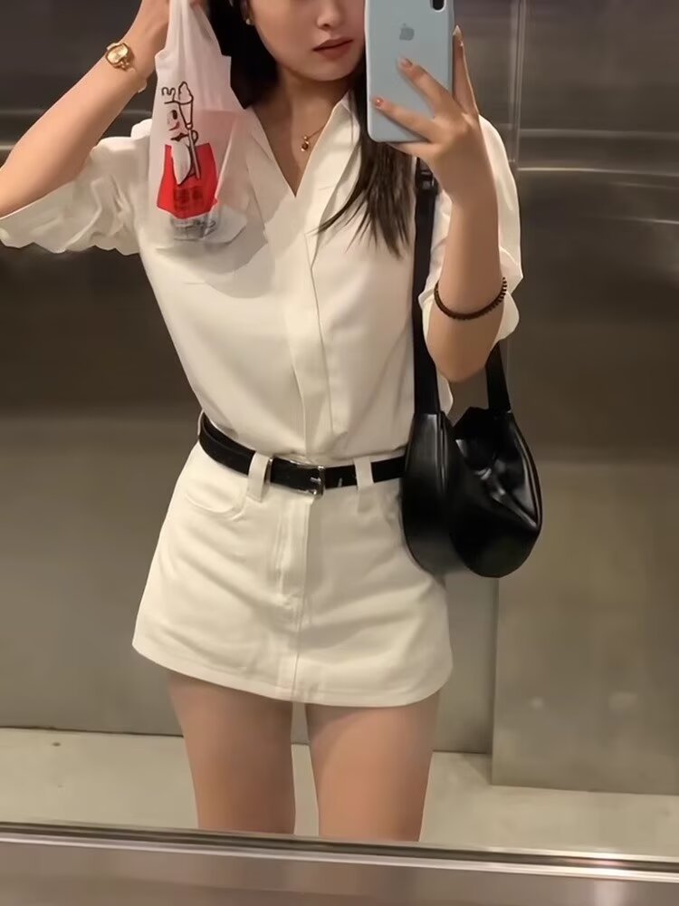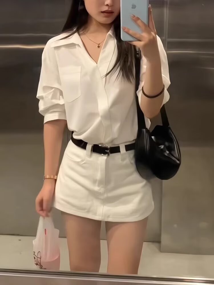 화이트 데님 스커트 여성 여름 새로운 복고풍 슬리밍 올 매치 패션 핫 소녀 힙합 스커트 여성 의류스토어 가기