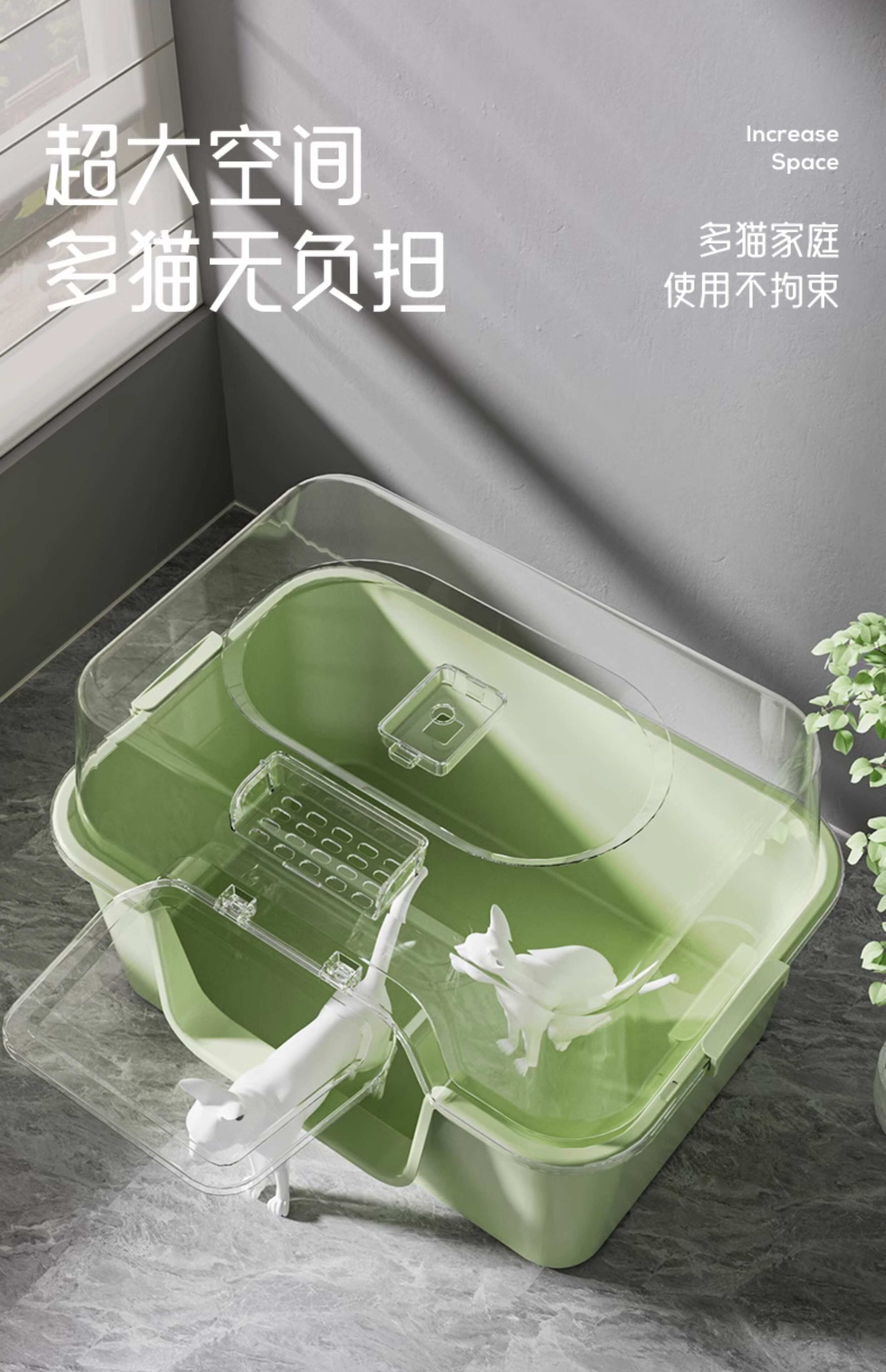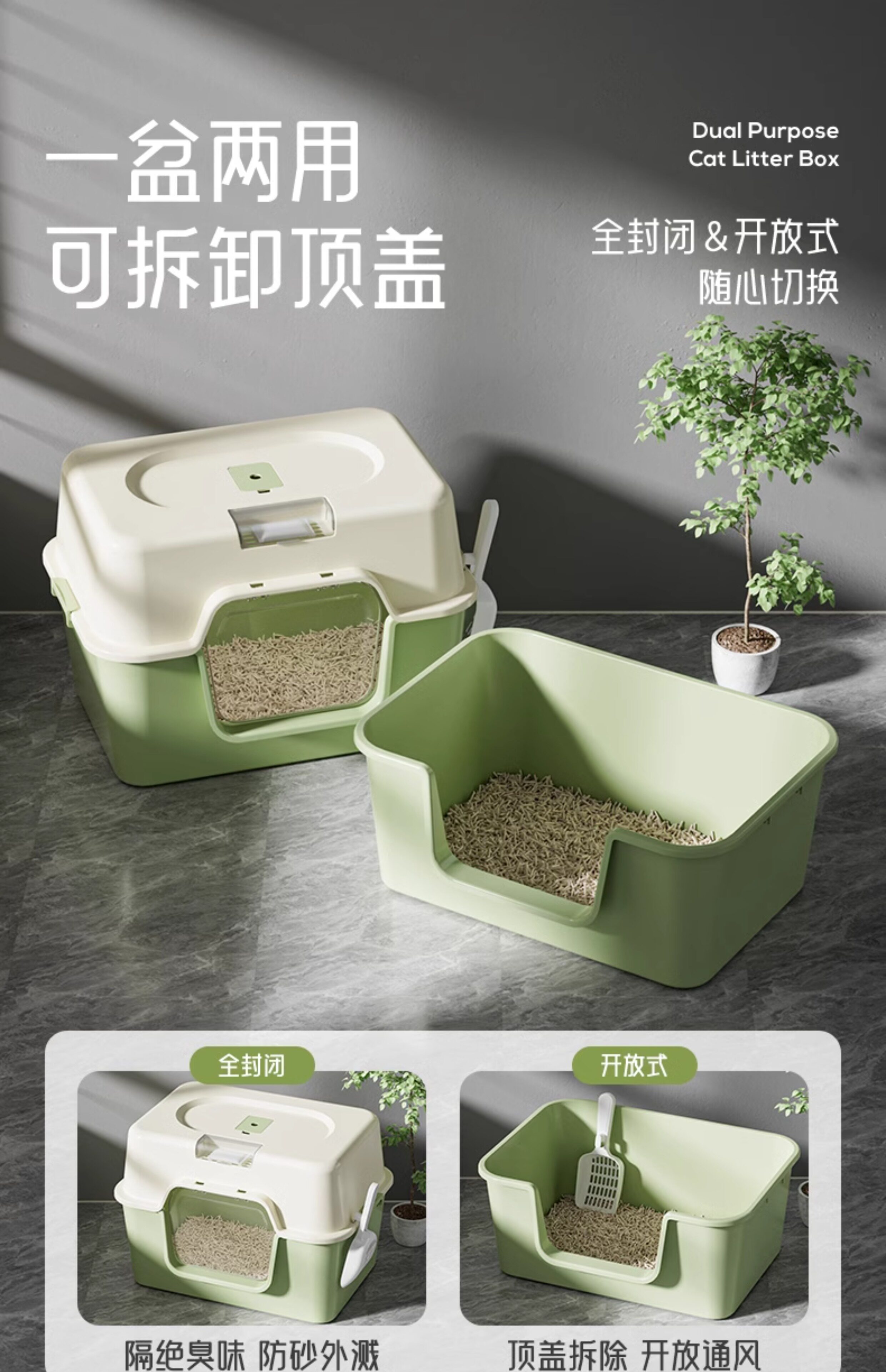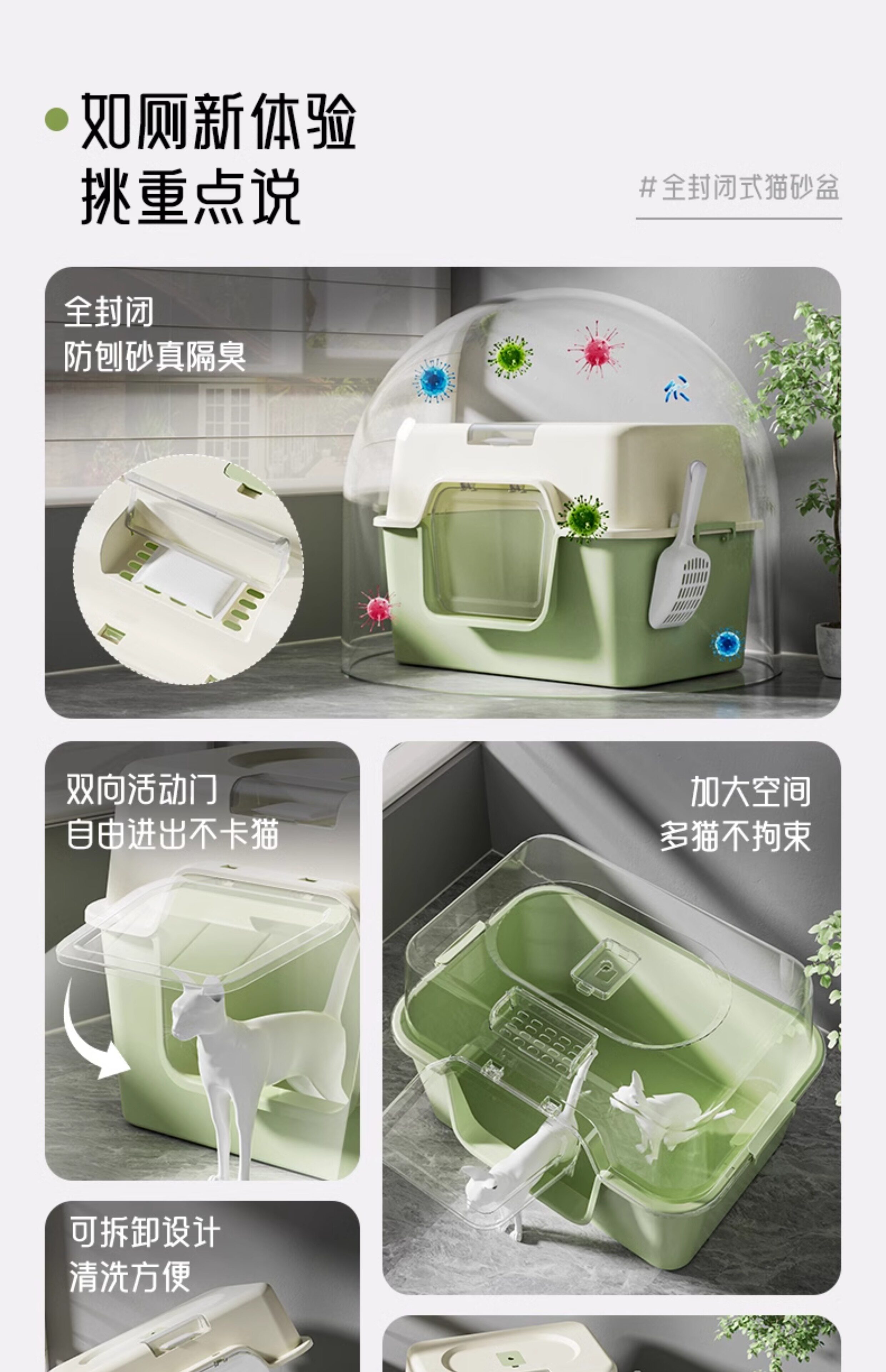 완전 밀폐형 고양이 쓰레기통, 냄새 방지, 초대형, 물 튀김 방지 고양이 쓰레기통, 반 밀폐형 새끼 고양이 초대형 고양이 화장실