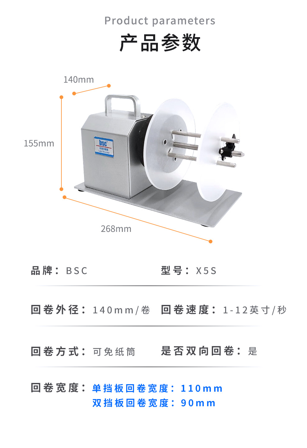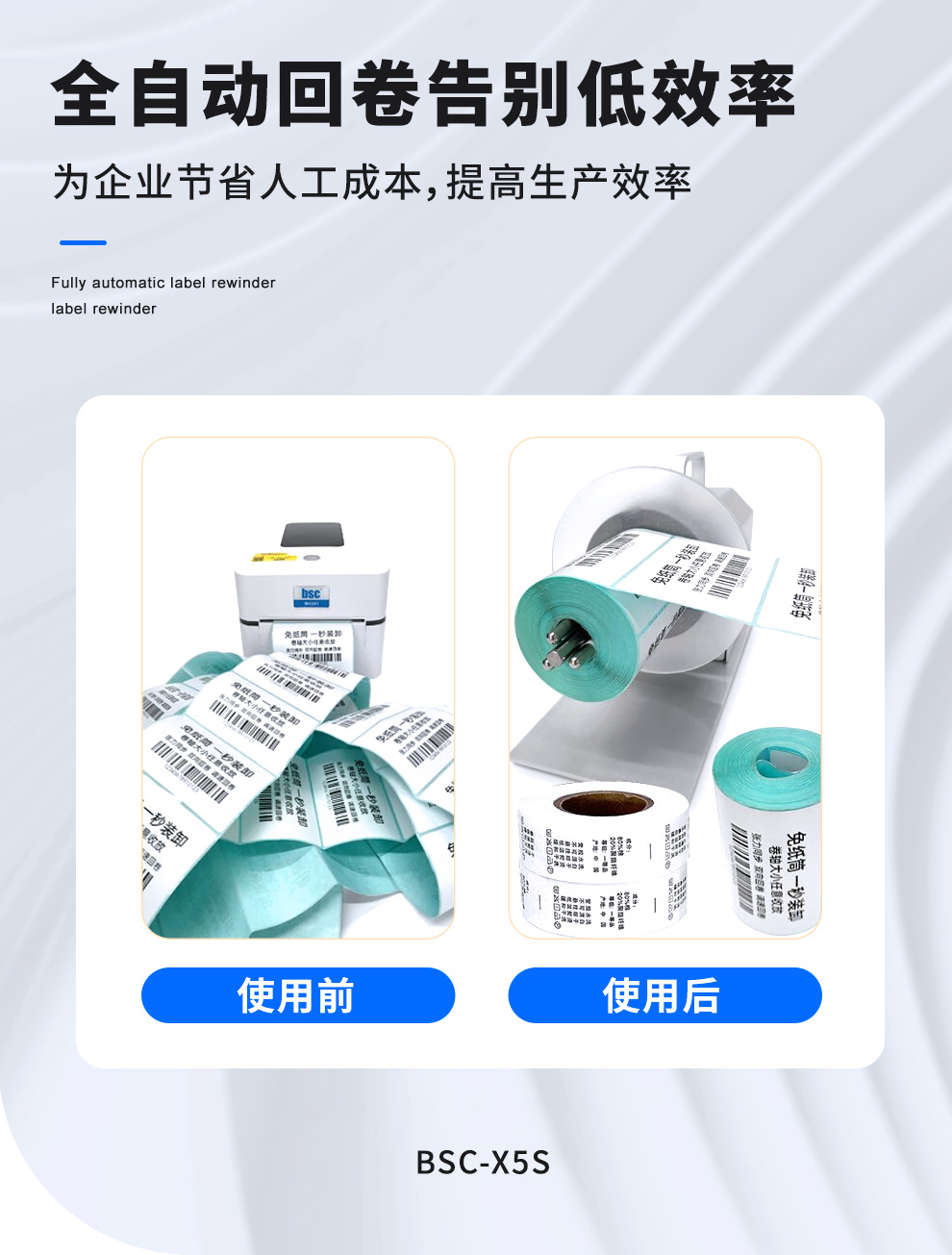 BSC- X5S 자동 라벨 되감기 장치 코어리스 자체 접착 되감기 장치 프린터 전기 종이 되감기 장치스토어 가기