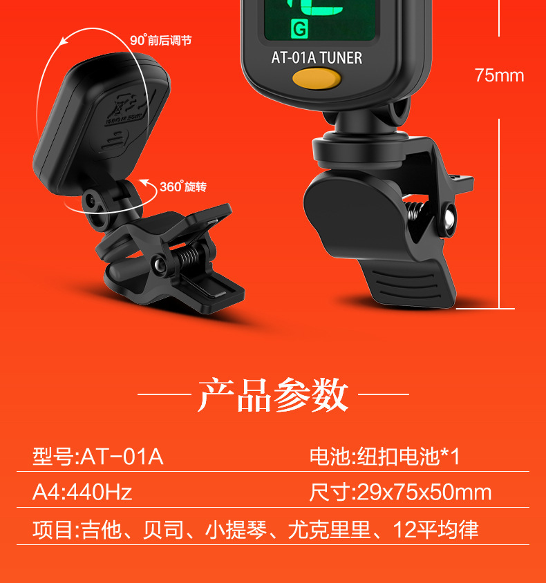 국경 간 Armona 포크 기타 튜너 우쿨렐레 바이올린 범용 정품 전자 튜너스토어 가기
