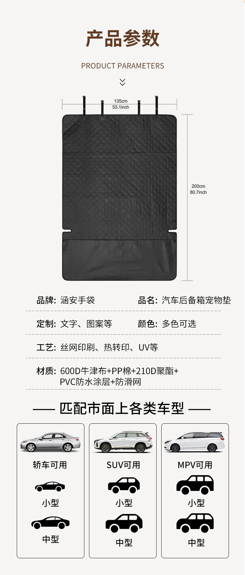 맞춤형 자동차 트렁크 애완동물 매트, 외출용 방수 및 오염 방지, 강아지 전용 자동차 트렁크 옥스포드 천 강아지 매트스토어 가기
