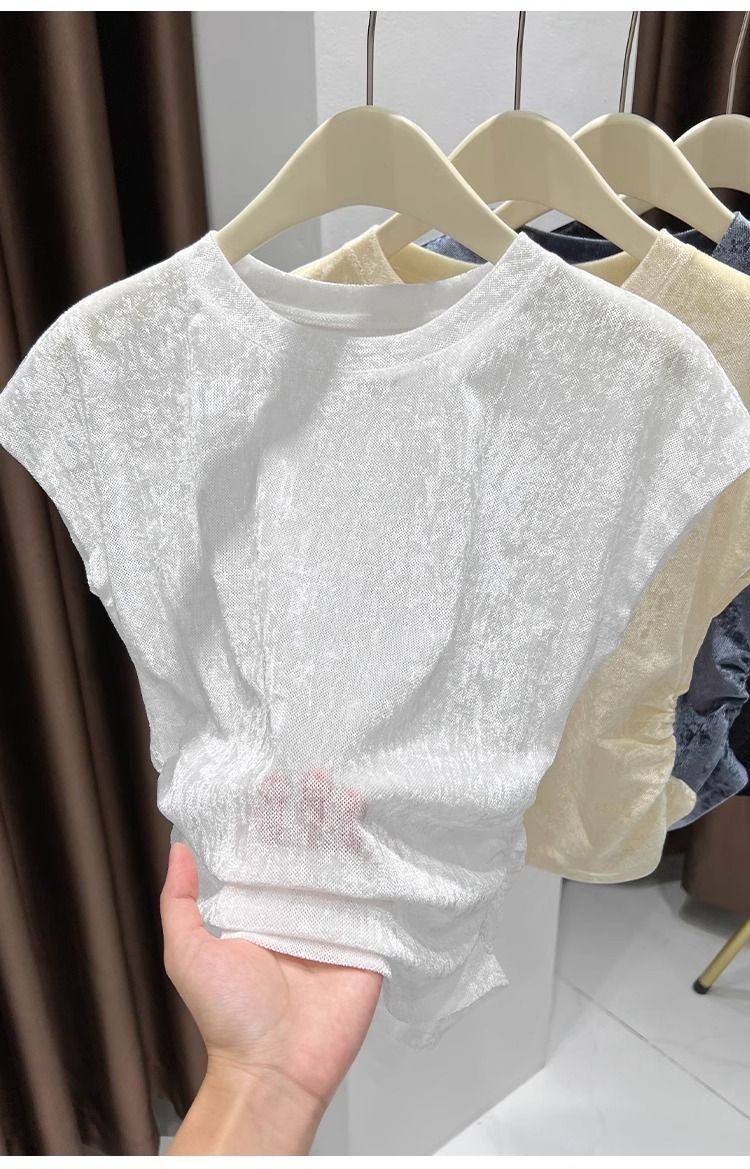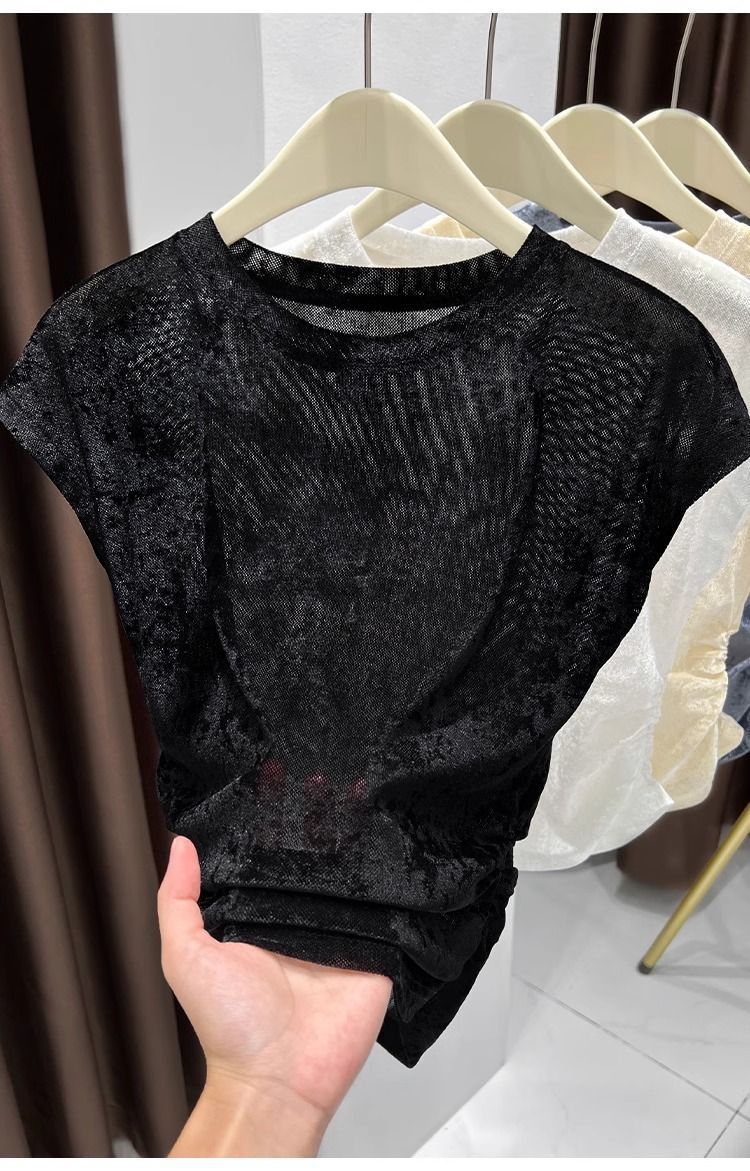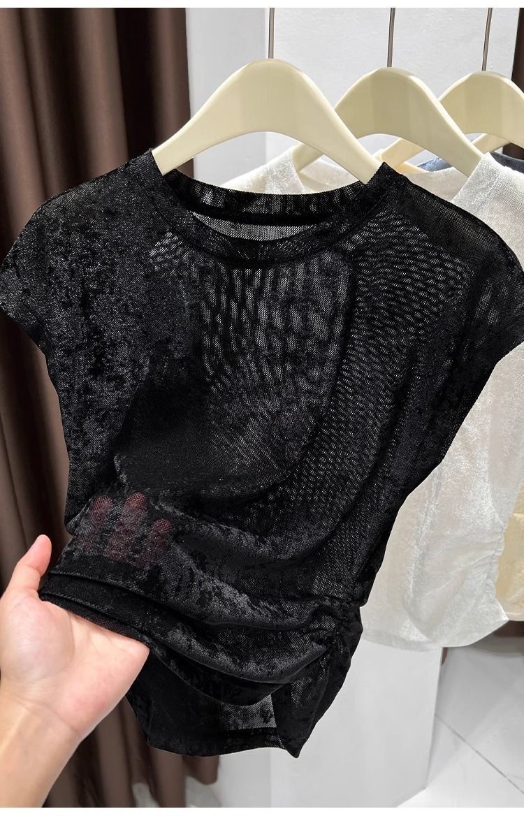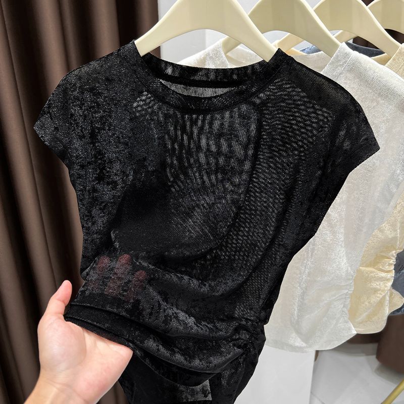 메쉬 반팔 티셔츠 여성 여름 2025 새로운 슬리밍 패셔너블 쿨 작은 플라잉 슬리브 짧은베이스 탑