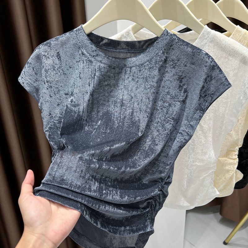 메쉬 반팔 티셔츠 여성 여름 2025 새로운 슬리밍 패셔너블 쿨 작은 플라잉 슬리브 짧은베이스 탑스토어 가기
