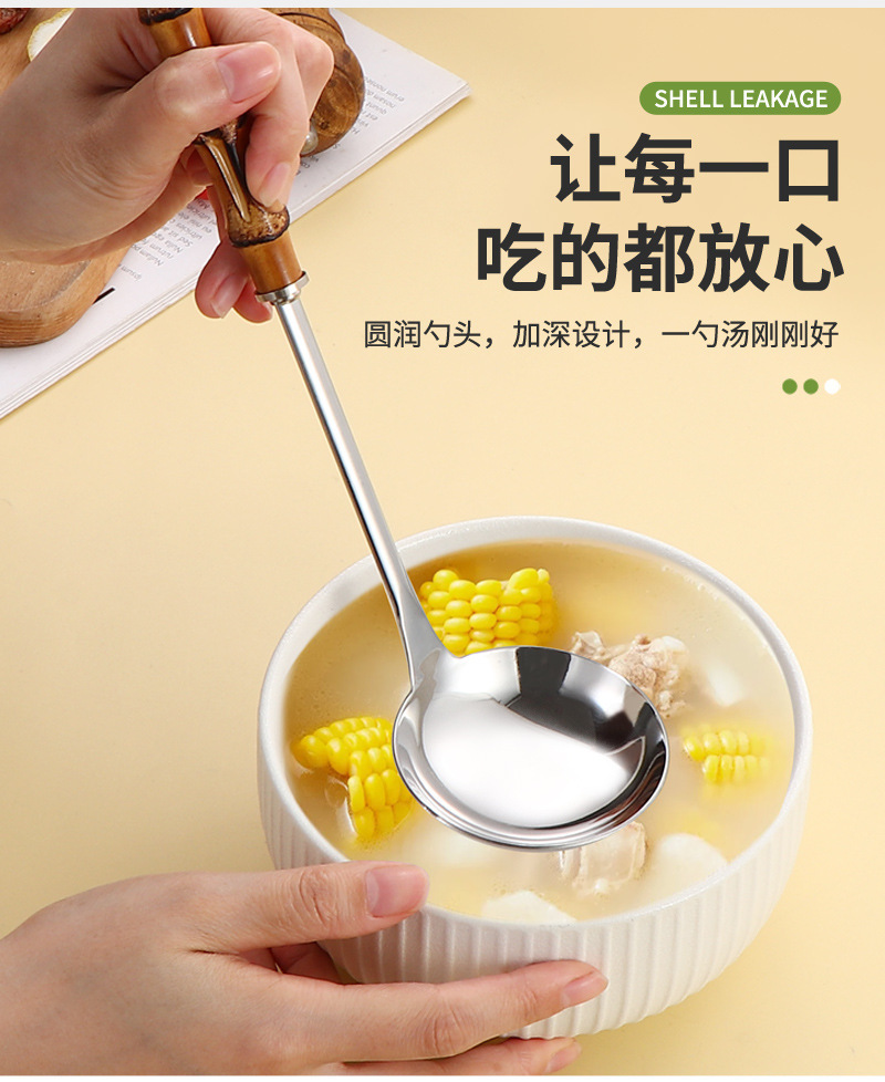 스테인레스 스틸 수프 쉘 크리 에이 티브 대나무 손잡이 수프 소쿠리 호텔 주방 가제트 냄비 스푼 레스토랑 긴 손잡이 소쿠리스토어 가기