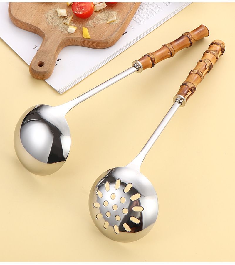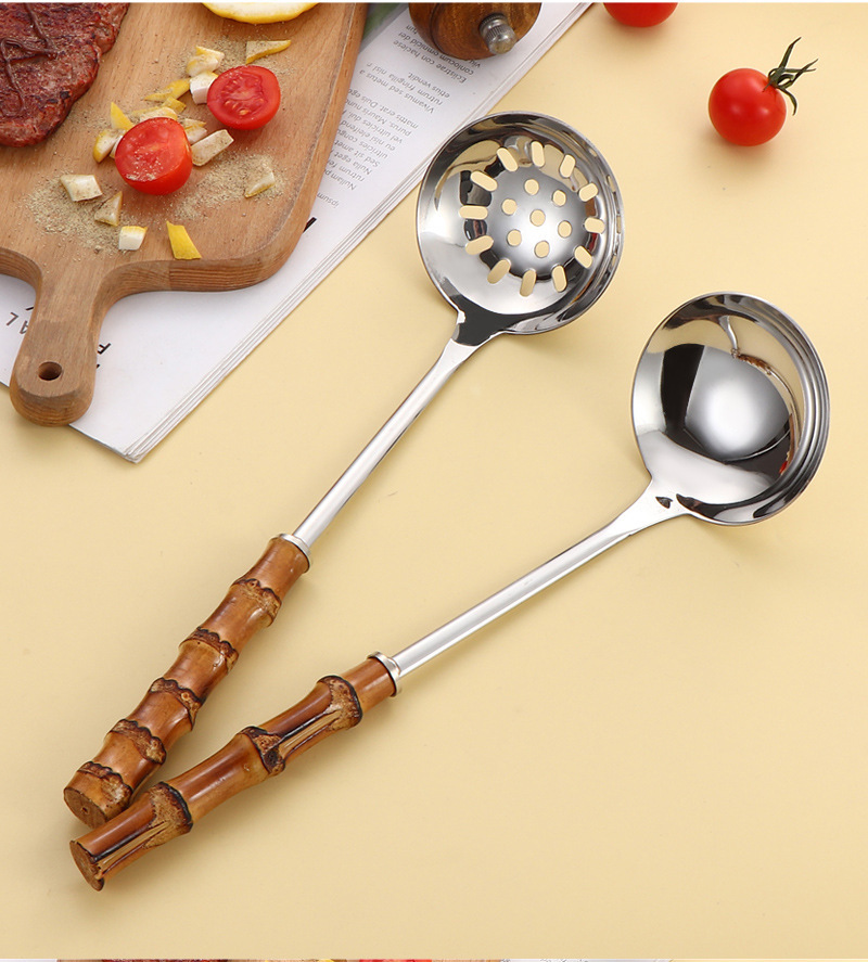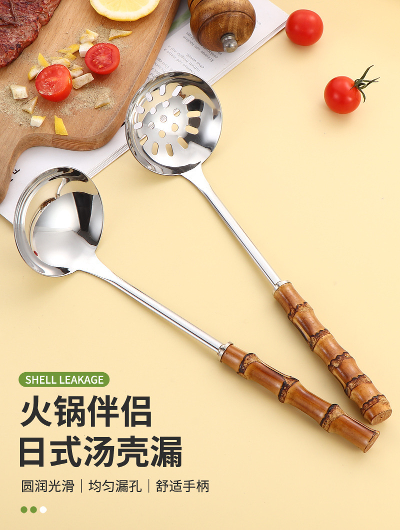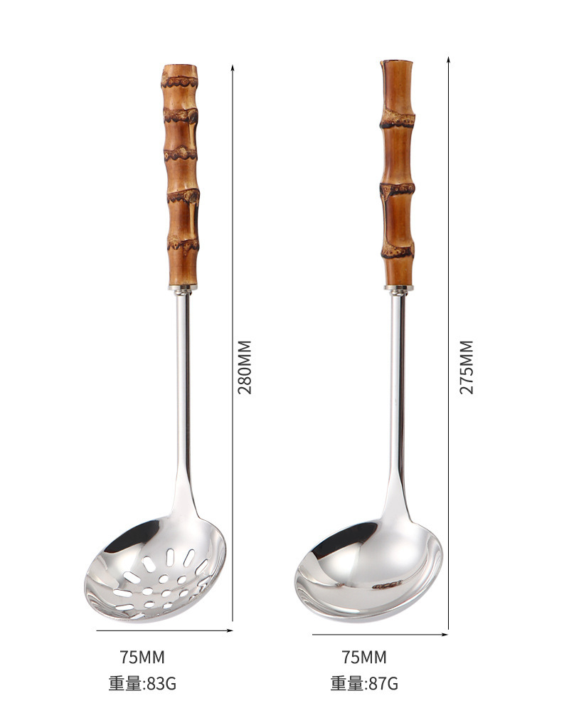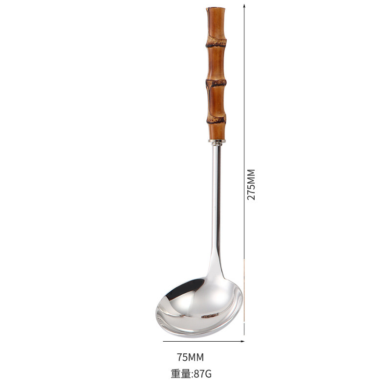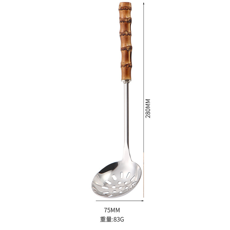 스테인레스 스틸 수프 쉘 크리 에이 티브 대나무 손잡이 수프 소쿠리 호텔 주방 가제트 냄비 스푼 레스토랑 긴 손잡이 소쿠리