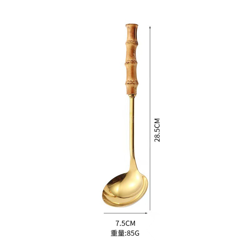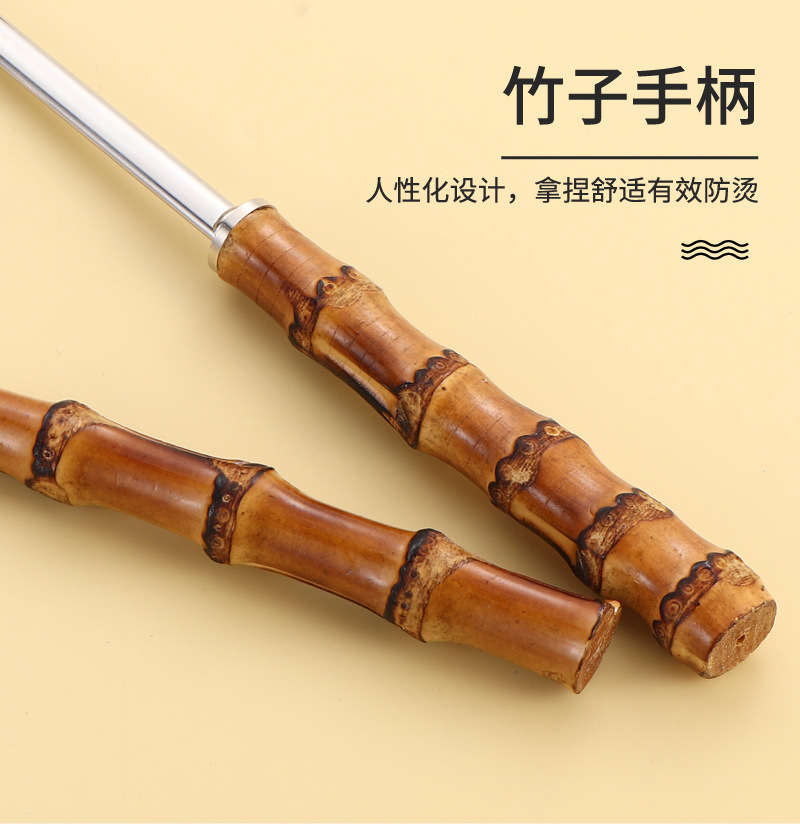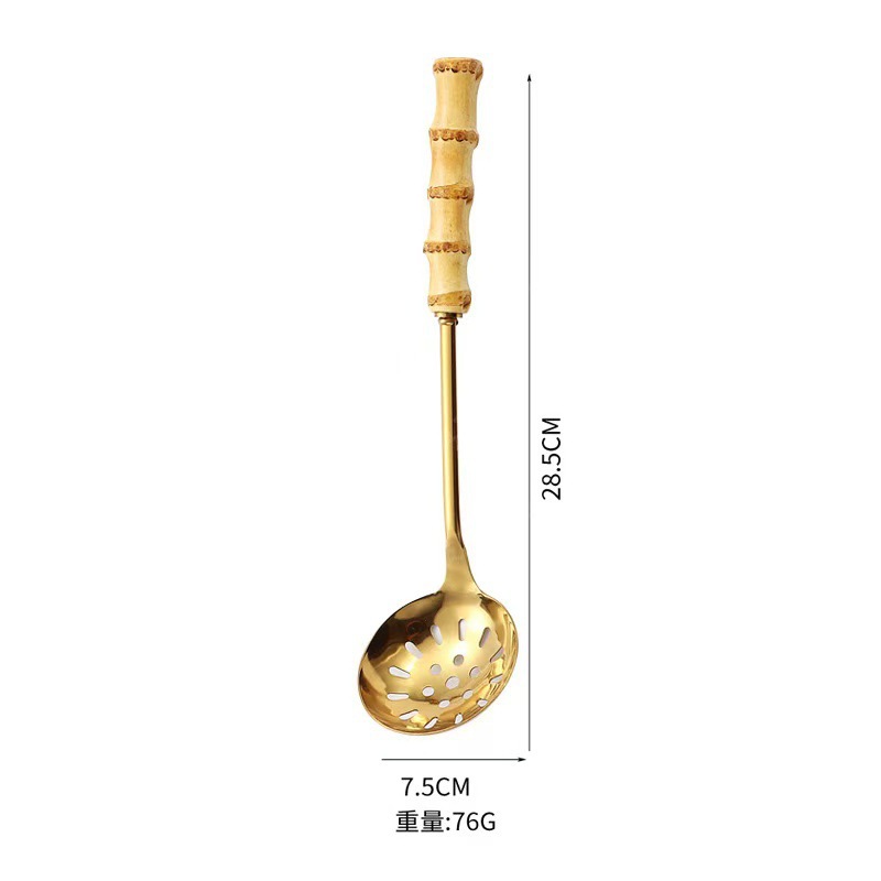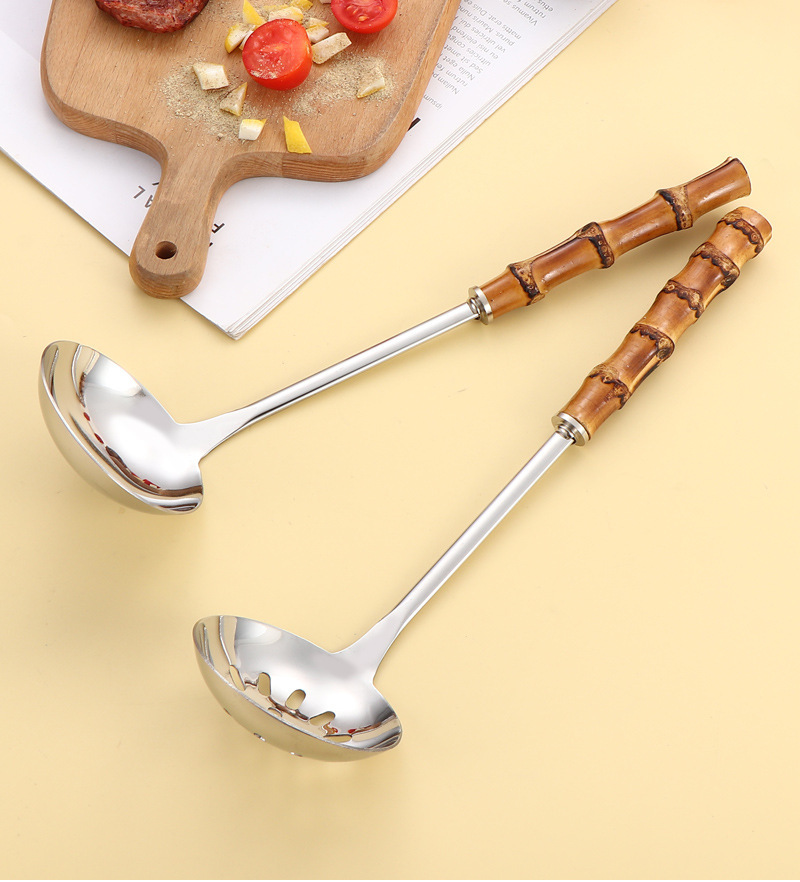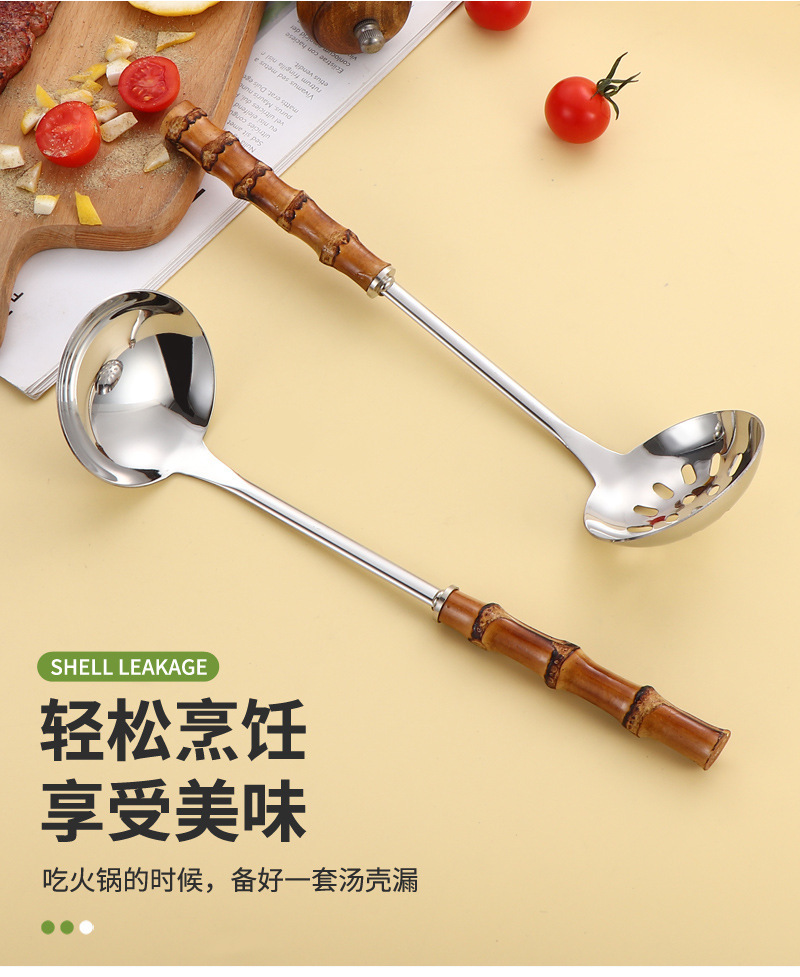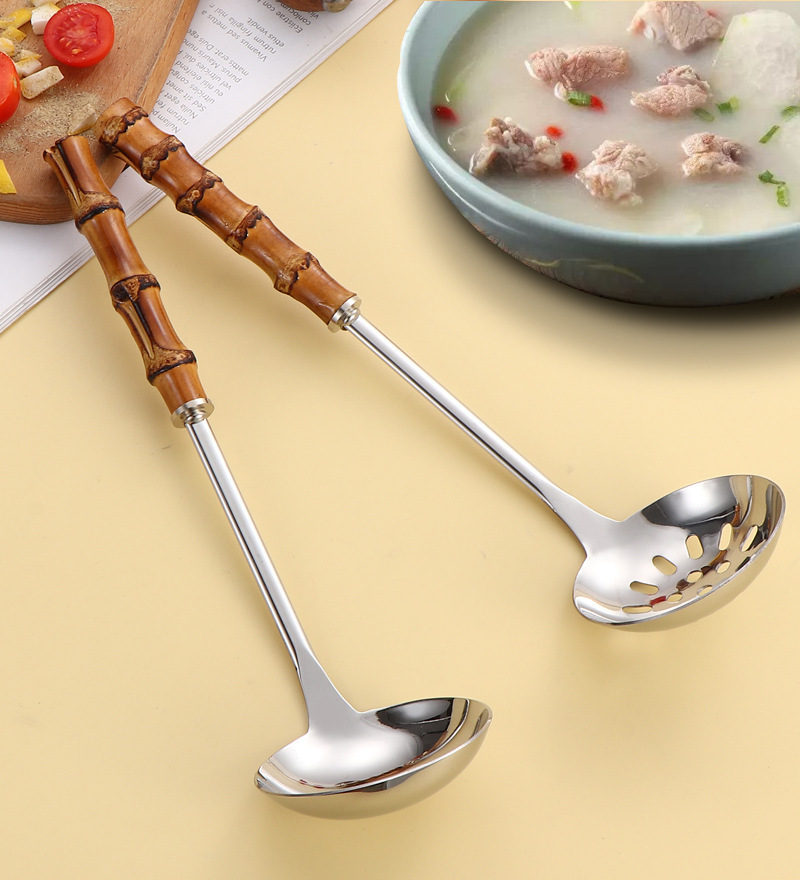 스테인레스 스틸 수프 쉘 크리 에이 티브 대나무 손잡이 수프 소쿠리 호텔 주방 가제트 냄비 스푼 레스토랑 긴 손잡이 소쿠리