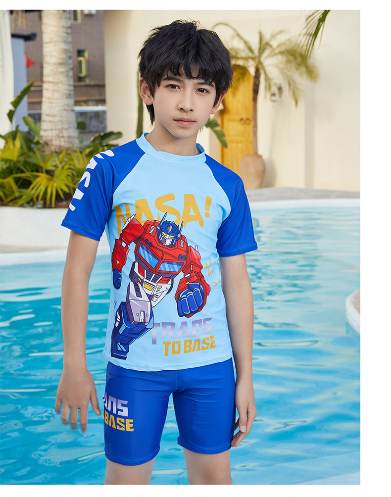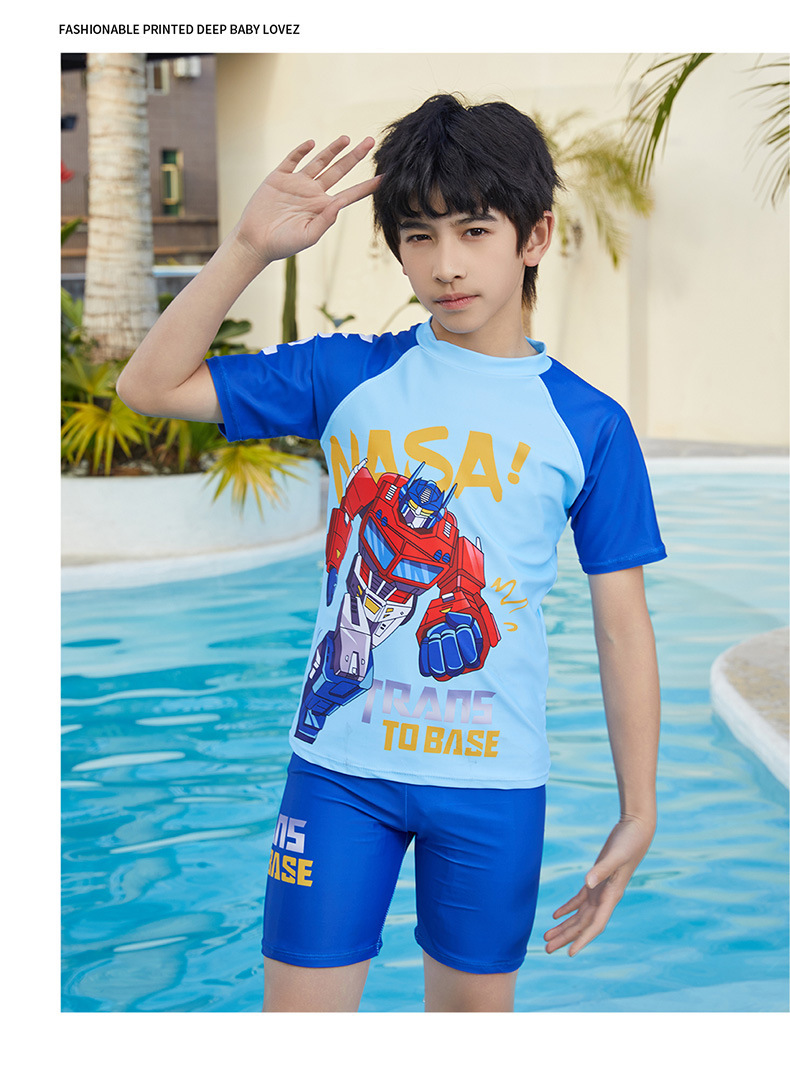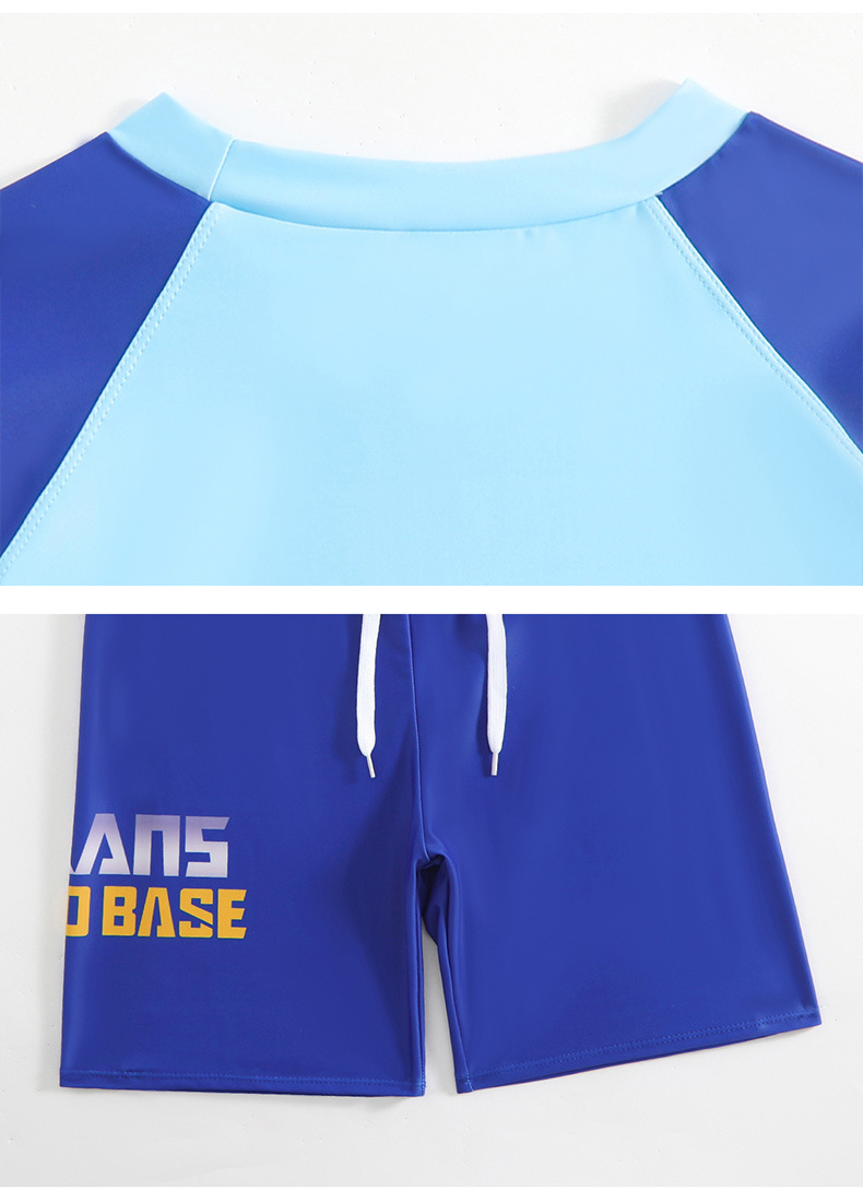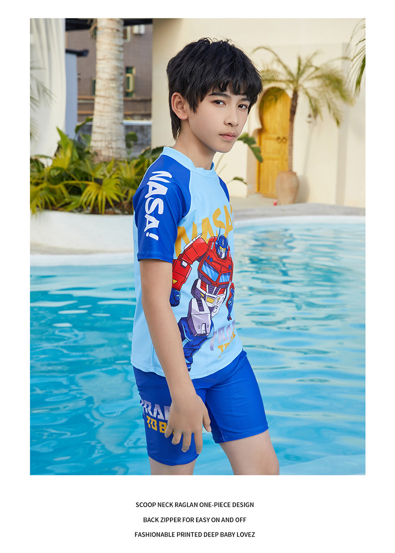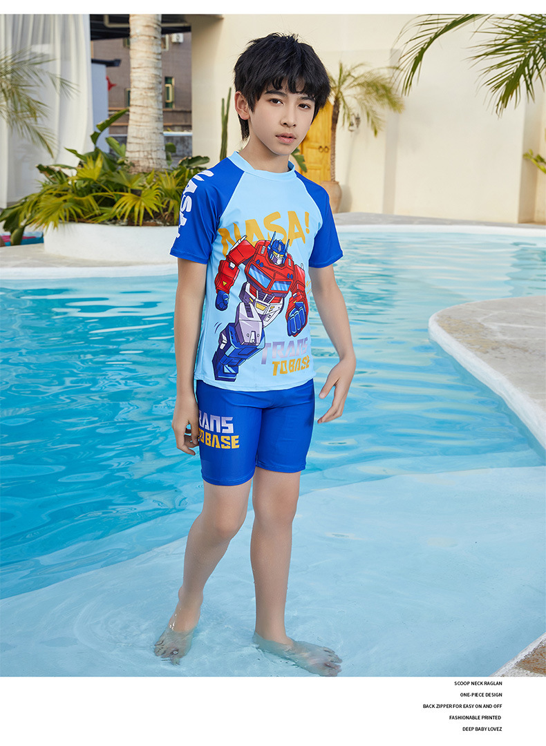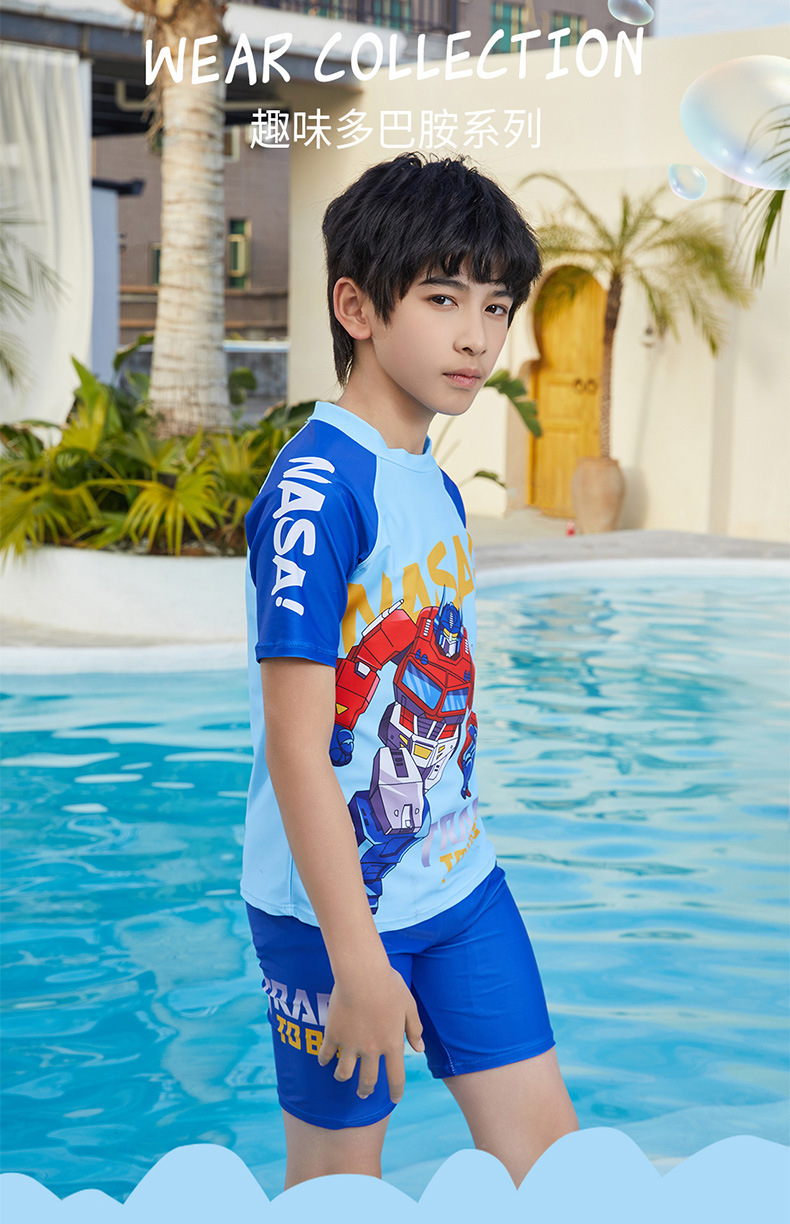 뚱뚱한 소년, 중대형 어린이, 소년 및 어린이 수영복 및 수영복을 위한 새로운 청소년 수영복 스플릿 반팔 5부 바지 자외선 차단스토어 가기