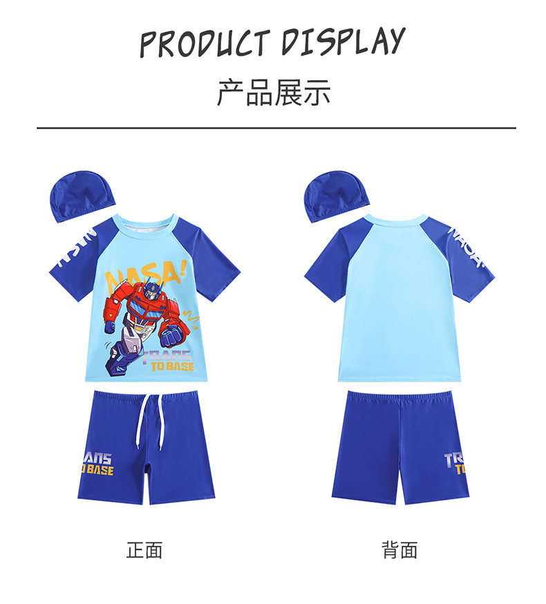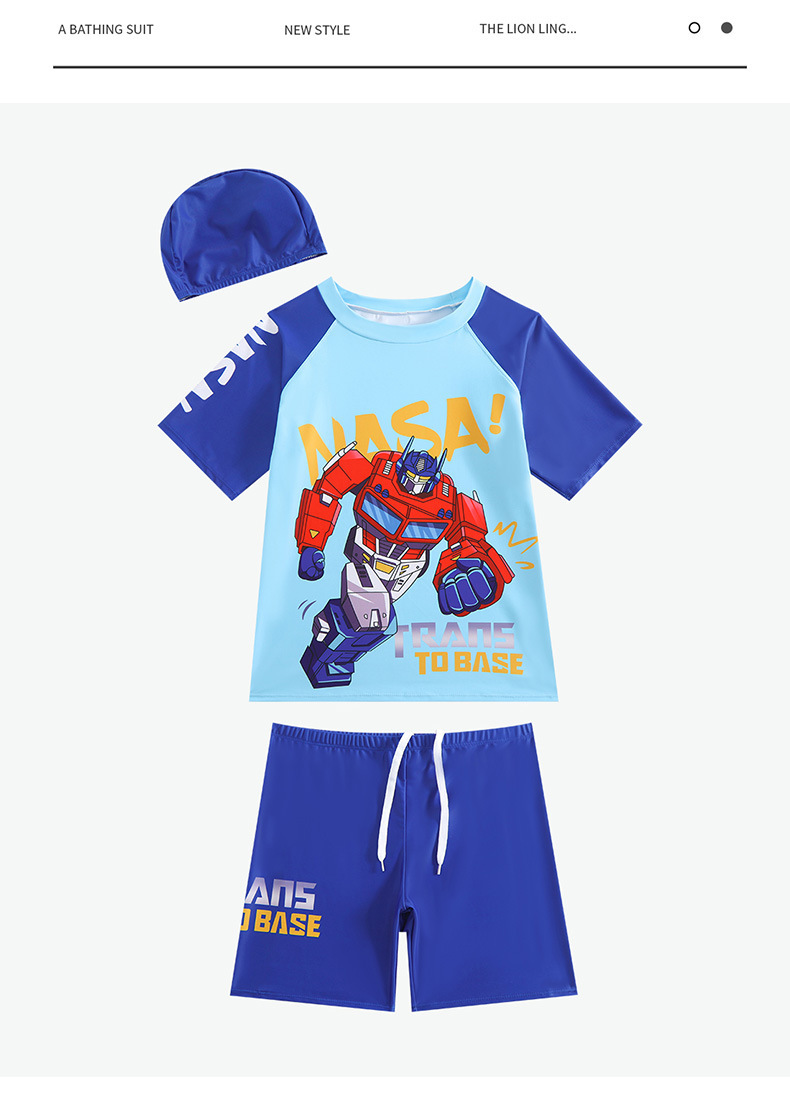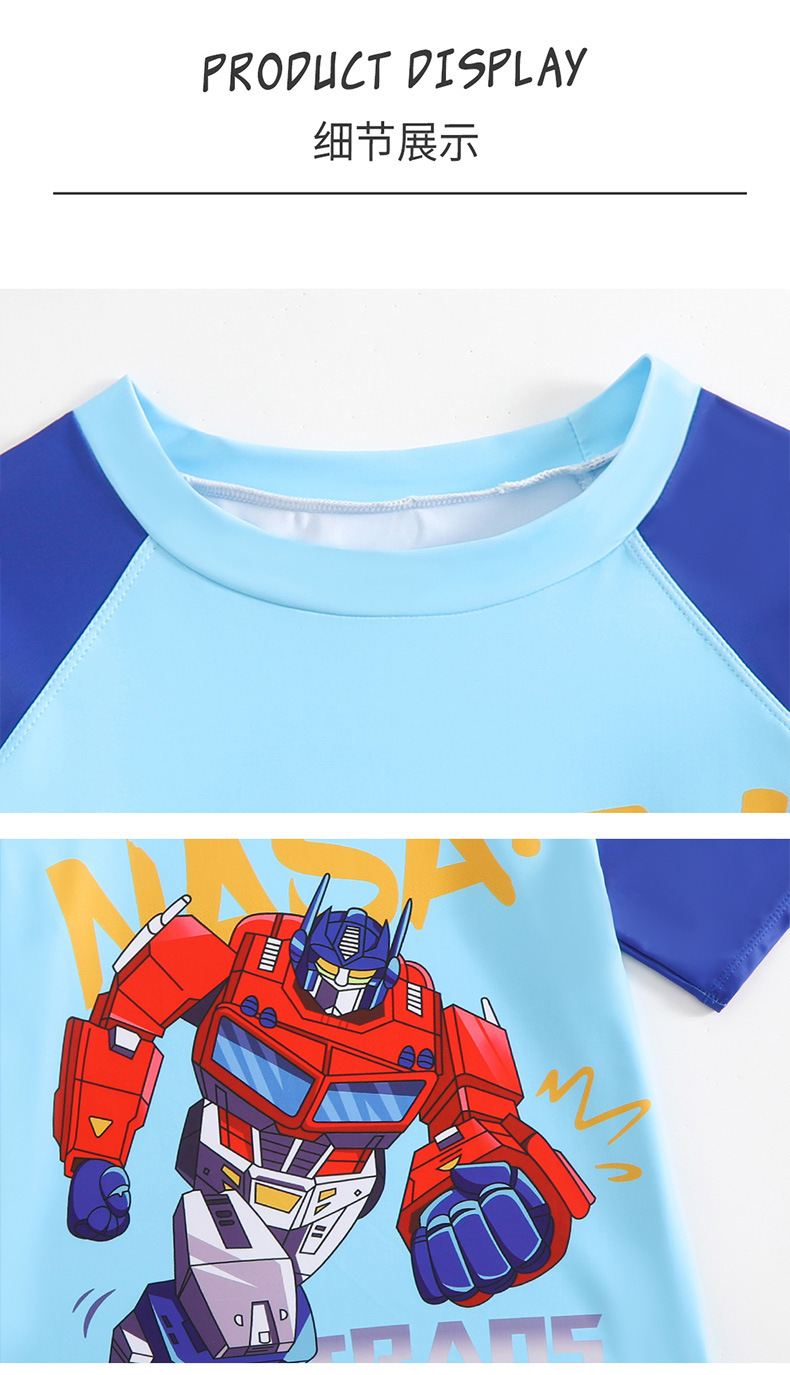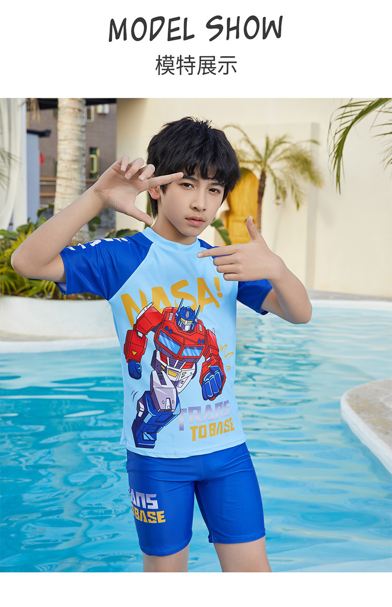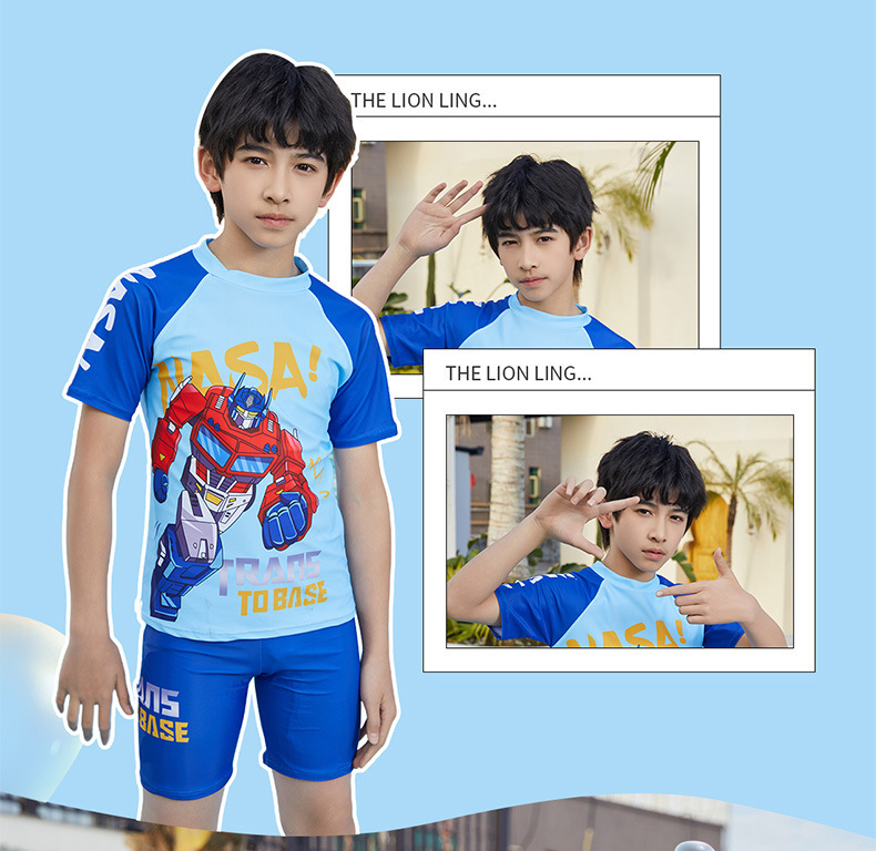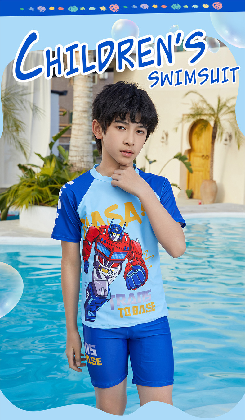 뚱뚱한 소년, 중대형 어린이, 소년 및 어린이 수영복 및 수영복을 위한 새로운 청소년 수영복 스플릿 반팔 5부 바지 자외선 차단스토어 가기