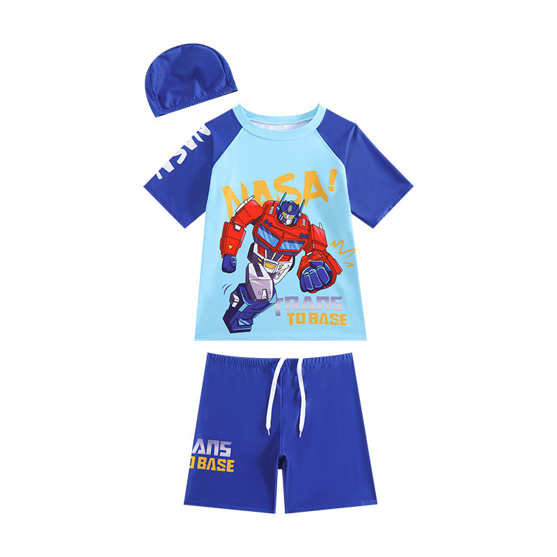 뚱뚱한 소년, 중대형 어린이, 소년 및 어린이 수영복 및 수영복을 위한 새로운 청소년 수영복 스플릿 반팔 5부 바지 자외선 차단