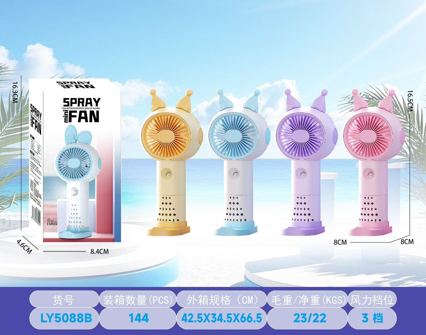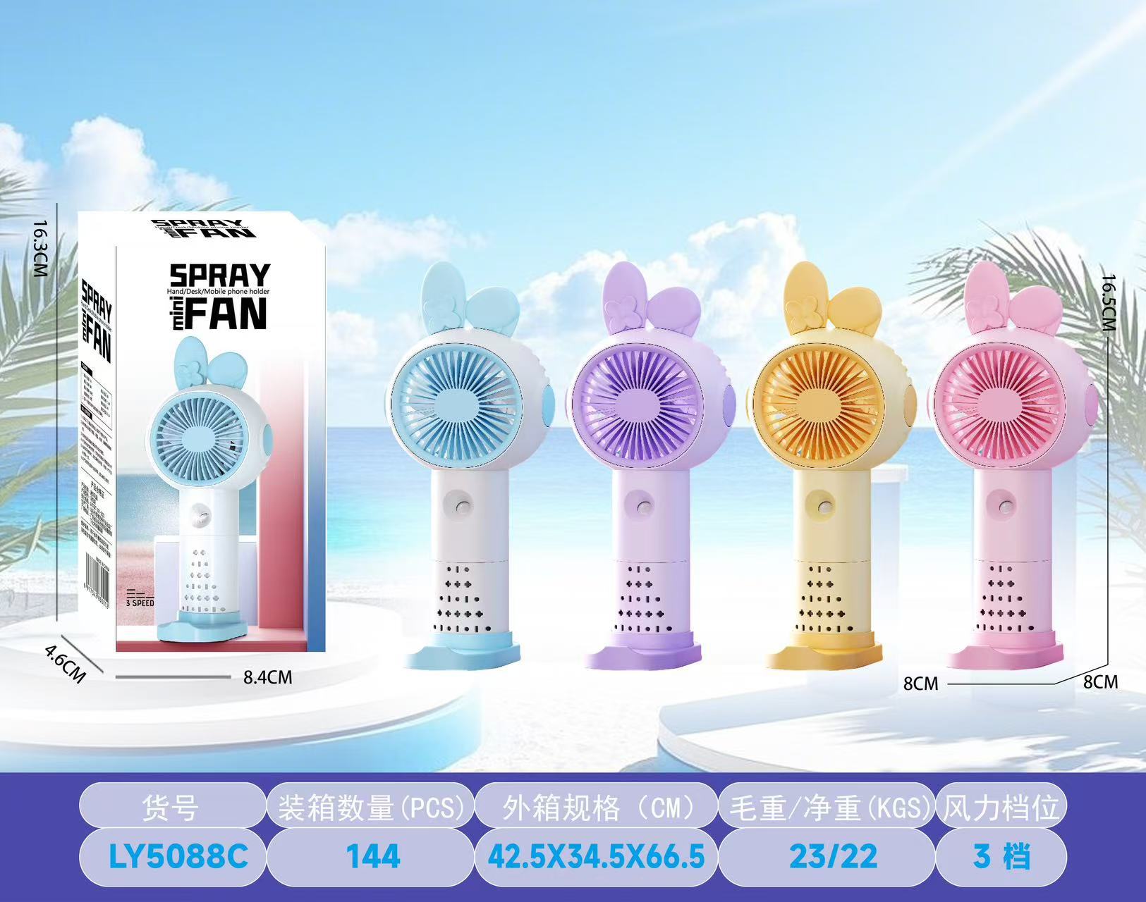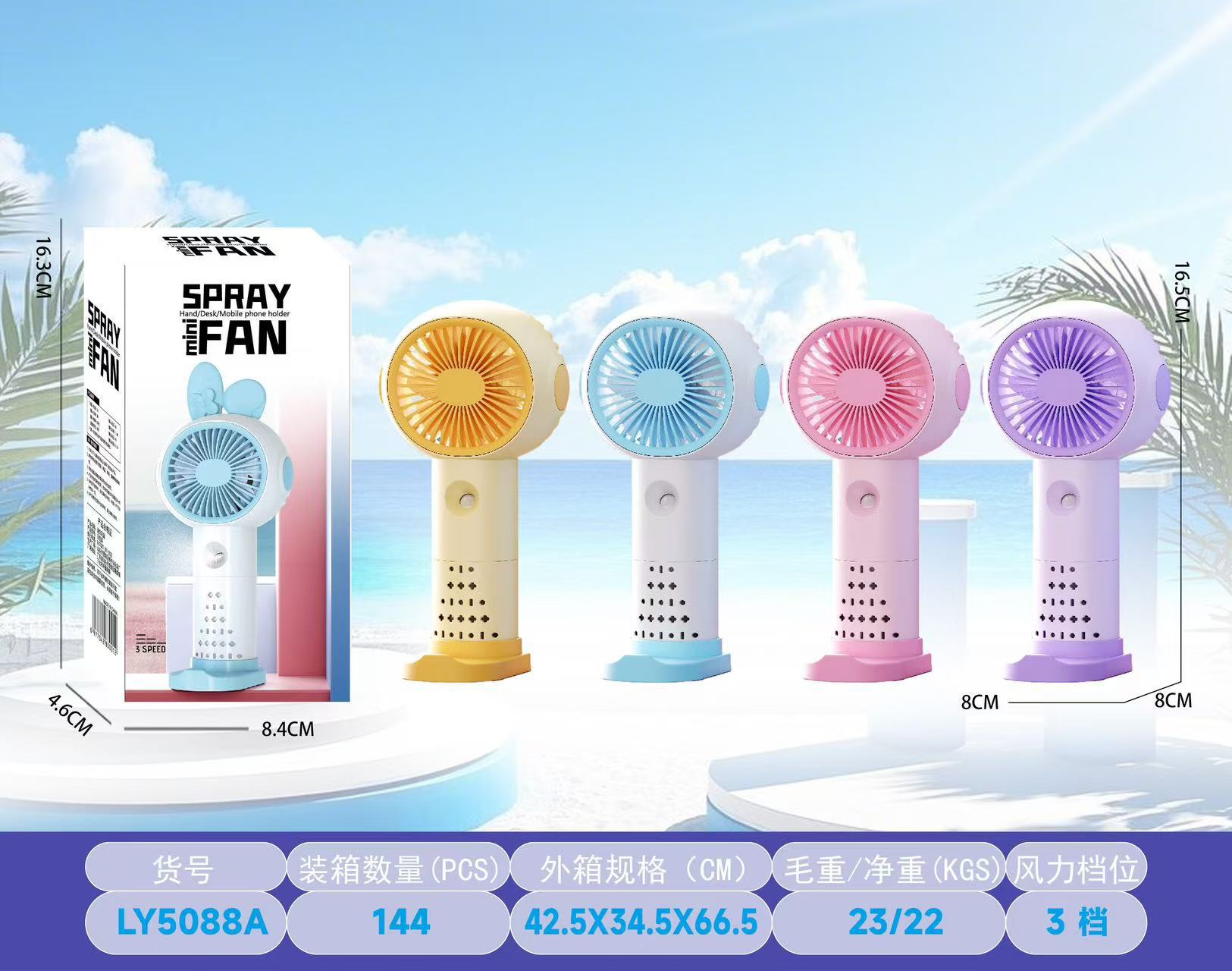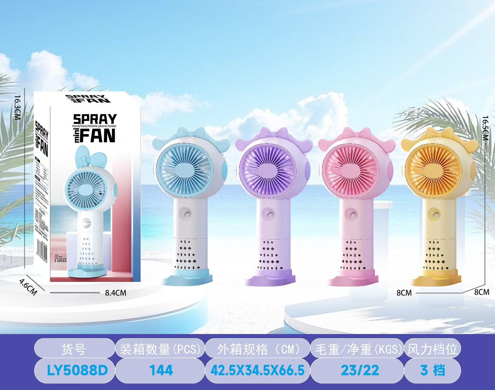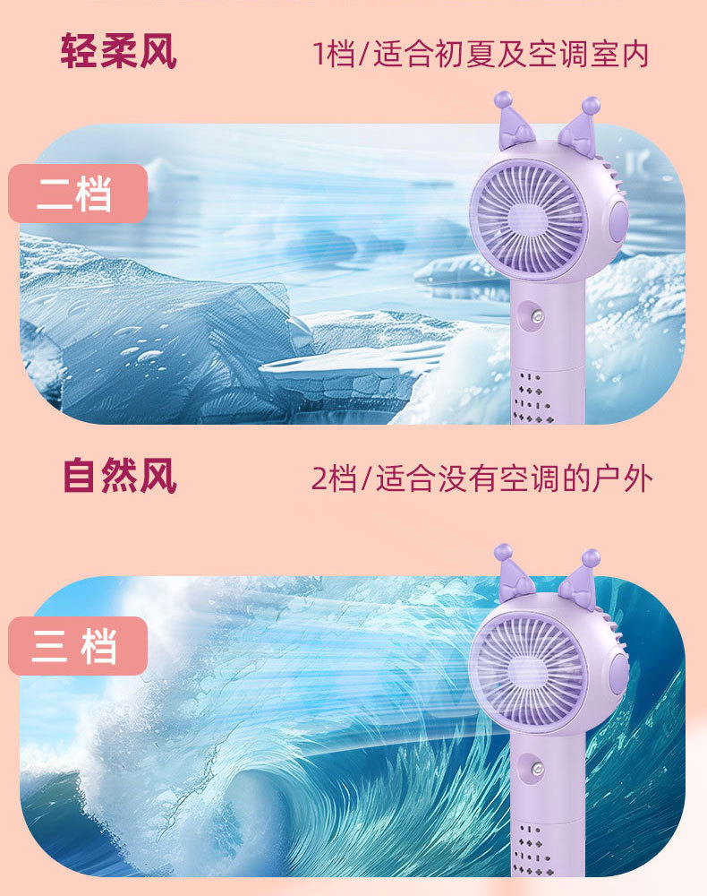【产品名称】3档简约手持喷雾风扇