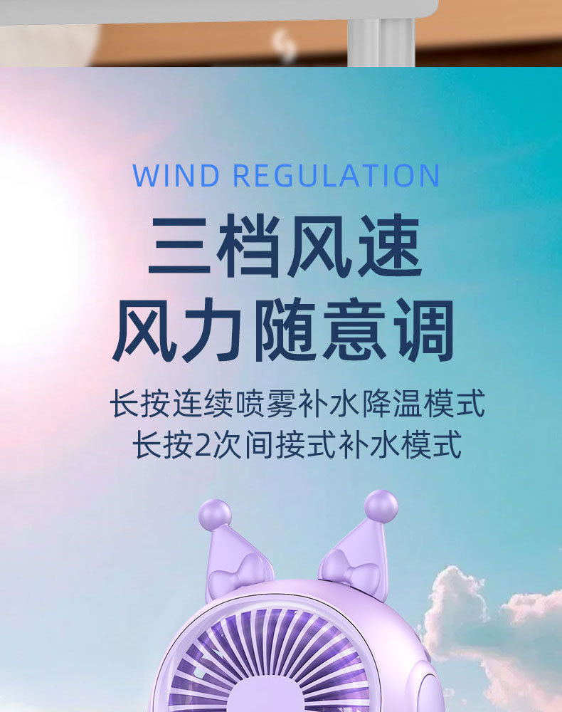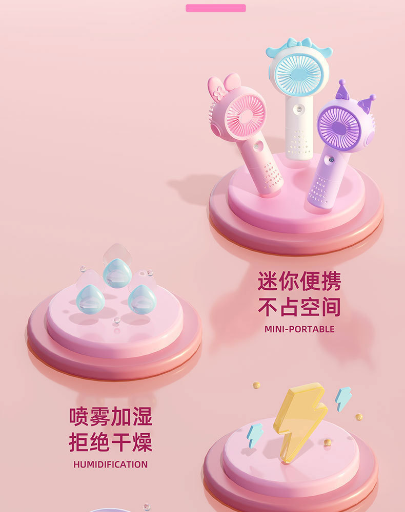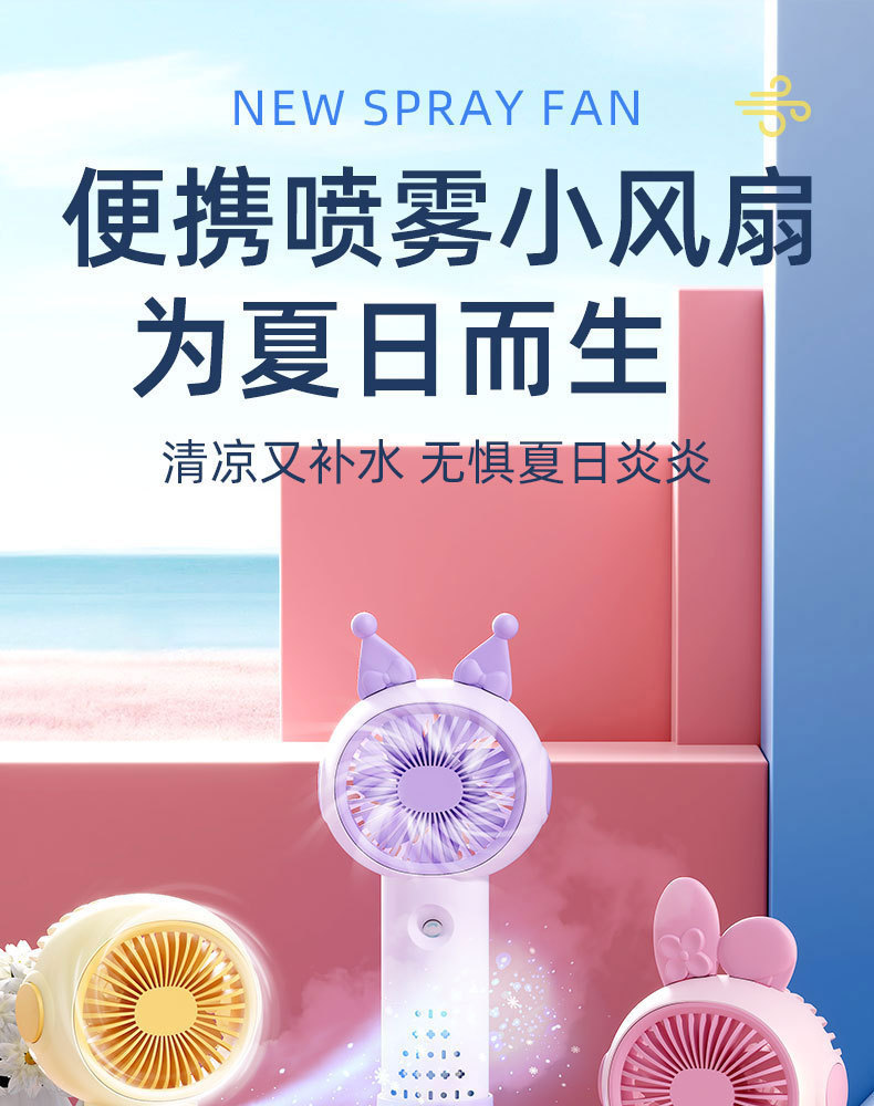 국경 간 새로운 만화 미니 휴대용 스프레이 팬 야외 휴대용 냉각 및 조용한 충전식 소형 팬