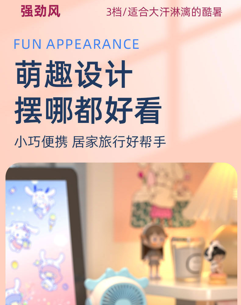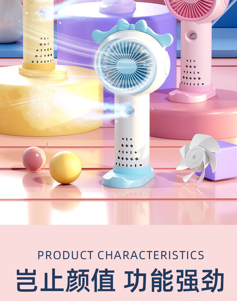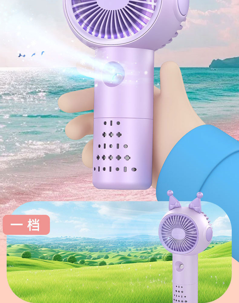 국경 간 새로운 만화 미니 휴대용 스프레이 팬 야외 휴대용 냉각 및 조용한 충전식 소형 팬스토어 가기